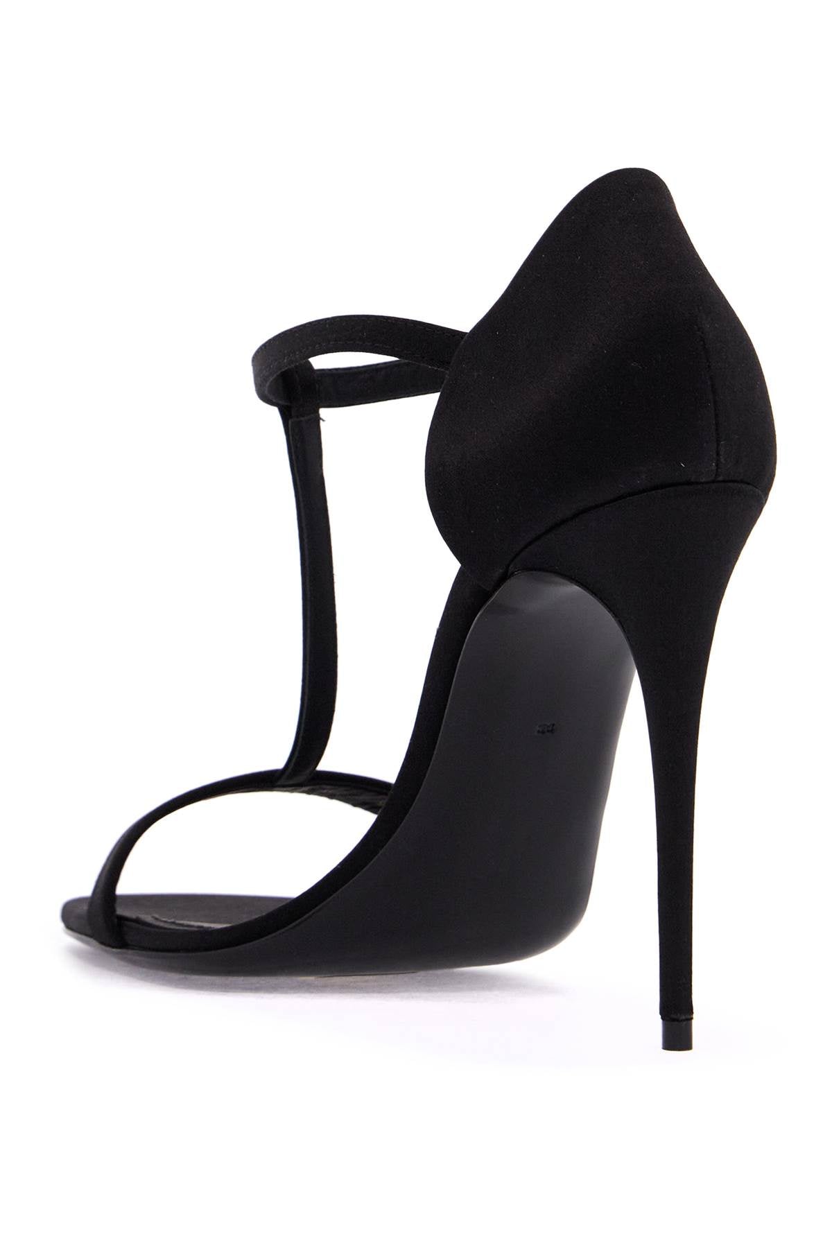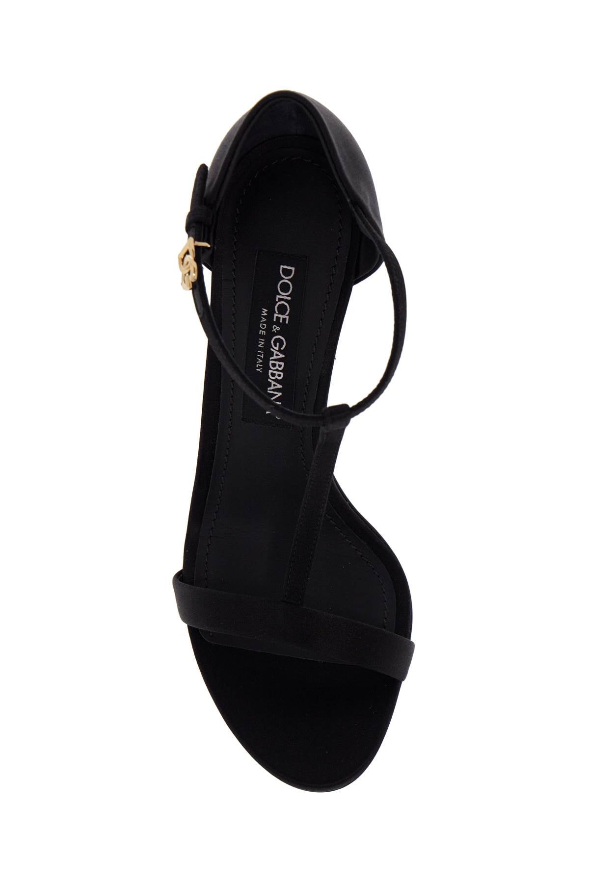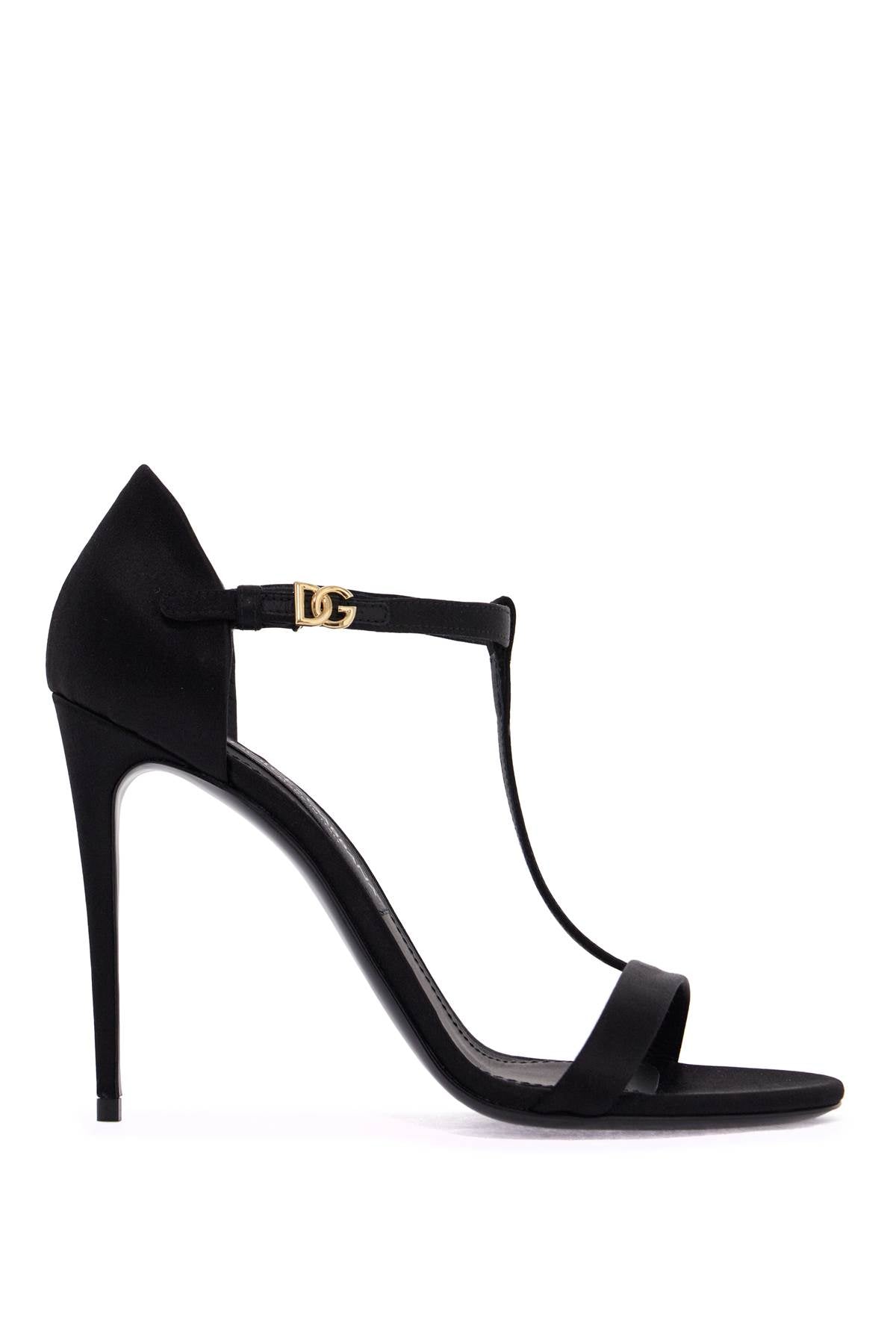 Dolce & Gabbana's Keira T-bar sandals are made of a silk blend satin and adorned with a golden metal DG logo on the adjustable ankle strap. The design features elegant lines, thin straps, leather insole, covered stiletto heel, and leather sole. Size and Fit - Heel Height = 11 cm,