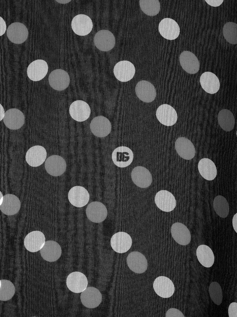 black/white silk chiffon semi-sheer construction polka dot print all-over logo print pussy-bow collar V-neck front button fastening long sleeves elasticated cuffs straight hem Size and Fit - This piece fits true to size. We recommend you get your regular size. Model is 1,75m / 5ft 8in wearing size 40 (IT)