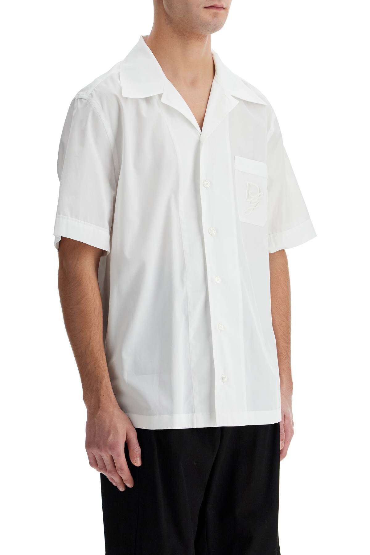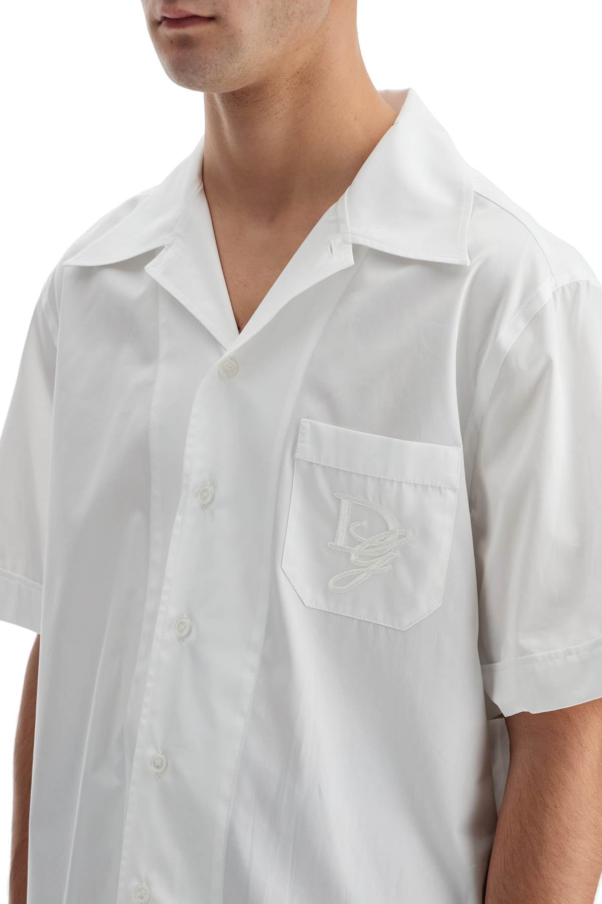 This Dolce & Gabbana short-sleeved shirt is made of lightweight cotton poplin and features a tonal DG embroidery on the chest pocket. It has a boxy cut with a convertible collar, stitched cuffs, and a straight hem with side slits. The closure is made with mother-of-pearl buttons. The model is 182 cm tall and wears size 39.