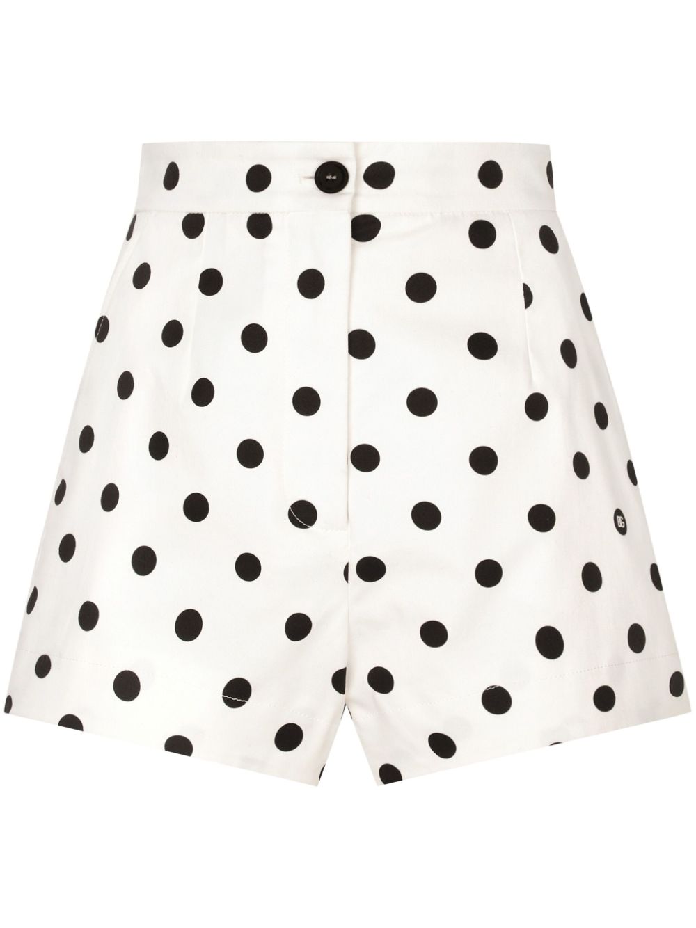 white/black stretch-cotton polka dot print high-waisted belt loops two side slit pockets thigh-length Size and Fit - This piece fits true to size. We recommend you get your regular size. Model is 1,75m / 5ft 8in wearing size 40 (IT)