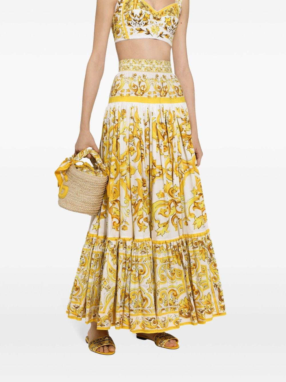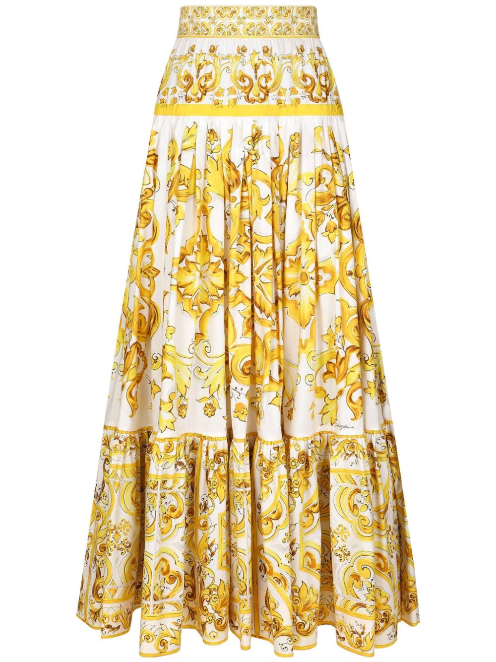 yellow/white cotton poplin texture Majolica print fully pleated high-waisted tiered skirt concealed rear hook and zip fastening straight hem Size and Fit - This piece fits true to size. We recommend you get your regular size. Model is 1,75m / 5ft 8in wearing size 40 (IT)