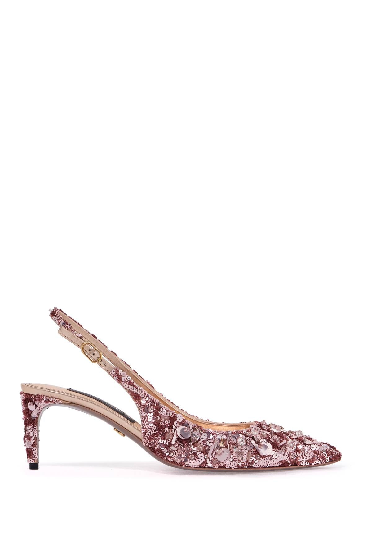 These Dolce & Gabbana slingback pumps are adorned with all-over sequins of various sizes. They feature an adjustable strap, a laminated leather insole, a covered kitten heel, and a leather sole. Size and Fit - Heel Height = 6,5 cm,