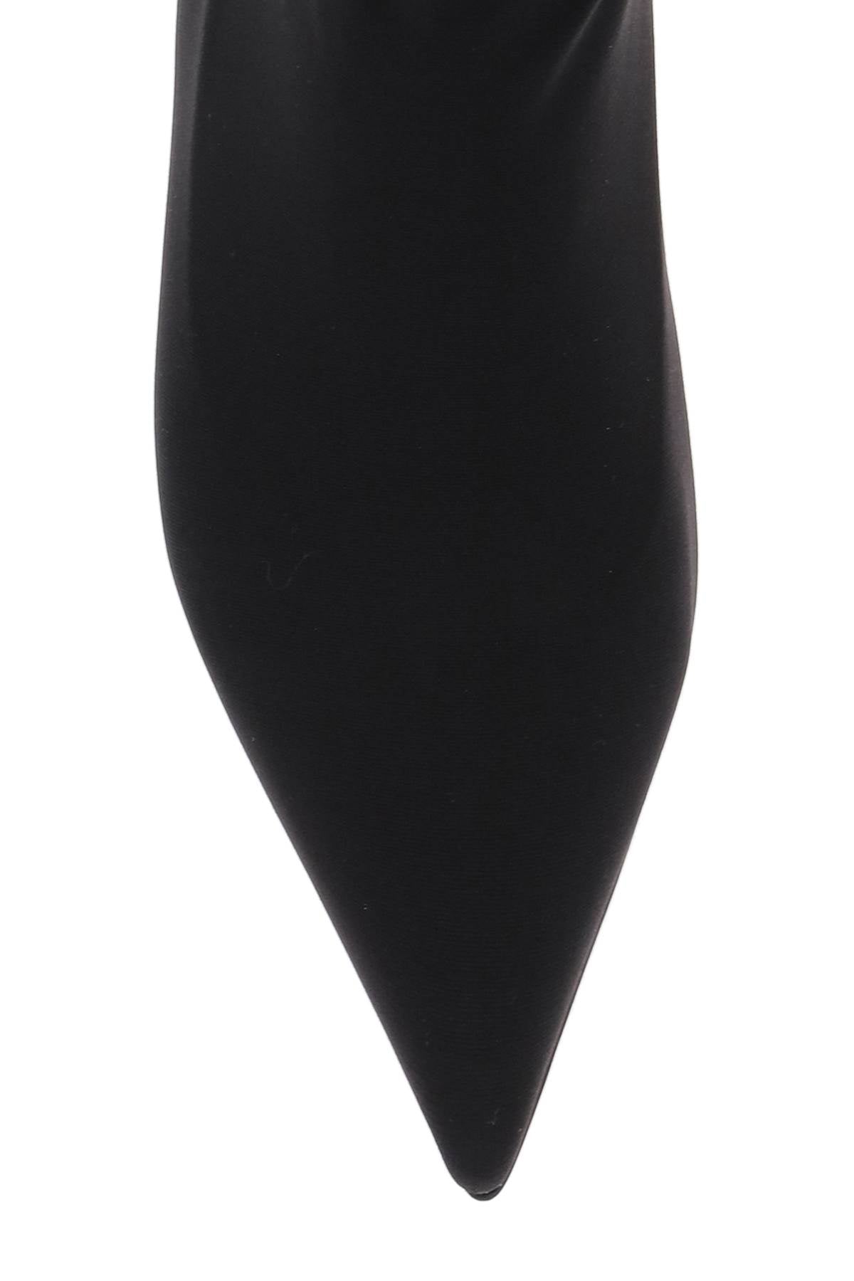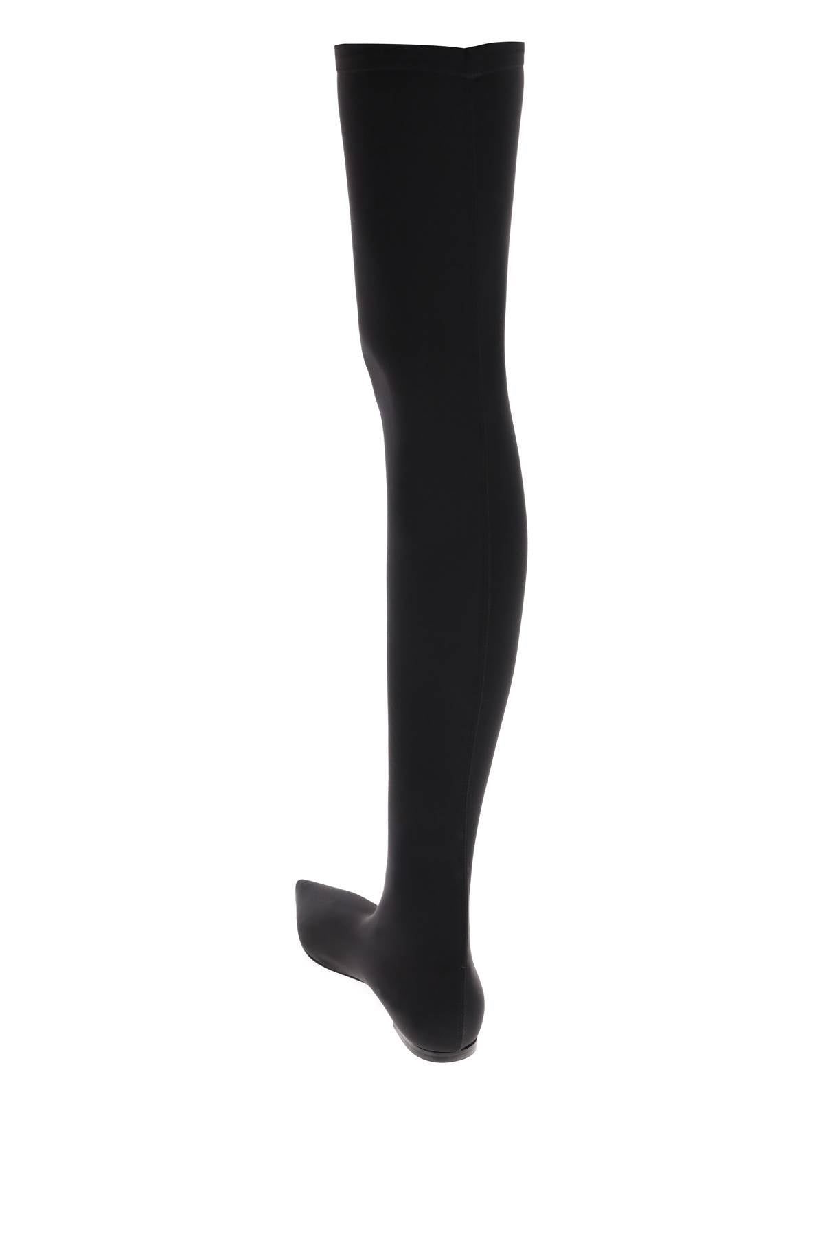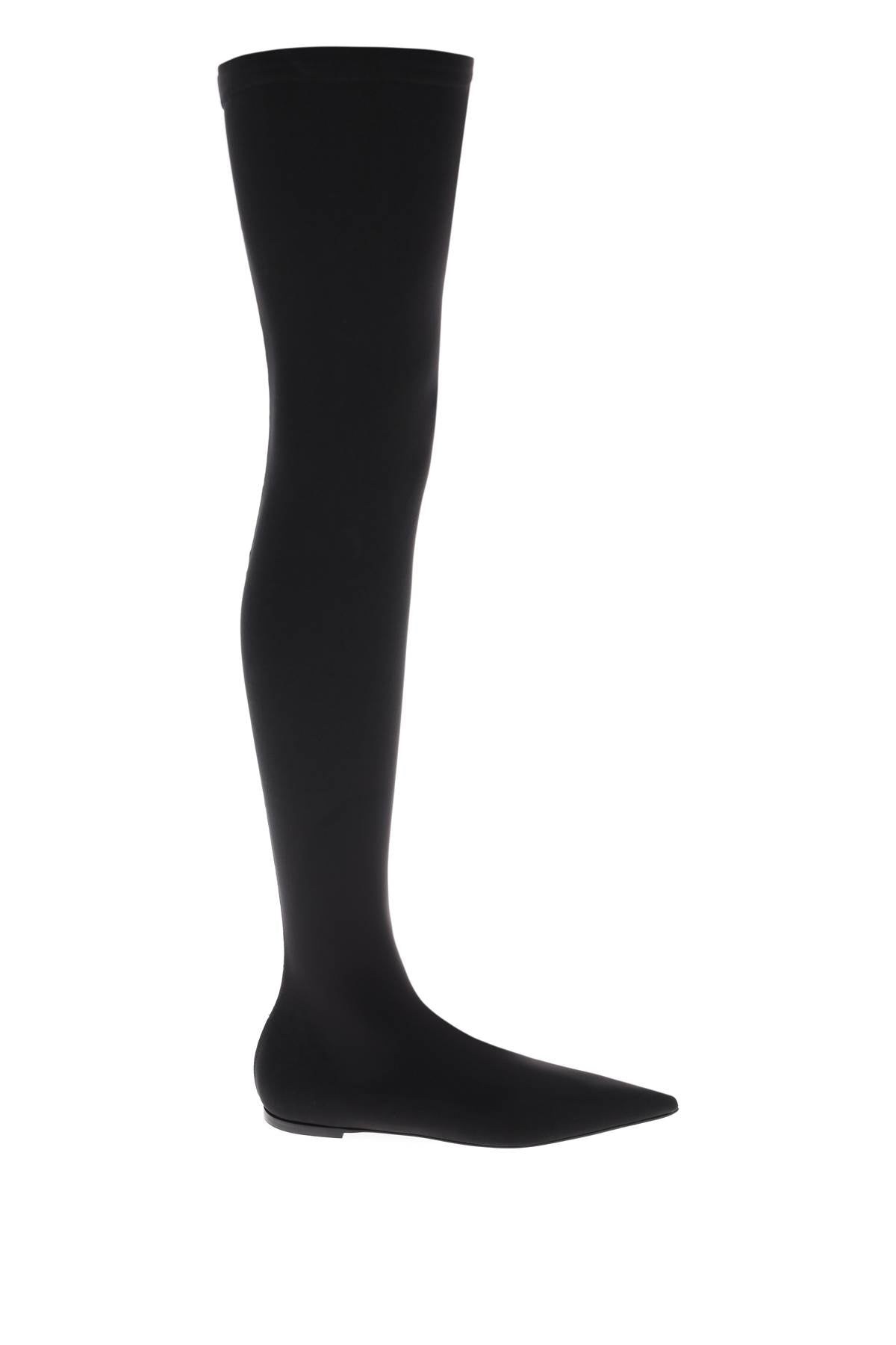 Dolce & Gabbana's cuissard boots are made of stretch jersey fabric with a viscose blend and feature a pointed design. The leather insole is adorned with a logo label, while the sole is made of leather.