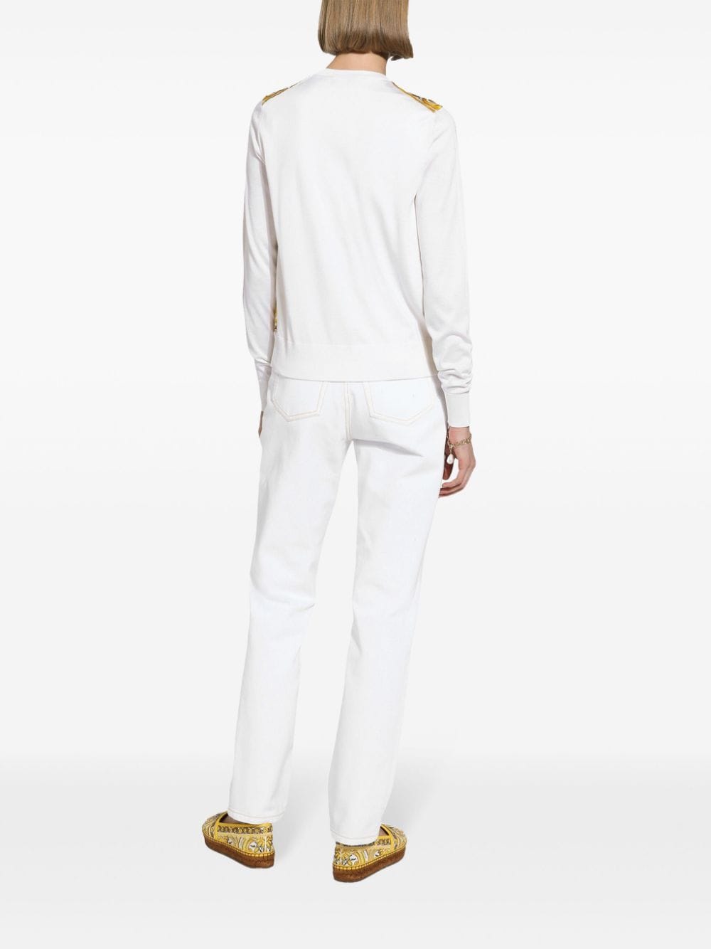 yellow white silk all-over graphic print round neck long sleeves button fastening ribbed cuffs and hem Size and Fit - This piece fits true to size. We recommend you get your regular size. Model is 1,75m / 5ft 8in wearing size 40 (IT)
