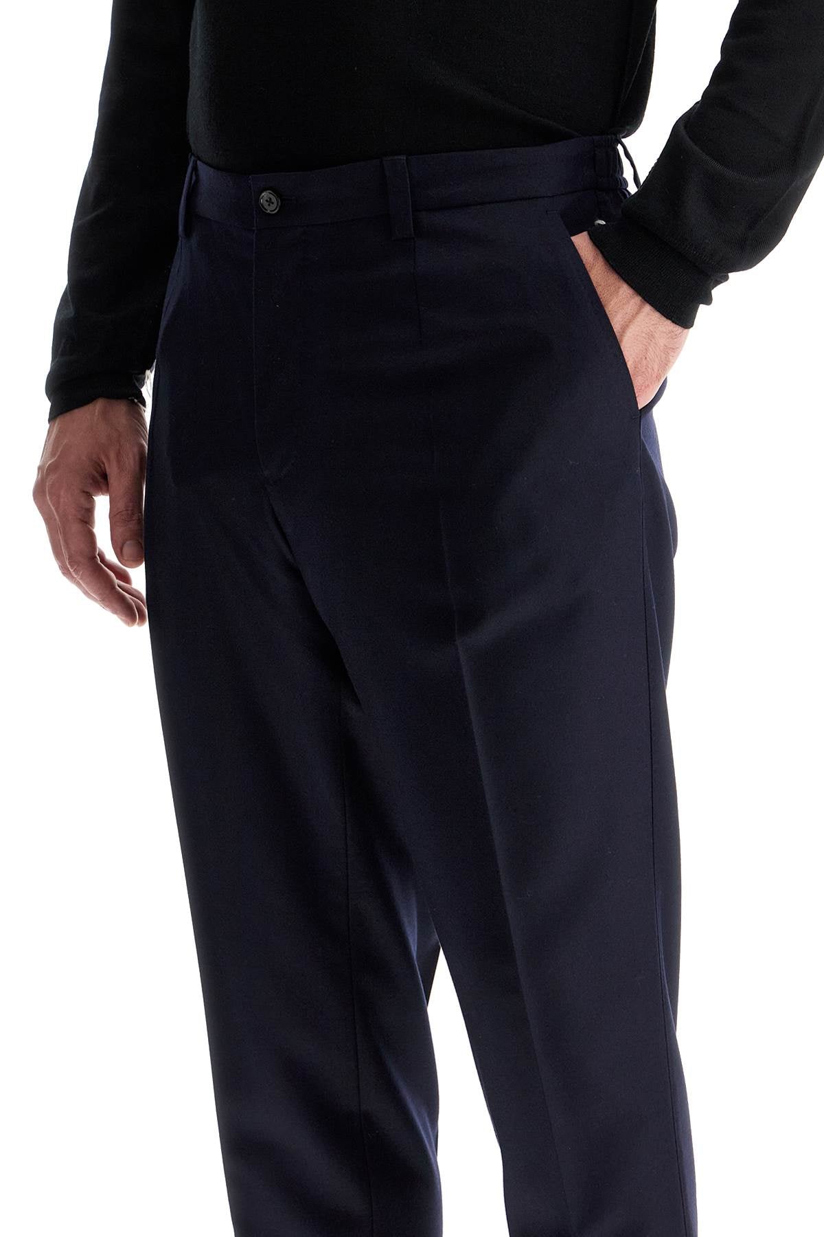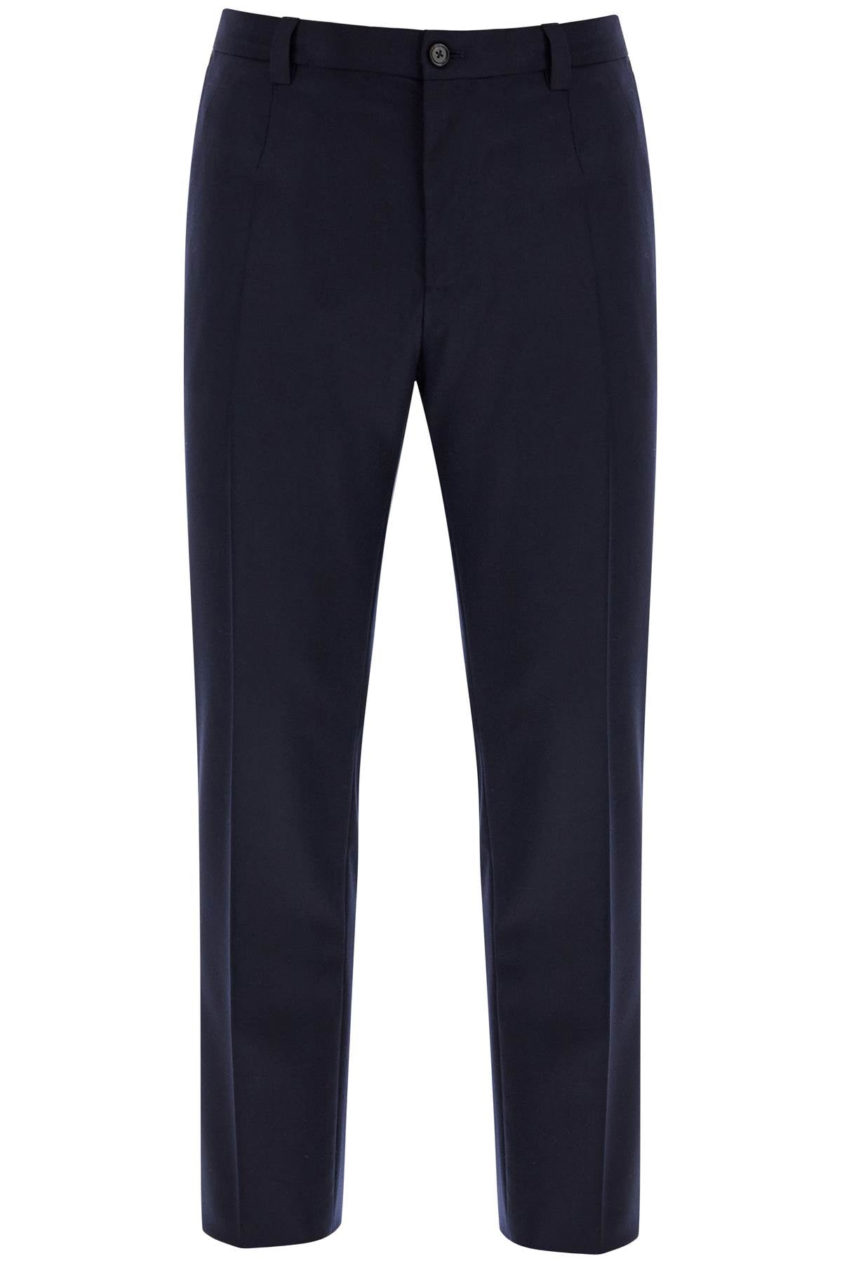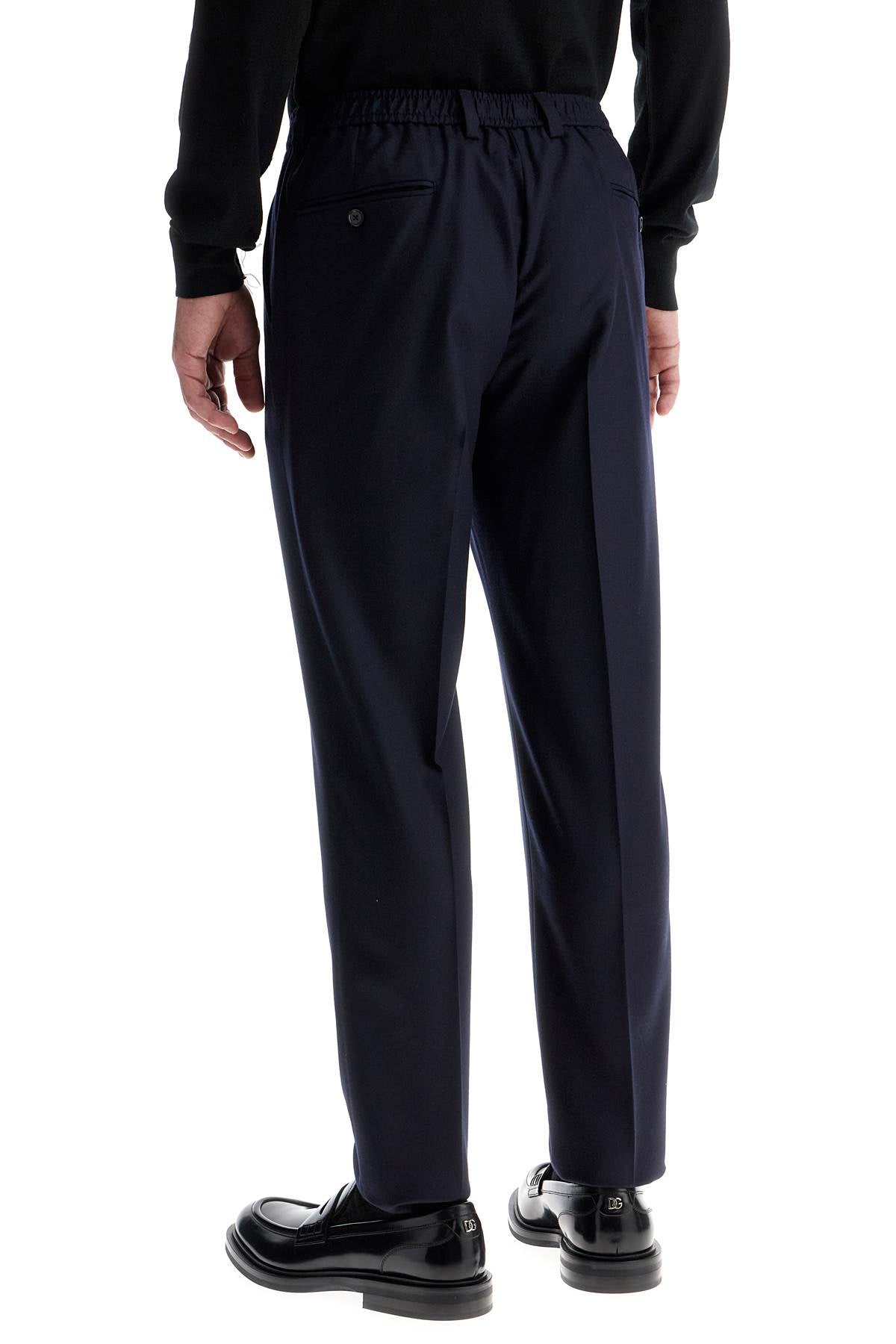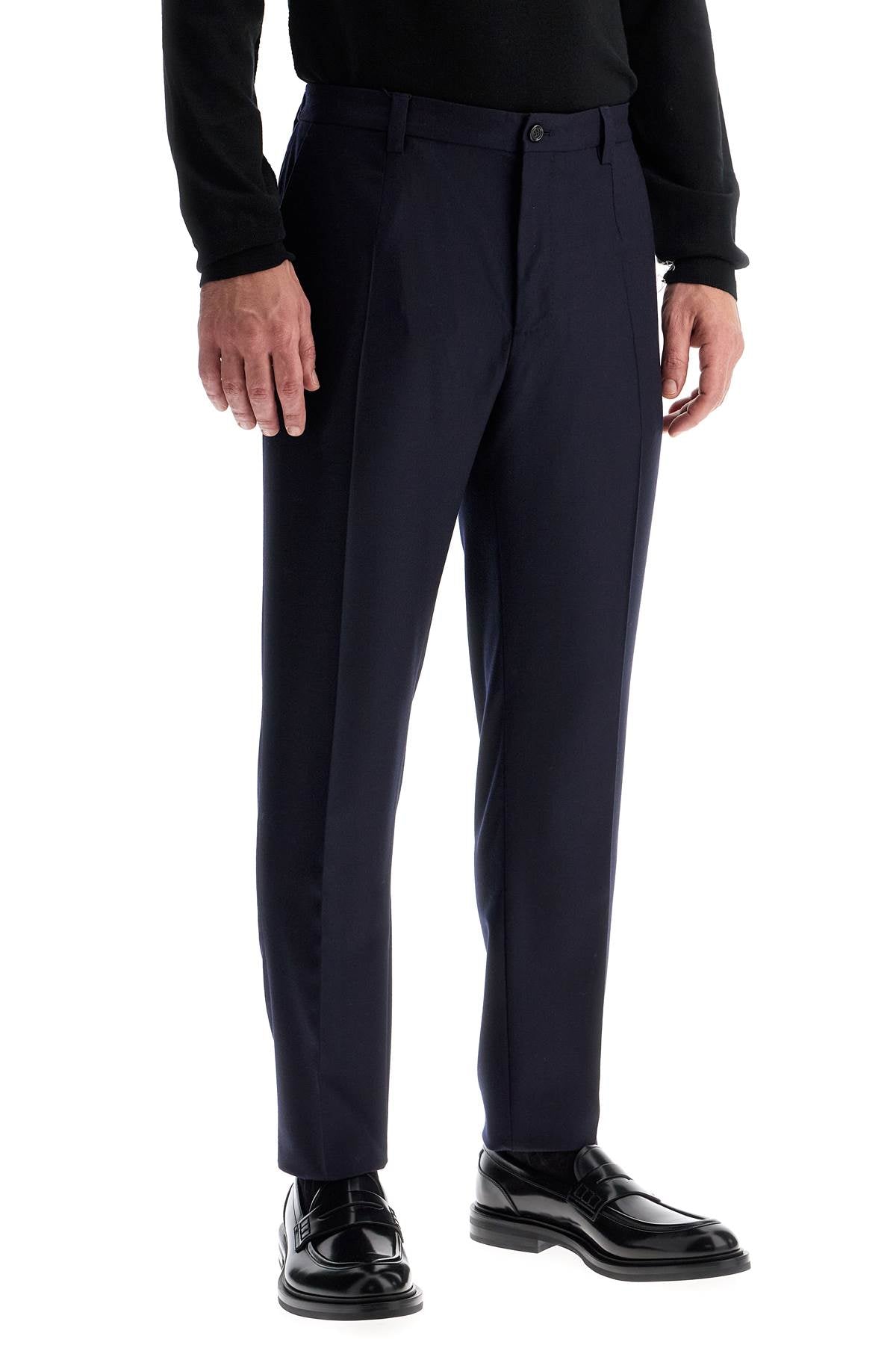 Dolce & Gabbana tailored trousers made of fine pure virgin wool flannel with a slim low-waisted silhouette. Finished with a semi-elasticated waistband and pressed crease, they have a four-pocket construction completed by belt loops and a button and hidden zip closure.