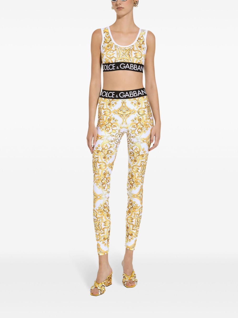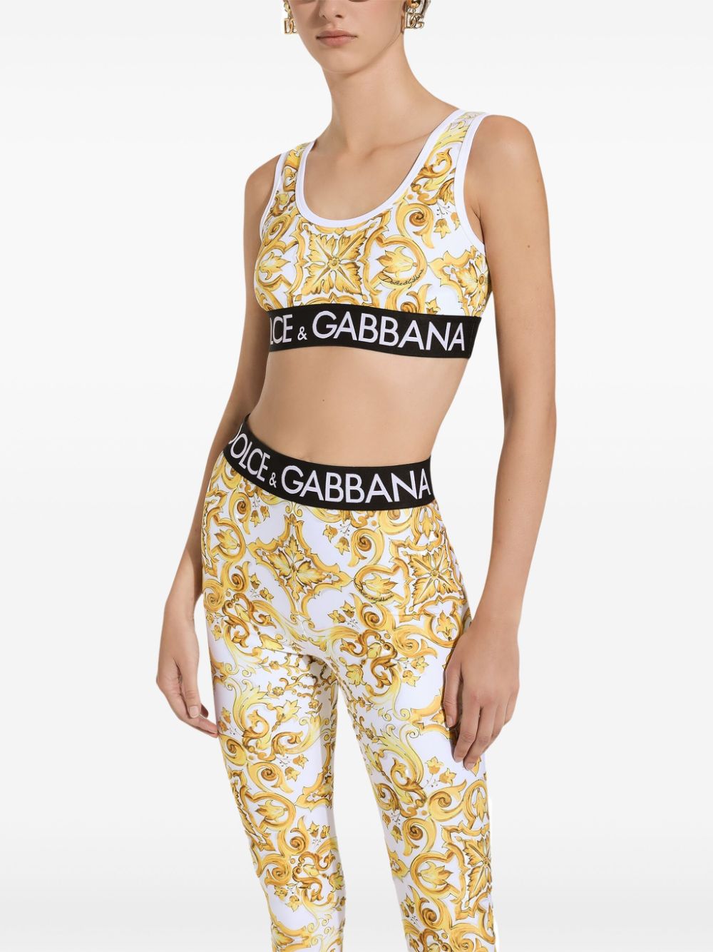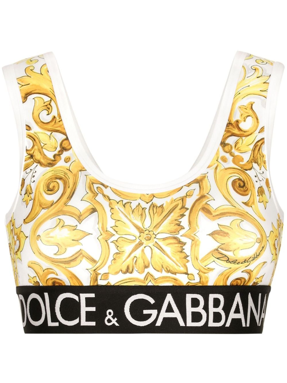 white/black/canary yellow stretch-jersey Majolica print logo underband scoop neck wide shoulder straps sleeveless cropped straight hem Size and Fit - This piece fits true to size. We recommend you get your regular size. Model is 1,75m / 5ft 8in wearing size 40 (IT)