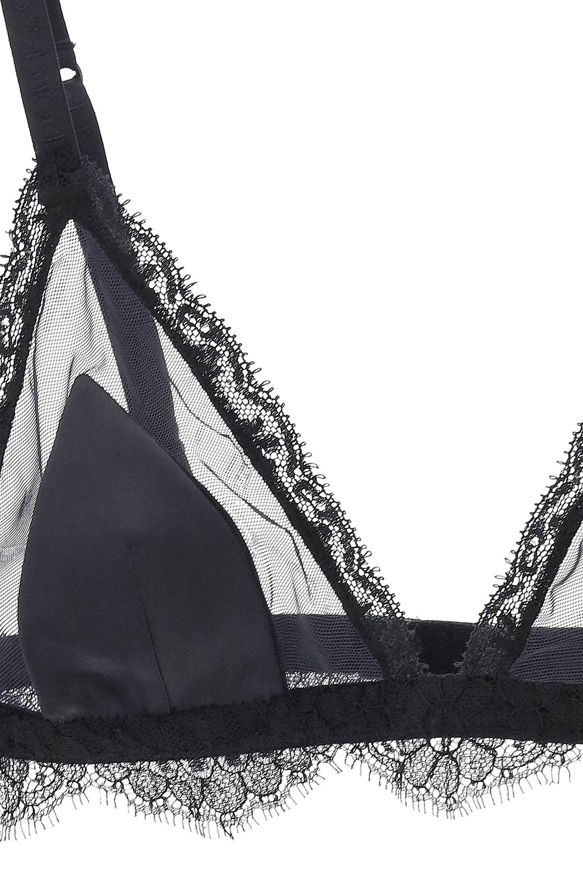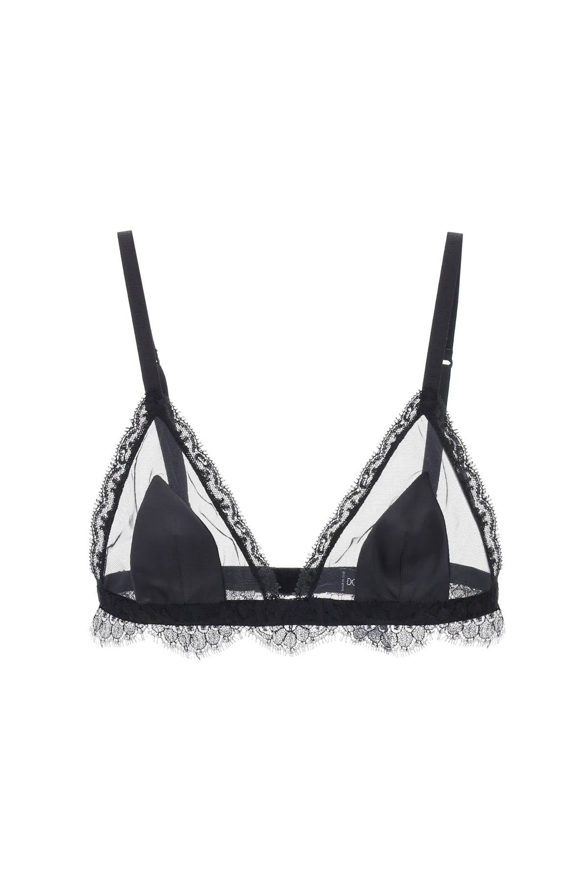 This Dolce & Gabbana soft cup triangle bra is made of silk satin with lace details. It features adjustable straps and a back closure. The item in the photo corresponds to size 2.