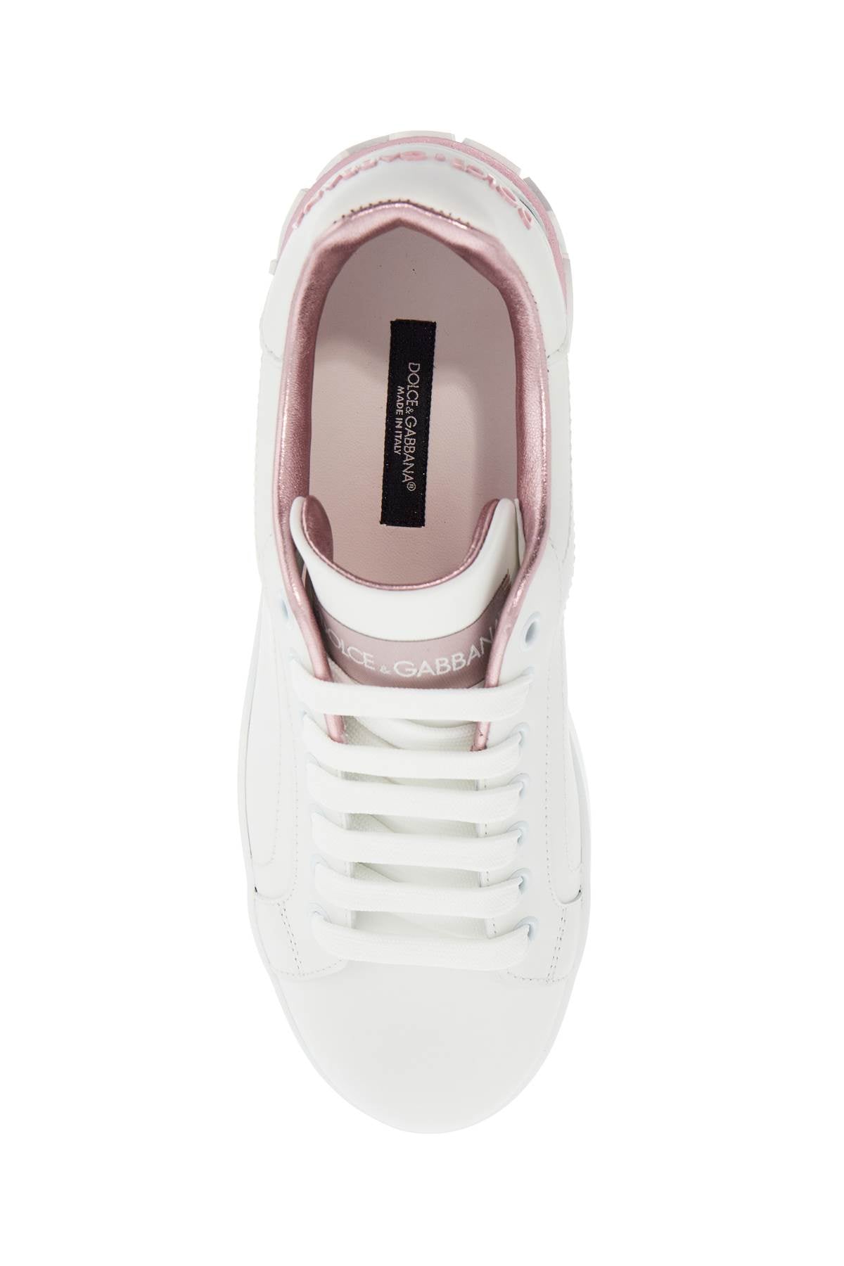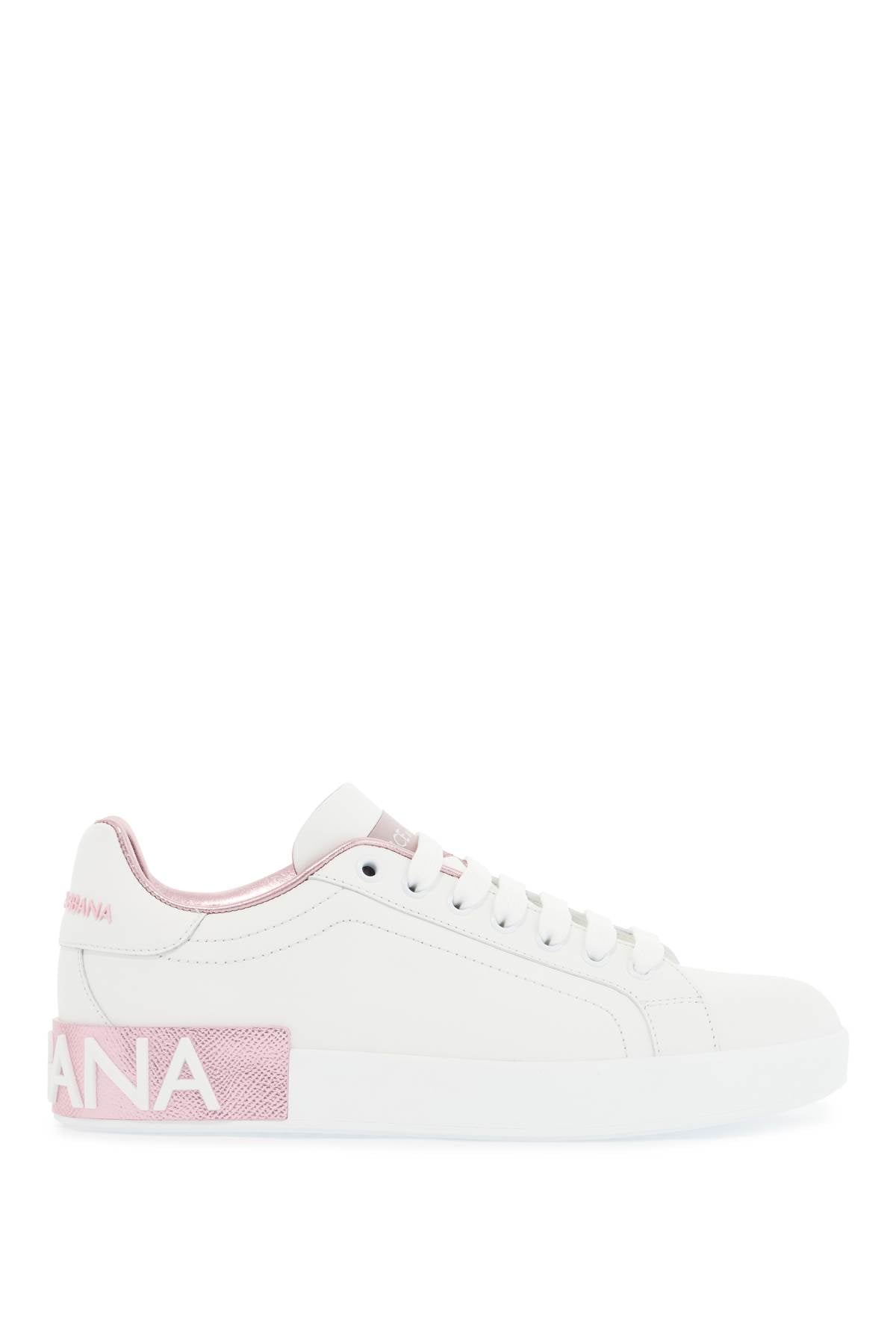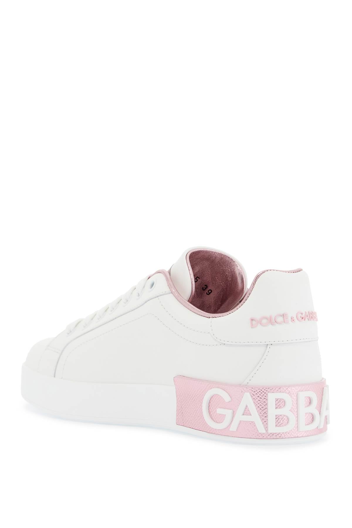 Dolce & Gabbana white and pink low-top sneakers for women in calfskin