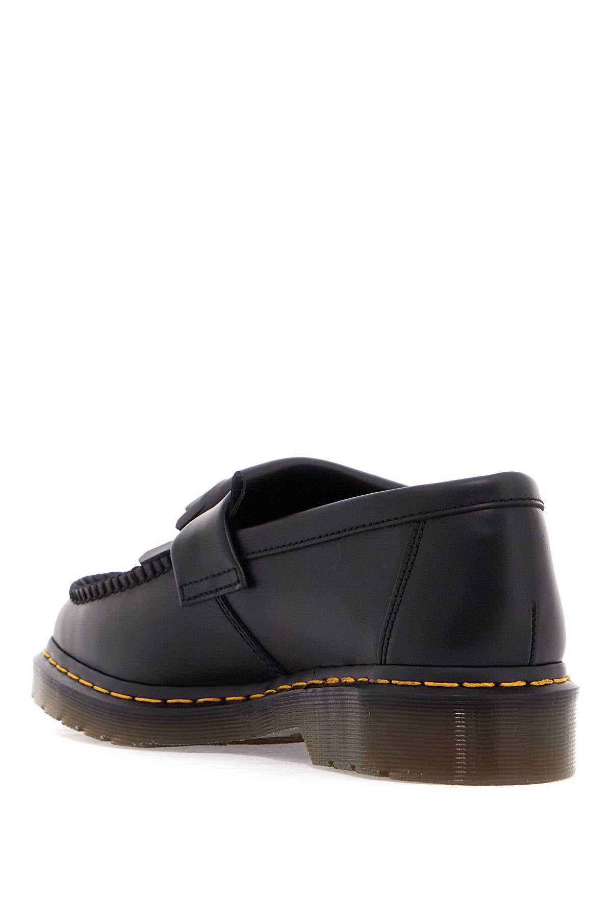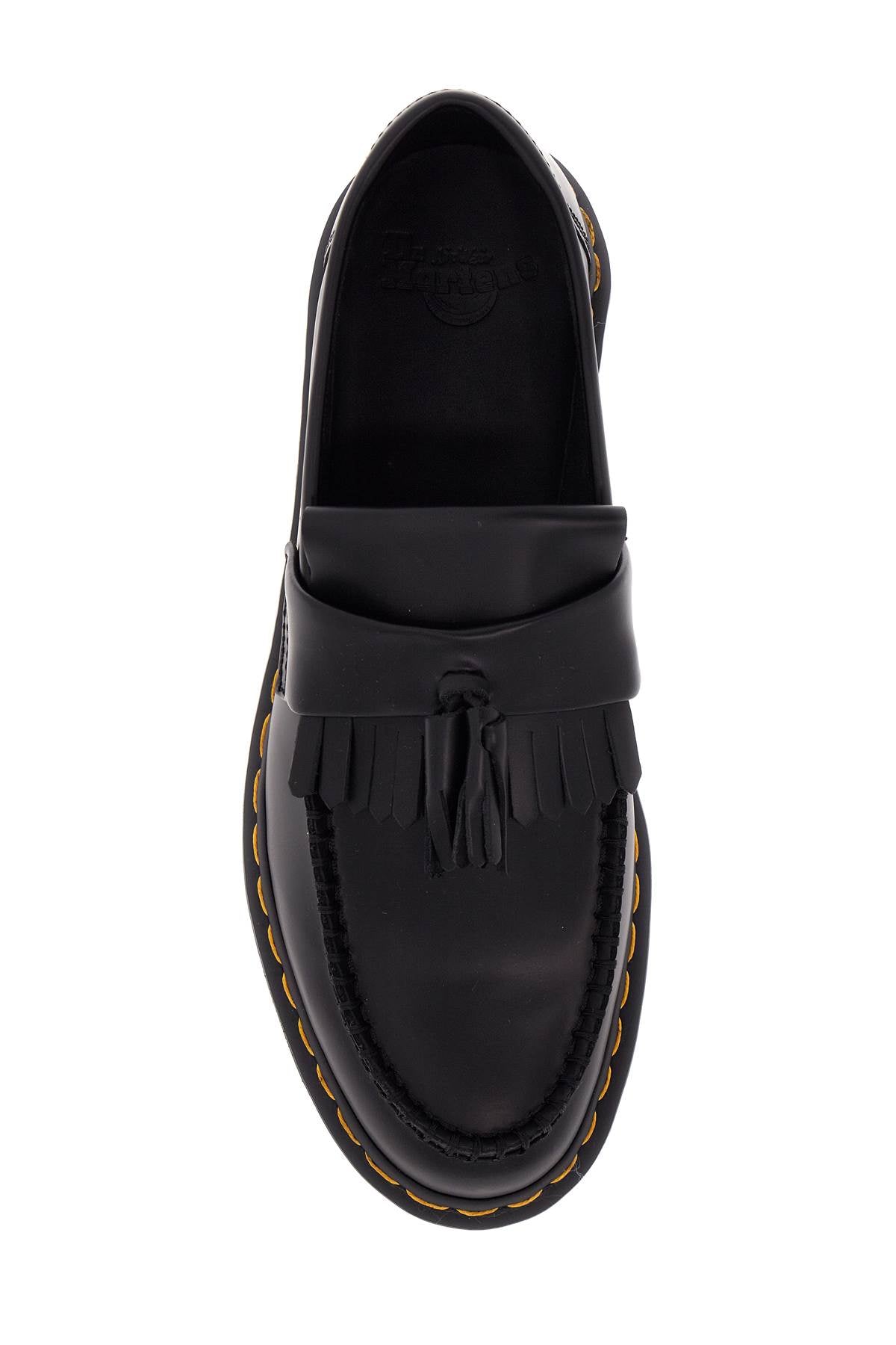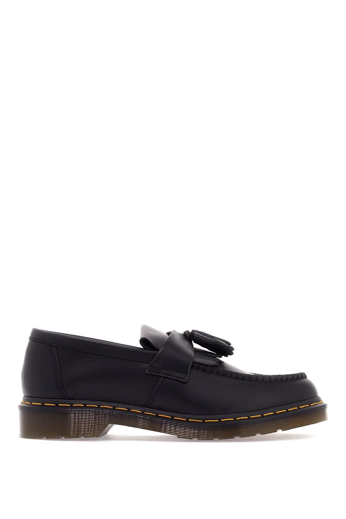 The Adrian loafers by Dr. Martens are made of Smooth leather and feature a tassel and fringe mask, raised stitching, and the iconic yellow stitching at the base. The interior is lined with fabric and has a leather insole, while the sole is made of rubber. Size and Fit - Heel Height = 4 cm,
