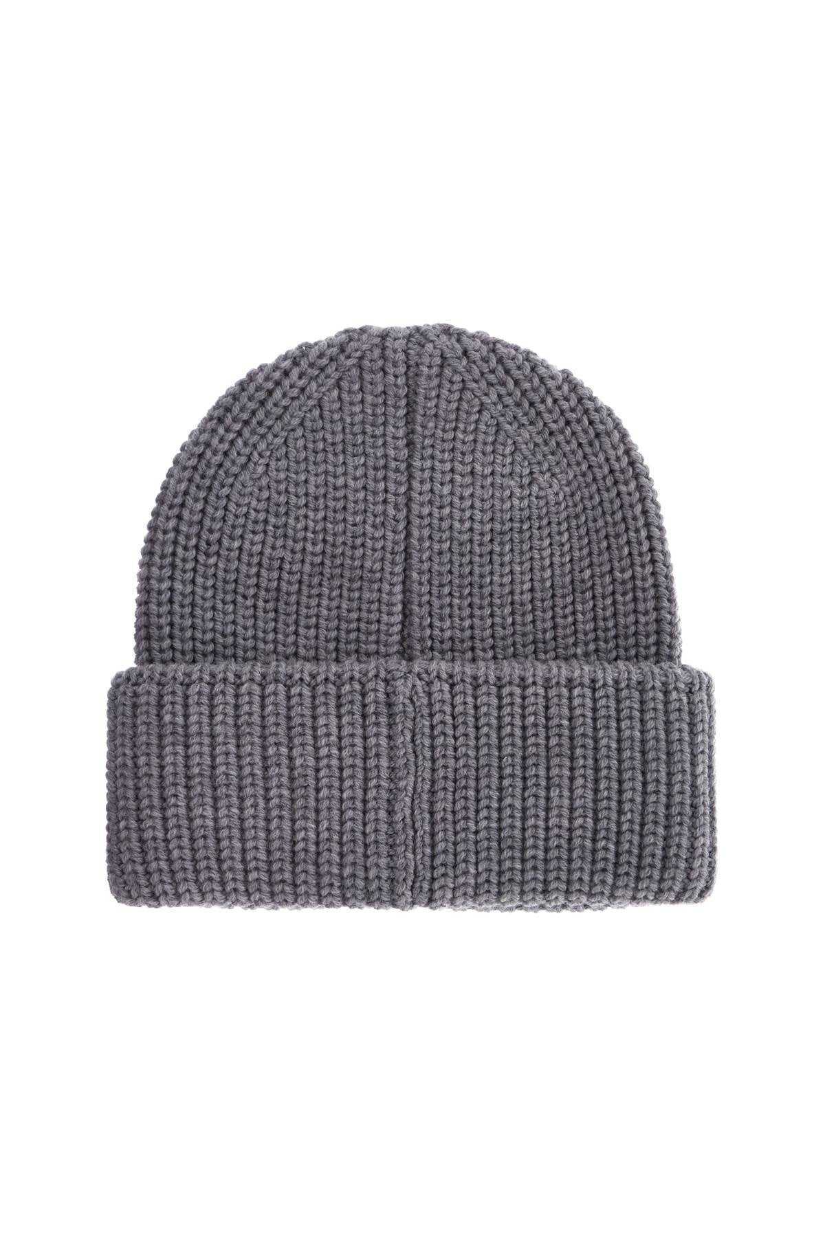 This Dsquared2 beanie hat is made of heavy ribbed wool and features an oversized design with a large logo patch on the fold. One size fits all. Size and Fit - Accessory Length = 63 cm,