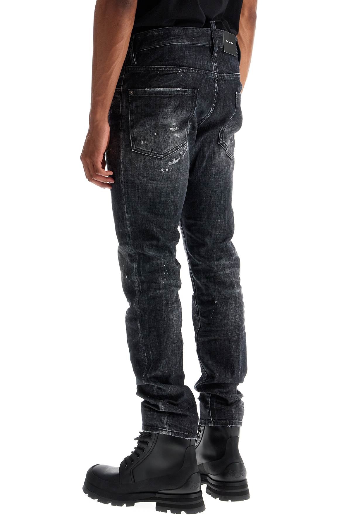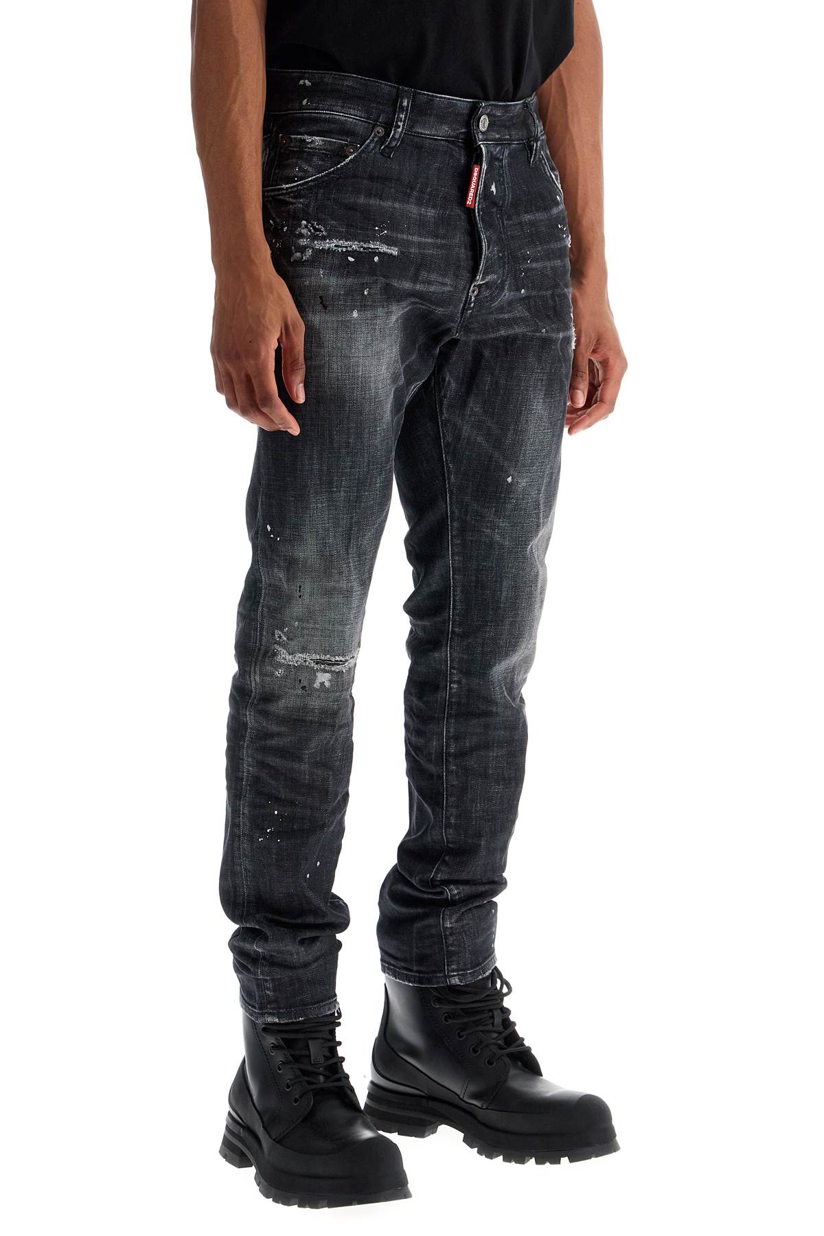 DSQUARED2 Cool Guy Jeans are black slim fit jeans with paint splatters. Made in Italy with stretch cotton, they offer unique comfort and style. Perfect for expressing individuality with elegance