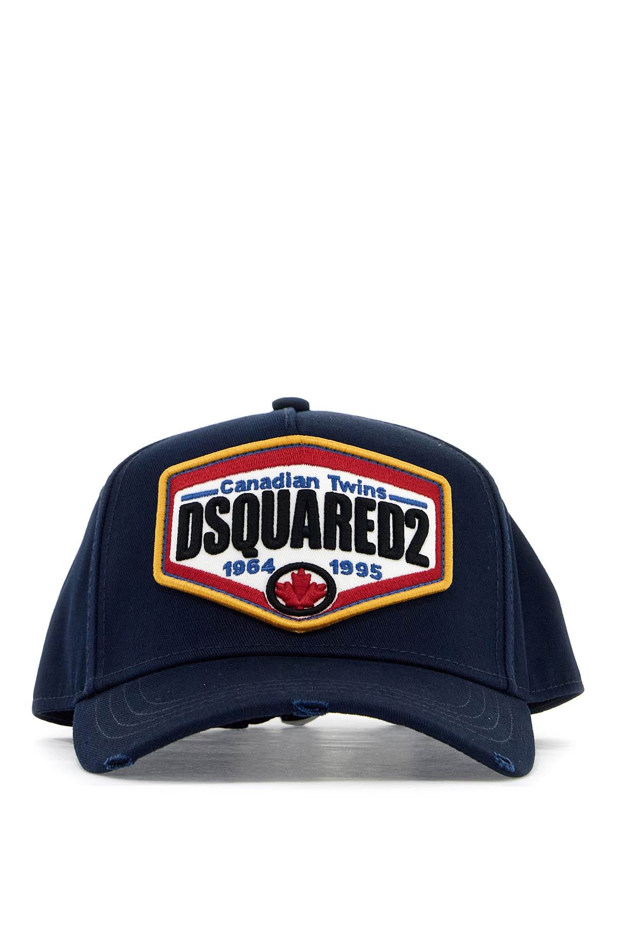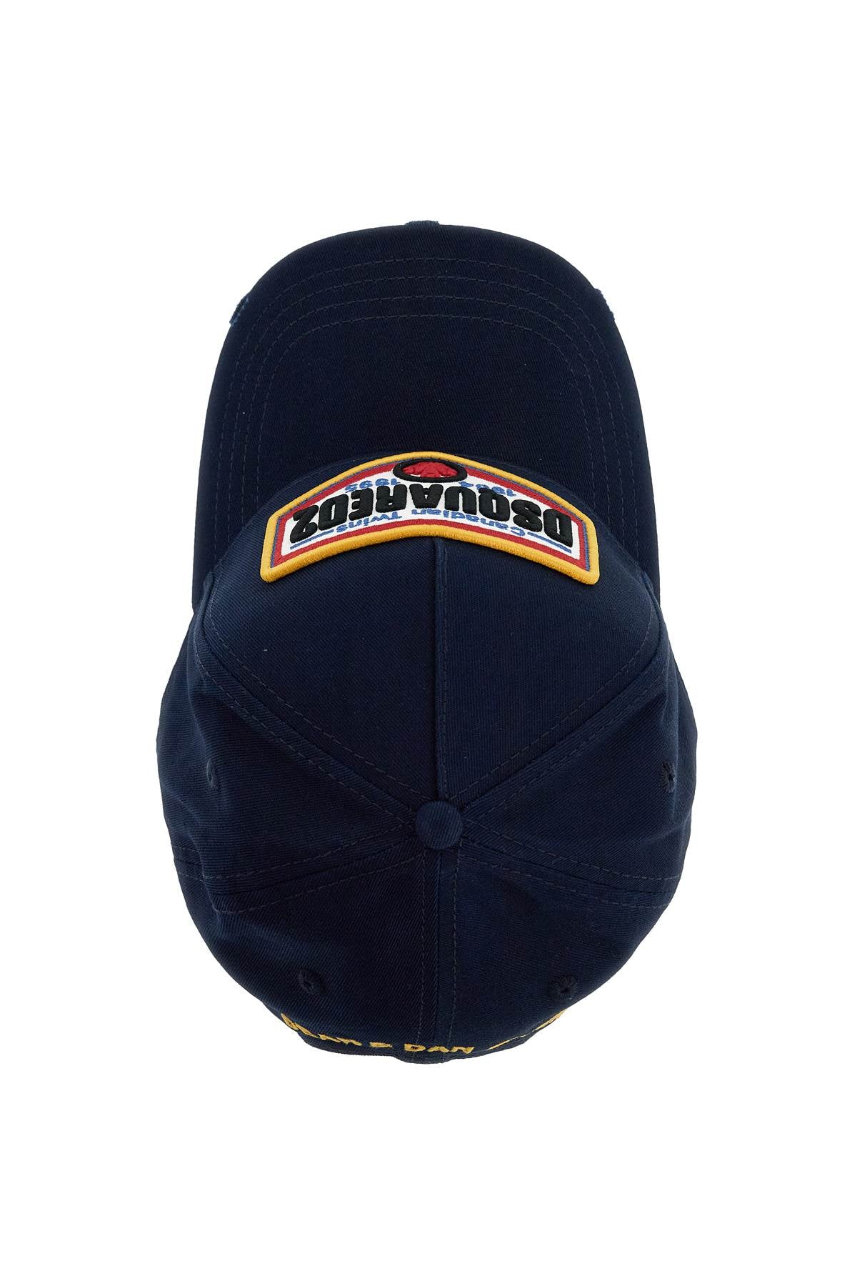 This DSQUARED2 baseball cap is made of cotton gabardine with destroyed details and a large country-inspired logo patch. Embroidered ventilation eyelets, lined interior, and adjustable back strap. One size fits all. Size and Fit - Accessory Length = 61 cm,