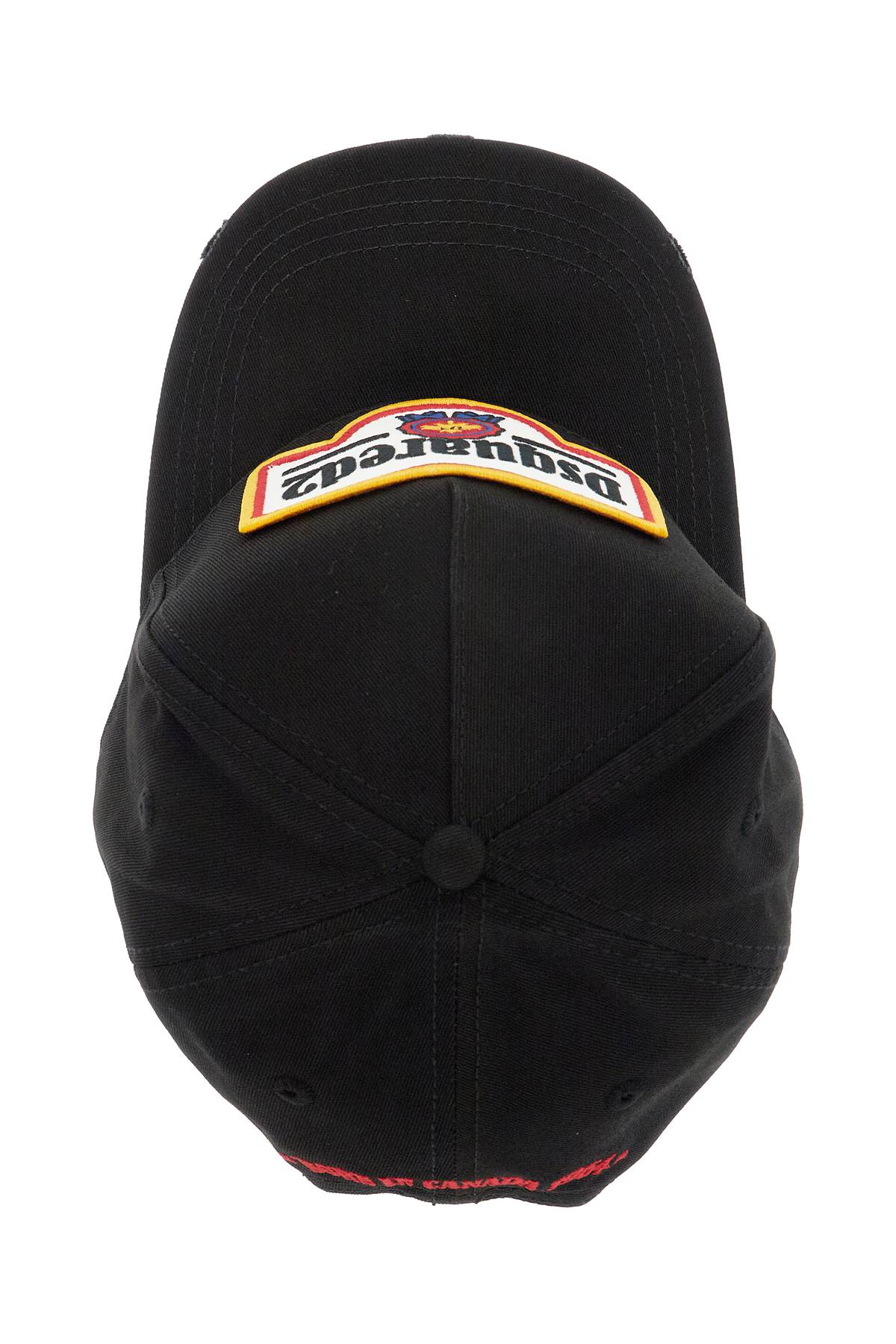This DSQUARED2 baseball cap is made of cotton gabardine with destroyed details and a large country-inspired logo patch. Embroidered ventilation eyelets, lined interior, and adjustable back strap. One size fits all. Size and Fit - Accessory Length = 61 cm,