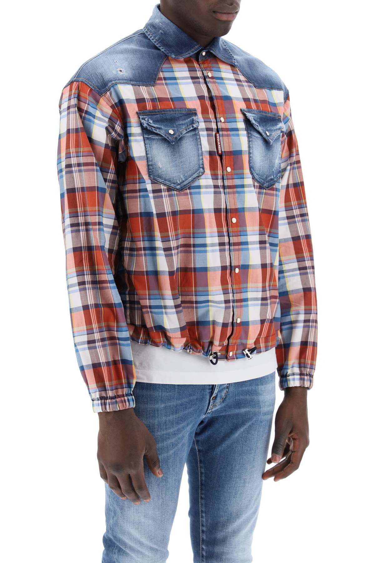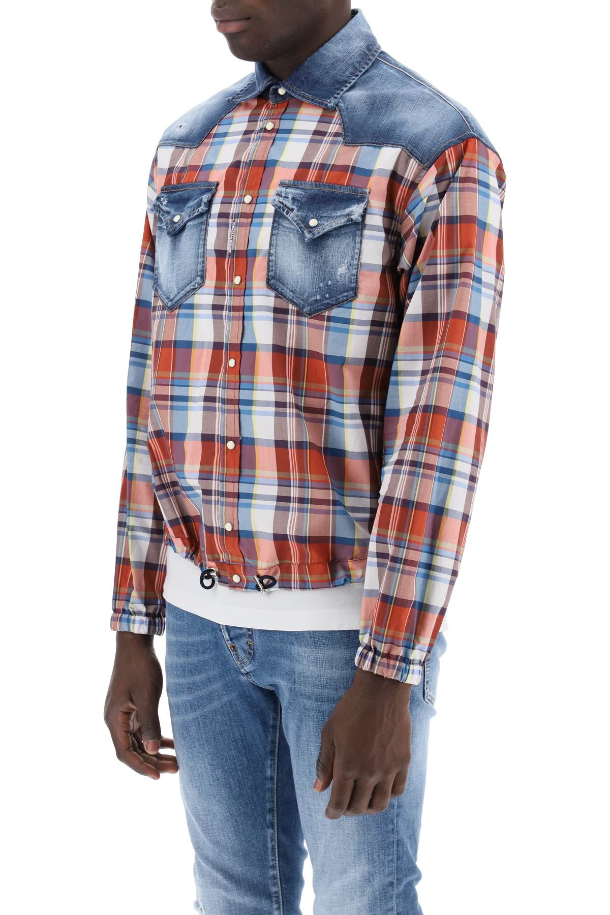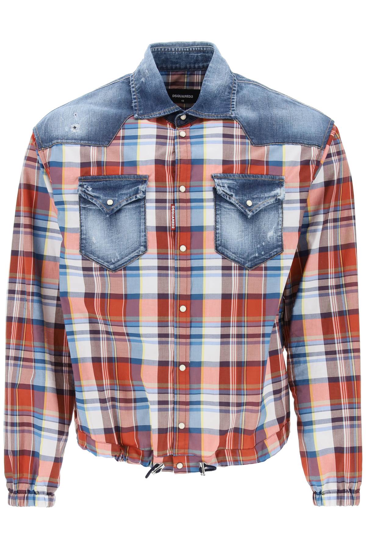 This Dsquared2 shirt is made of Oxford cotton with a plaid pattern, enriched by western-inspired denim yoke and chest pockets. It features a French collar, snap button closure, elasticized cuffs, and adjustable bottom with an elastic drawstring. Regular fit. The model is 187 cm tall and wears an IT size 48.