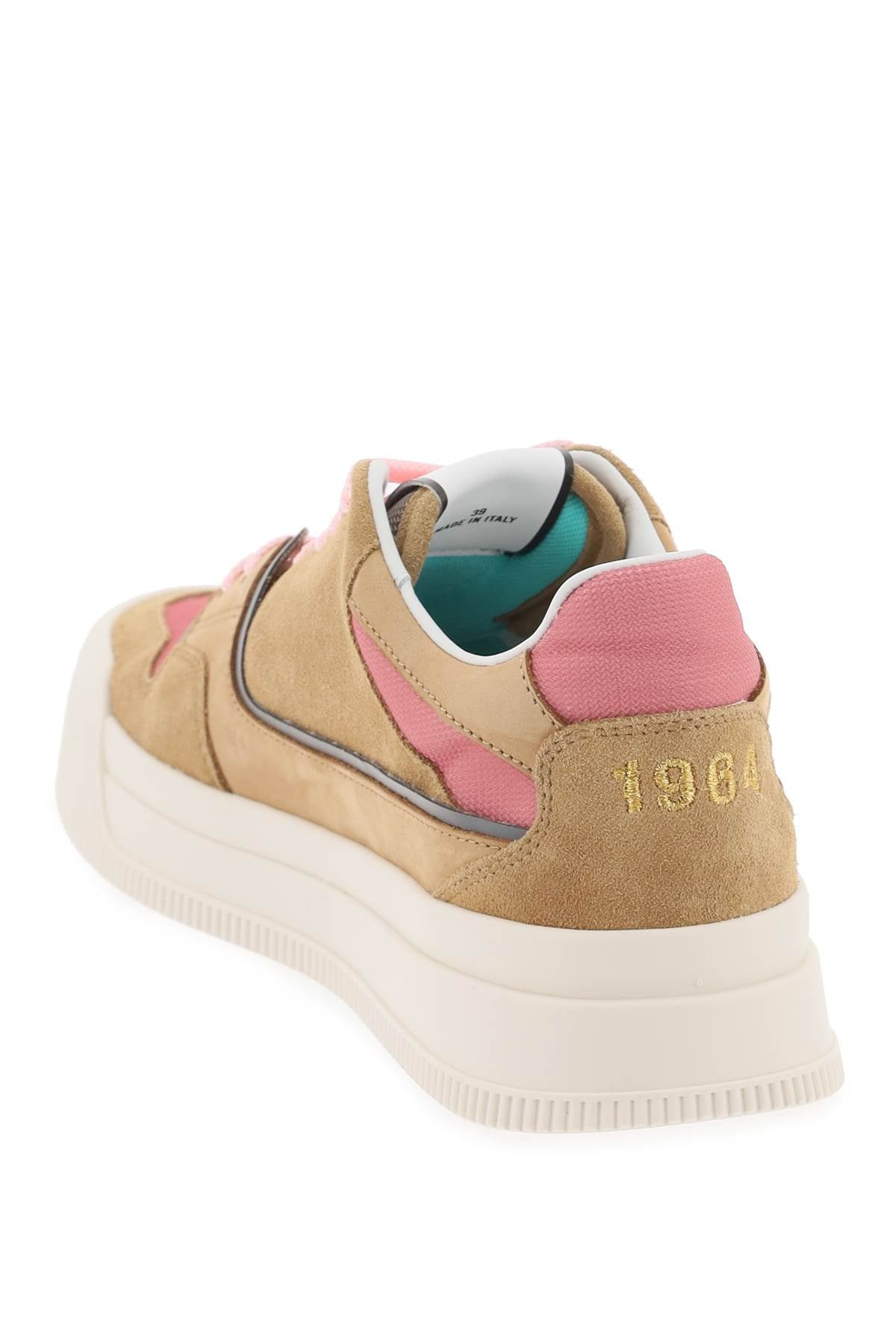 The Dsquared2 New Jersey sneakers are made of suede leather with contrasting nylon inserts and reflective details. They feature a puffed D2 print on the side and a 1984 lurex embroidery on the back, as well as a leather interior and insole. The rubber sole is embossed with the brand's logo. Size and Fit - Heel Height = 3,5 cm,