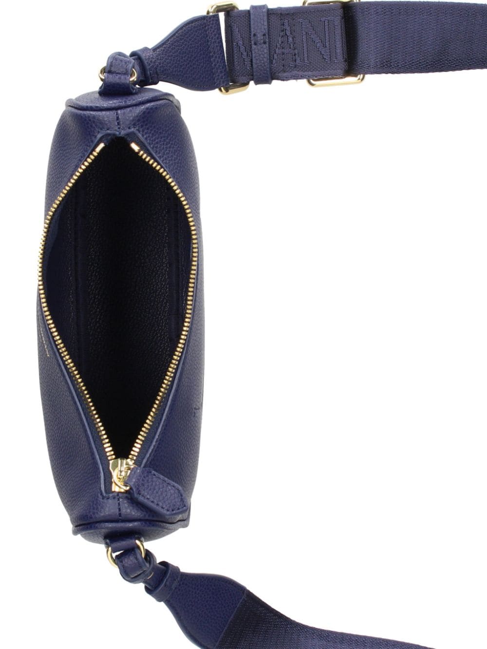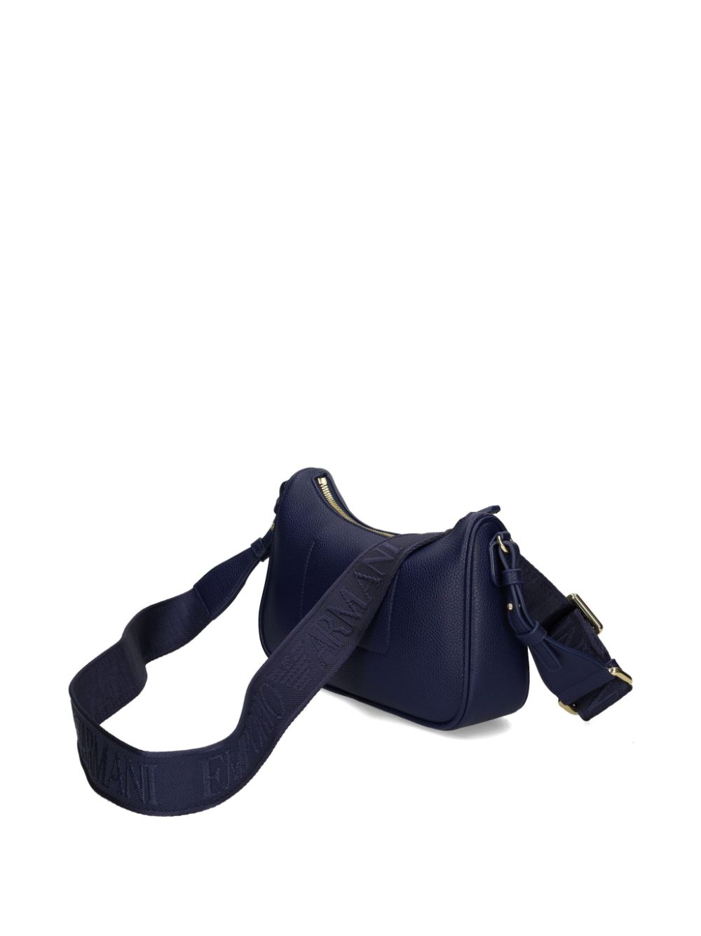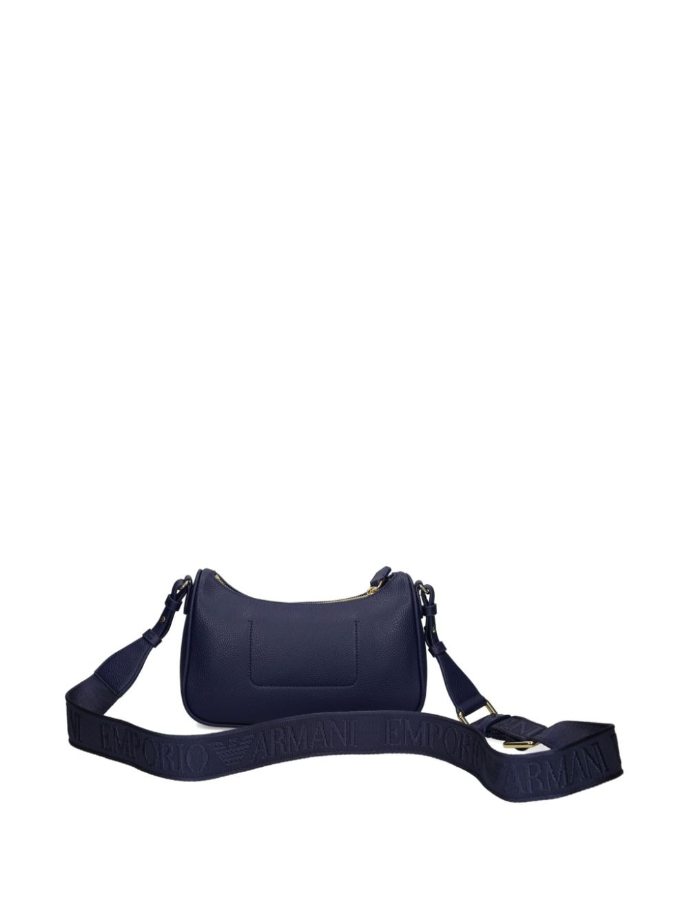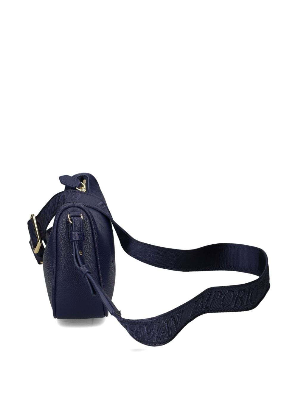 navy blue grained texture deer print silver-tone logo lettering adjustable logo-jacquard shoulder strap top zip fastening main compartment internal pocket Size and Fit - Width 8,66 in / 22 cm