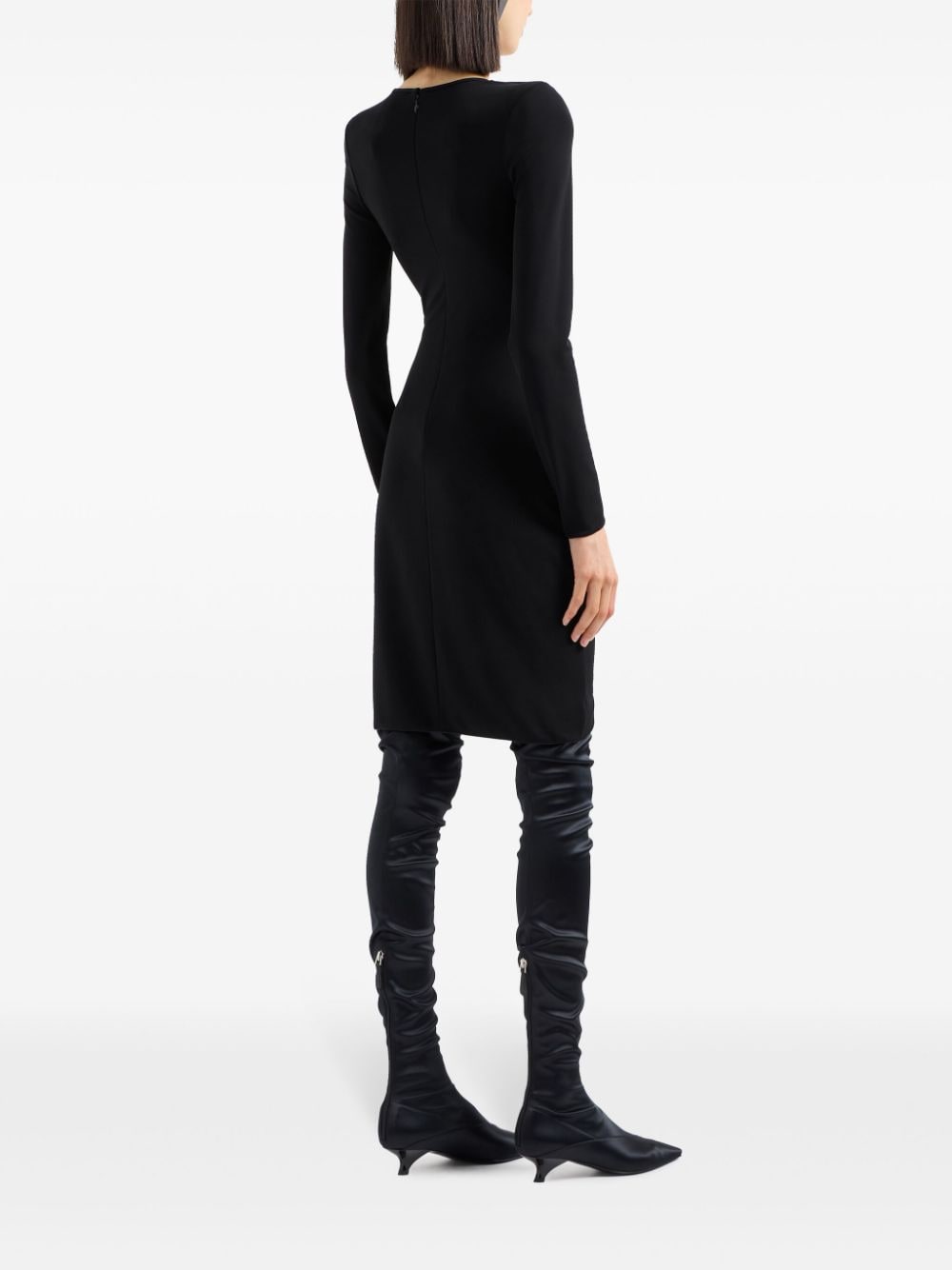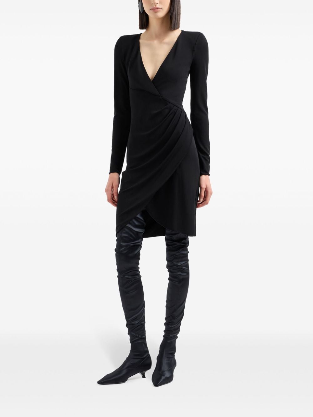 black crepe texture draped detailing crossover V-neck rear zip fastening long sleeves unlined below-knee length Size and Fit - This piece fits true to size. We recommend you get your regular size. Model is 1,75m / 5ft 8in wearing size 40 (IT)