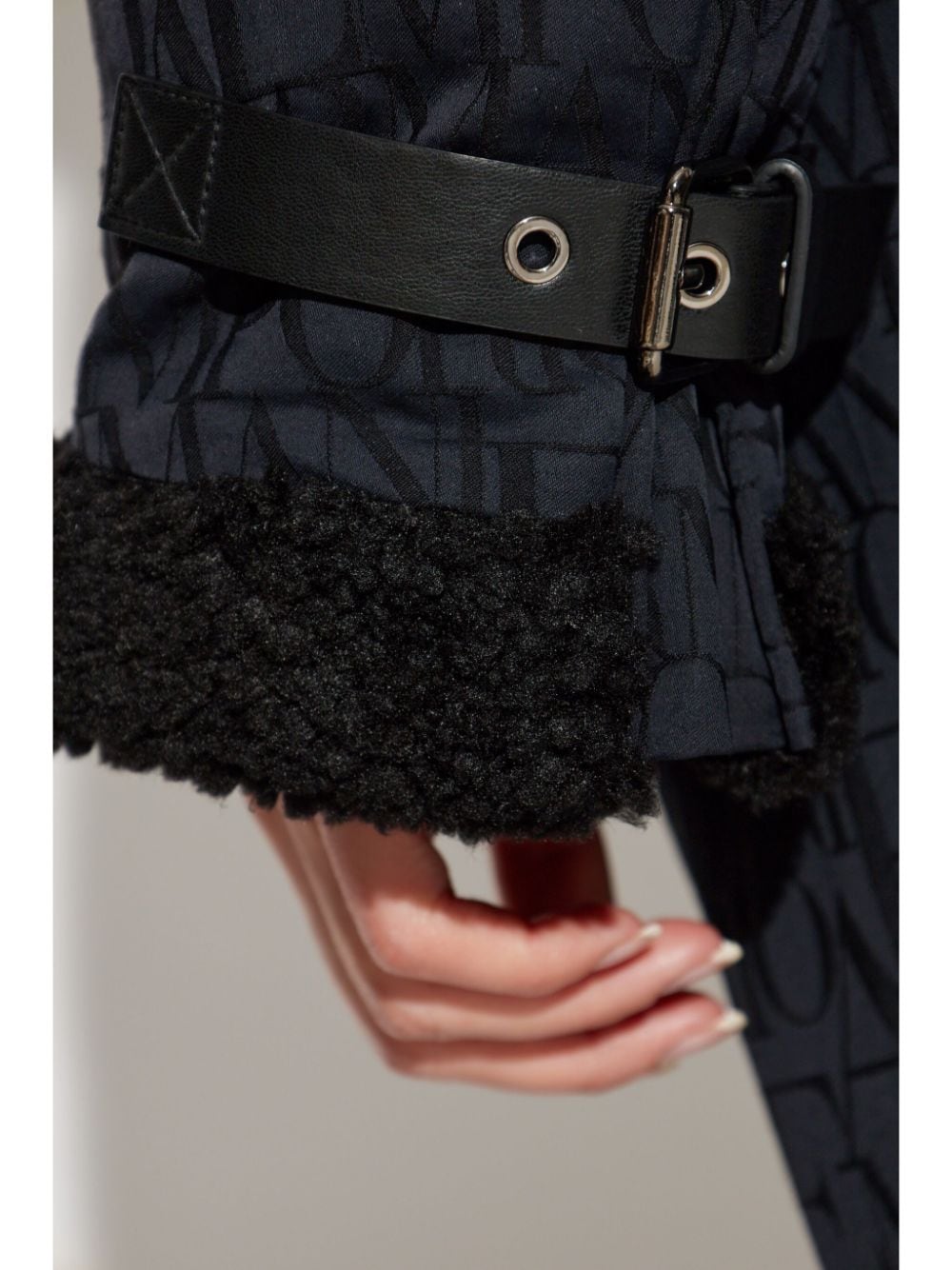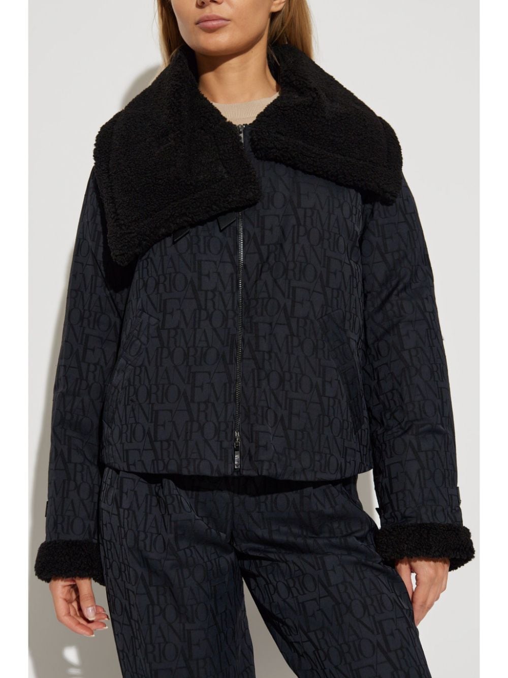 black virgin wool faux-fur trim matte finish zip fastening faux-fur collar logo-jacquard lining long sleeves straight hem Size and Fit - This piece fits true to size. We recommend you get your regular size. Model is 1,75m / 5ft 8in wearing size 40 (IT)