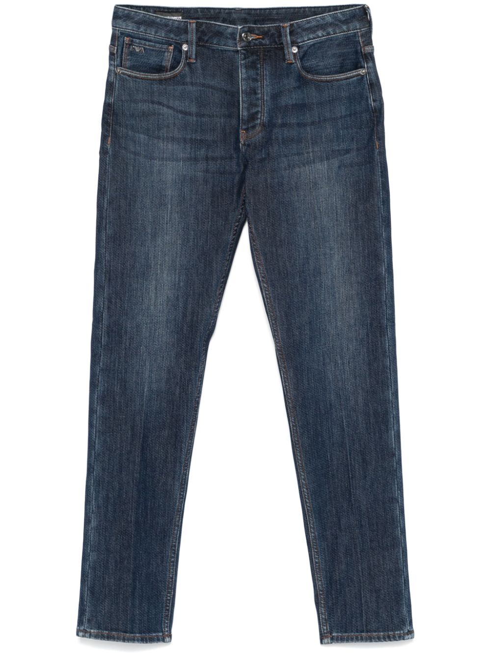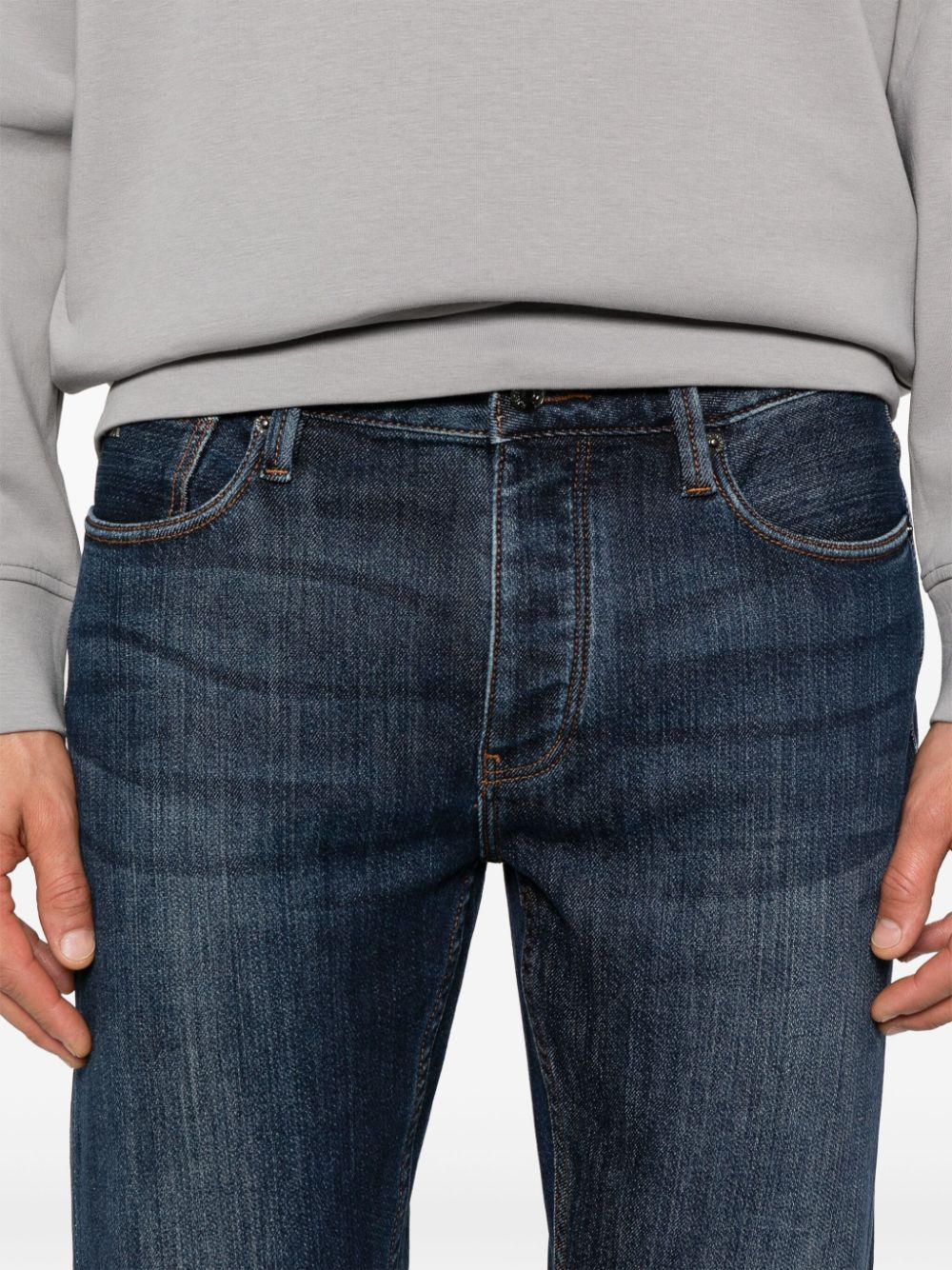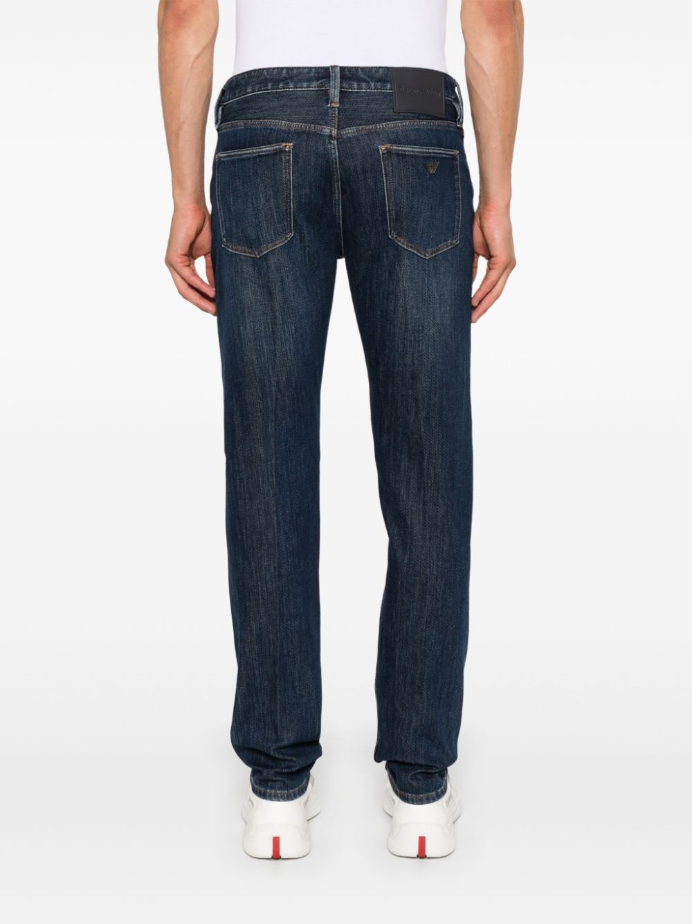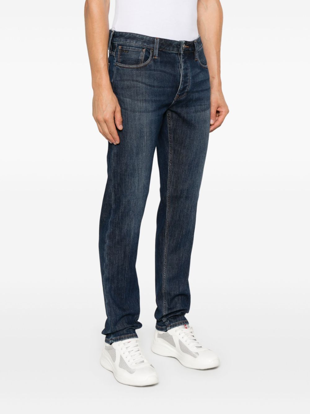 indigo blue cotton blend denim logo plaque front button fastening belt loops classic five pockets logo patch to the rear straight leg Size and Fit - This piece fits true to size. We recommend you get your regular size. Model is 1,84m / 6ft 1in wearing size 32 (WAIST CM)