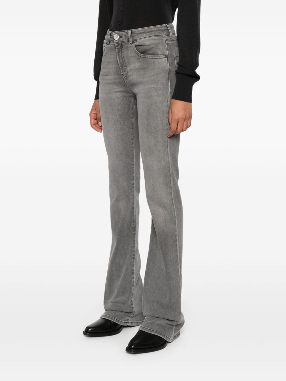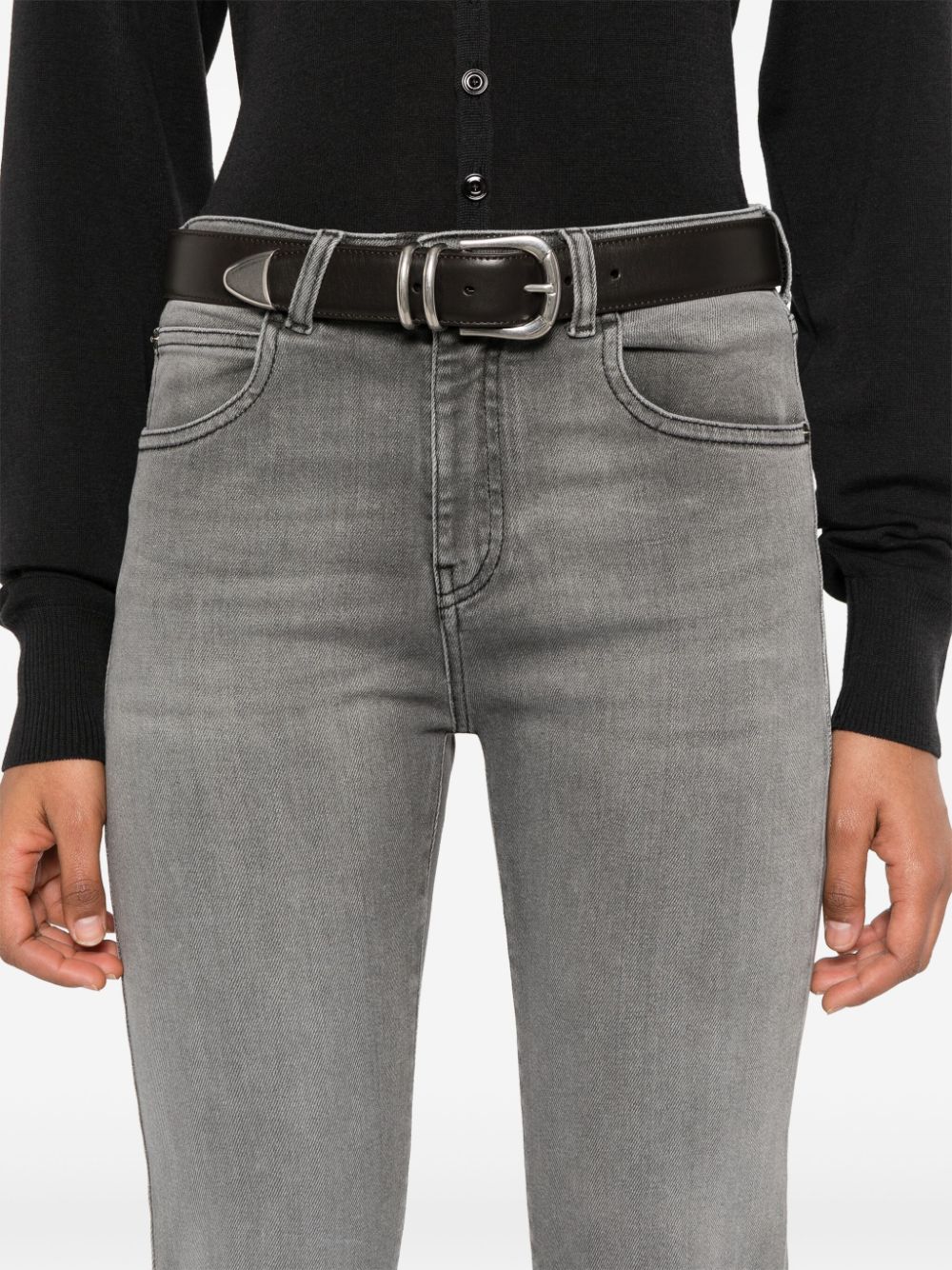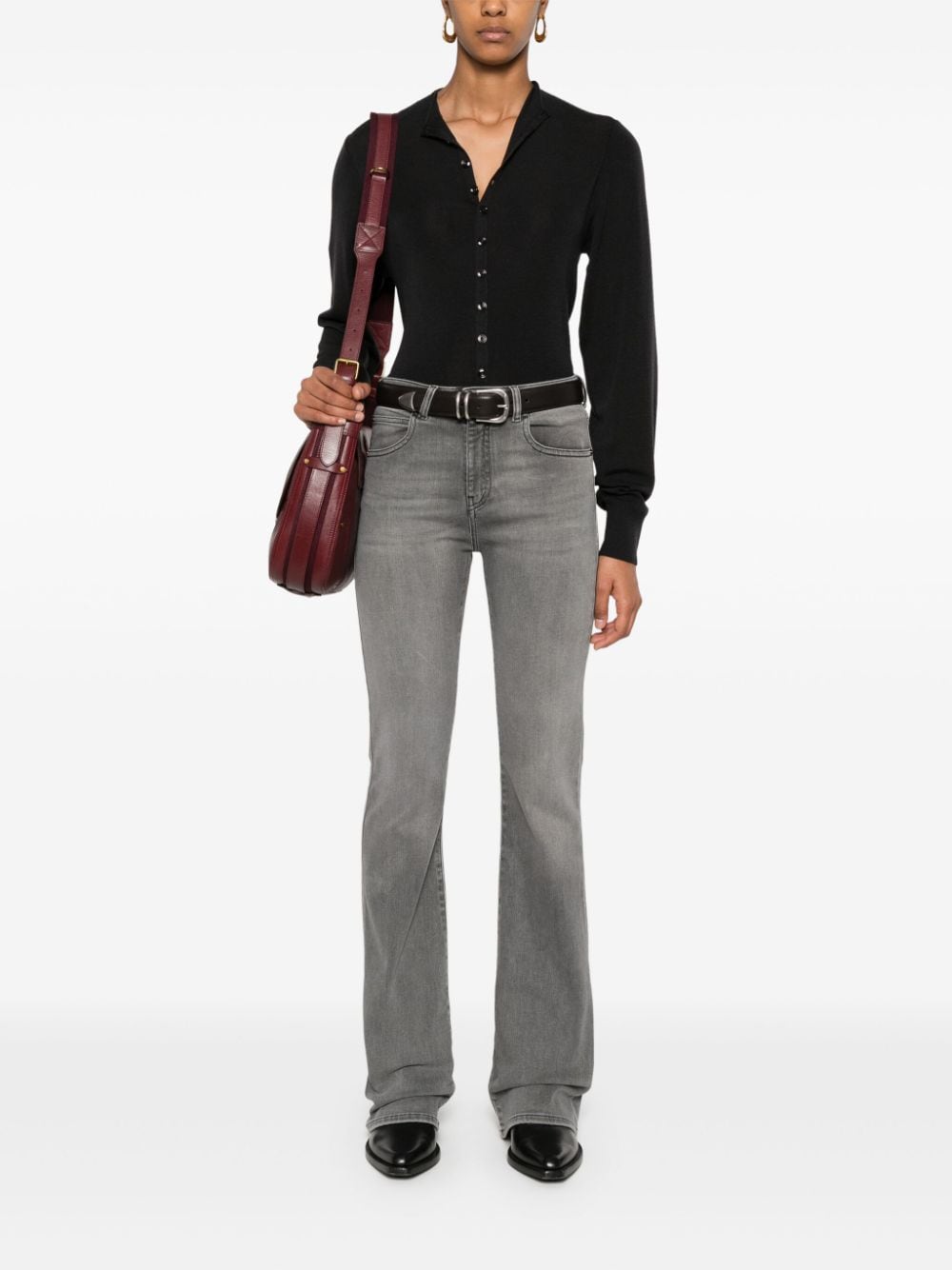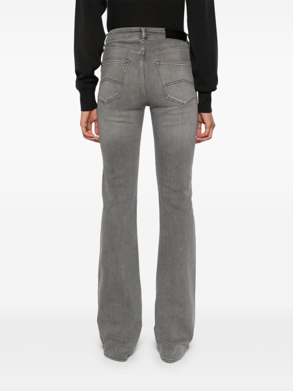 medium grey stretch-cotton washed denim concealed fly and button fastening belt loops classic five pockets leather tag flared Size and Fit - This piece fits true to size. We recommend you get your regular size. Model is 1,75m / 5ft 8in wearing size 27 (WAIST CM)