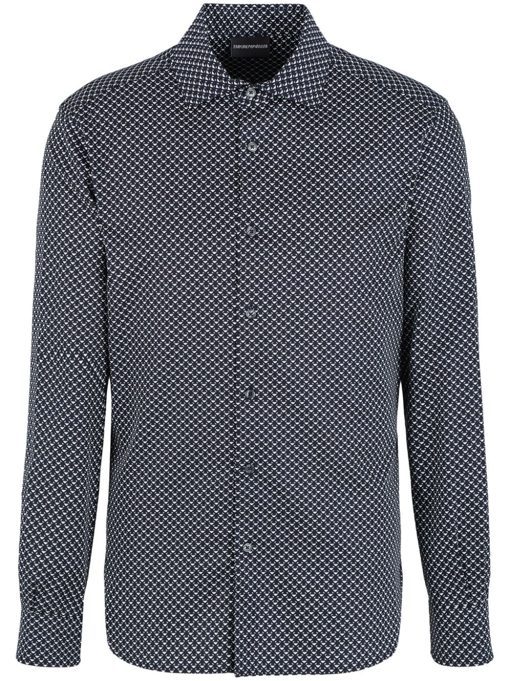 black/white stretch-cotton all-over logo print classic collar front button fastening shirt sleeves buttoned cuffs curved hem Size and Fit - This piece fits true to size. We recommend you get your regular size. Model is 1,84m / 6ft 1in wearing size M