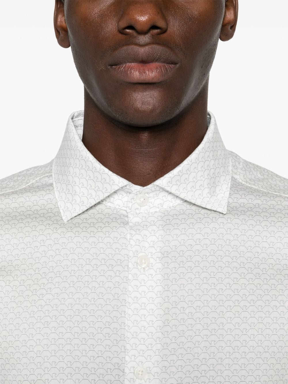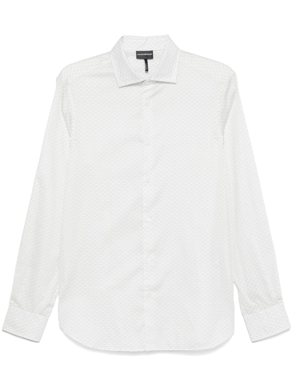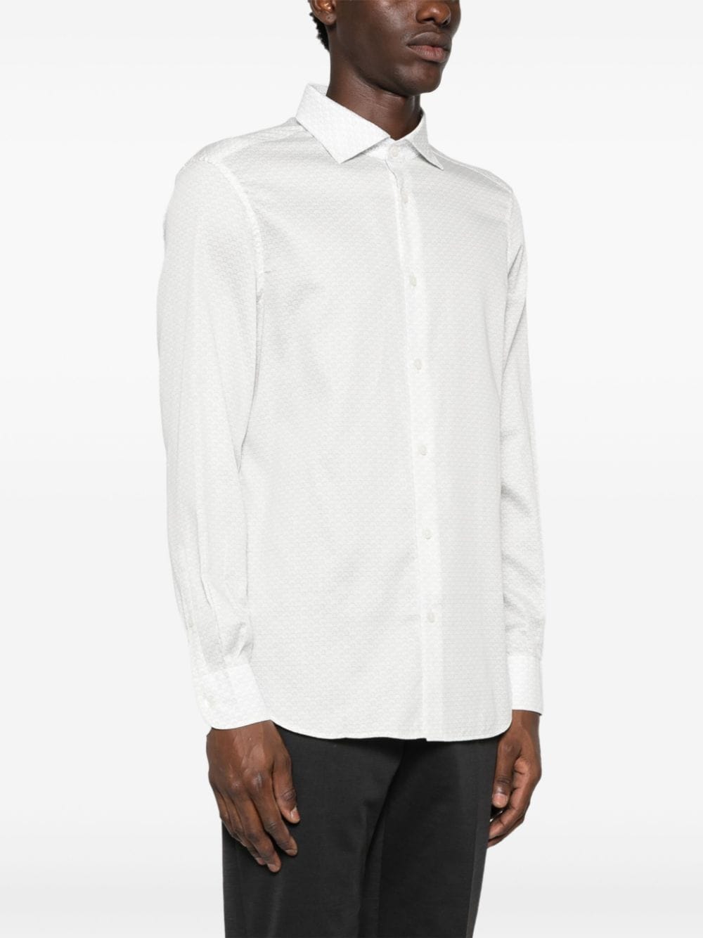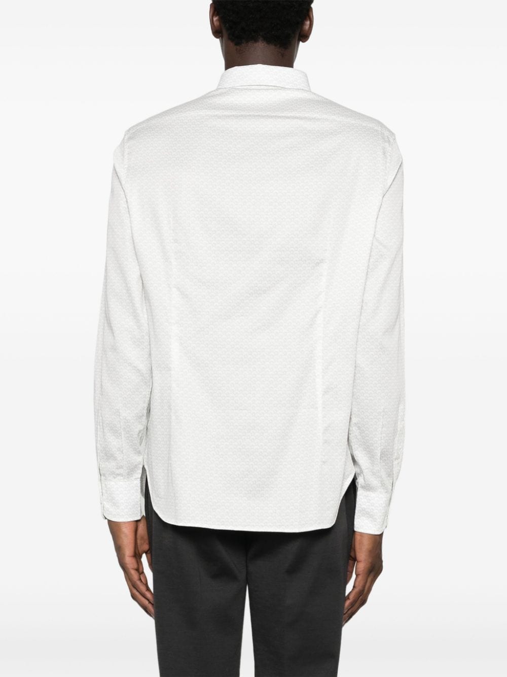 white/grey cotton blend poplin texture all-over logo print front button fastening classic collar long sleeves buttoned cuffs curved hem Size and Fit - This piece fits true to size. We recommend you get your regular size. Model is 1,84m / 6ft 1in wearing size M