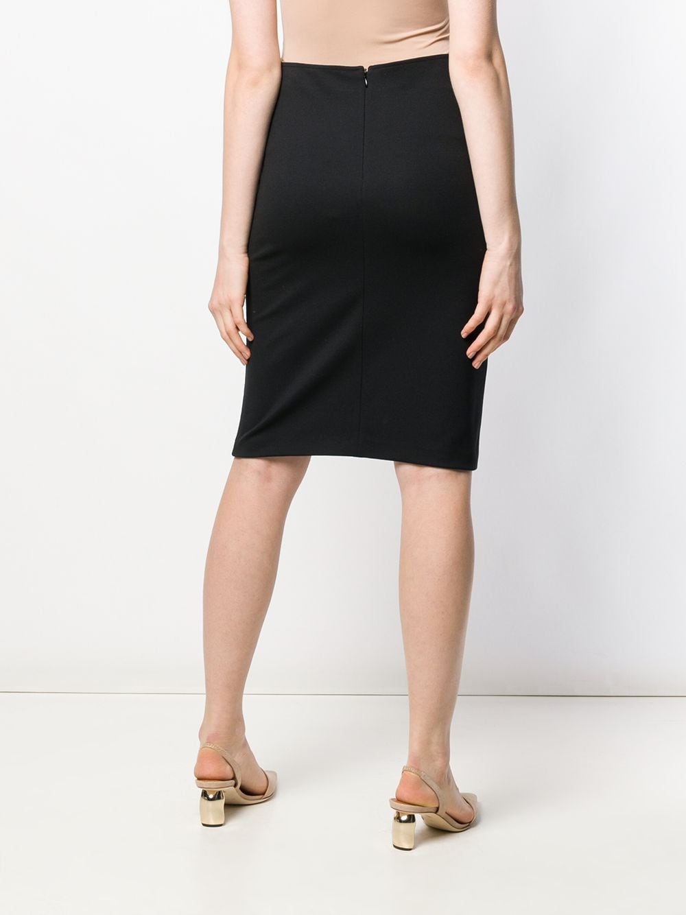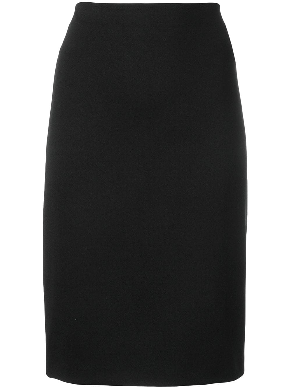 By being strongly focused on both style and functionality, Giorgio Armani creates elegant designs for the modern man that combine traditional standards of production with a dash of irreverent attitude. This black basic midi skirt from Emporio Armani features a high waist and a straight hem. Size and Fit - This piece fits true to size. We recommend you get your regular size. Model is 1,75m / 5ft 8in wearing size 40 (IT)