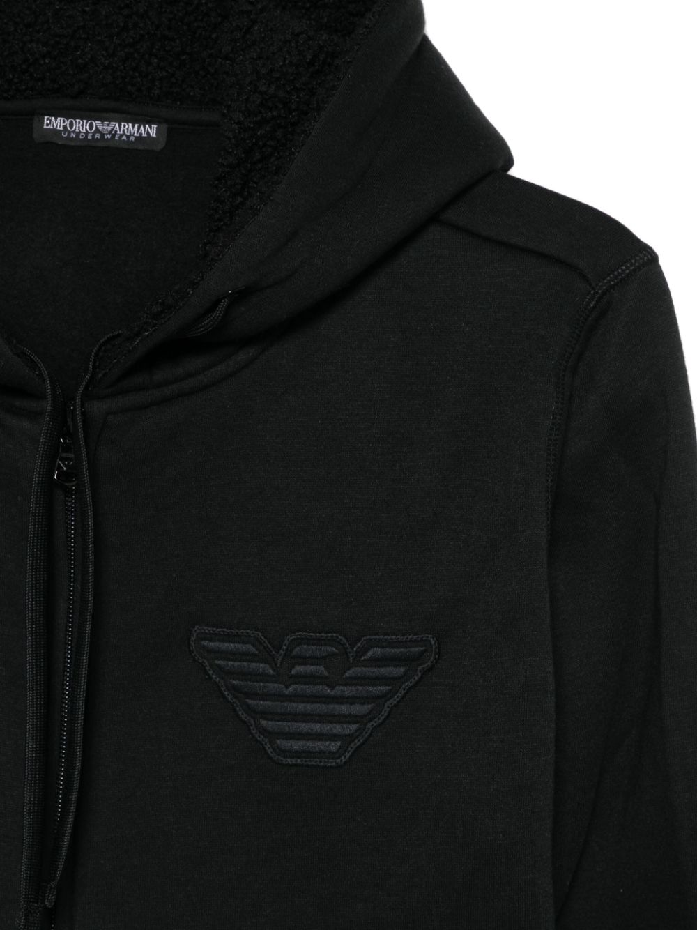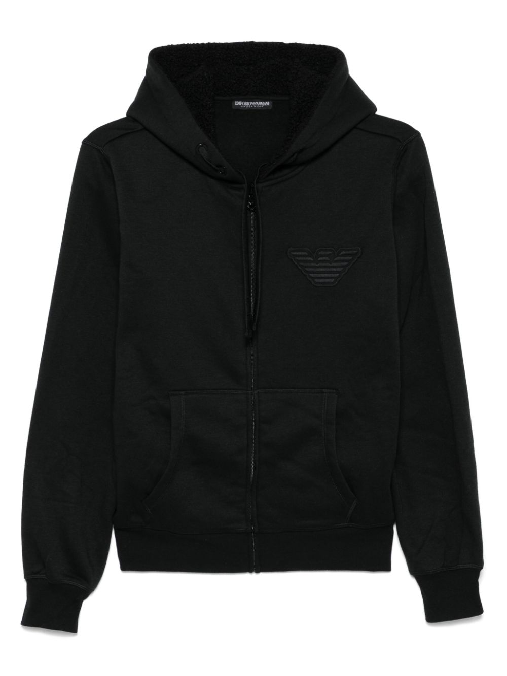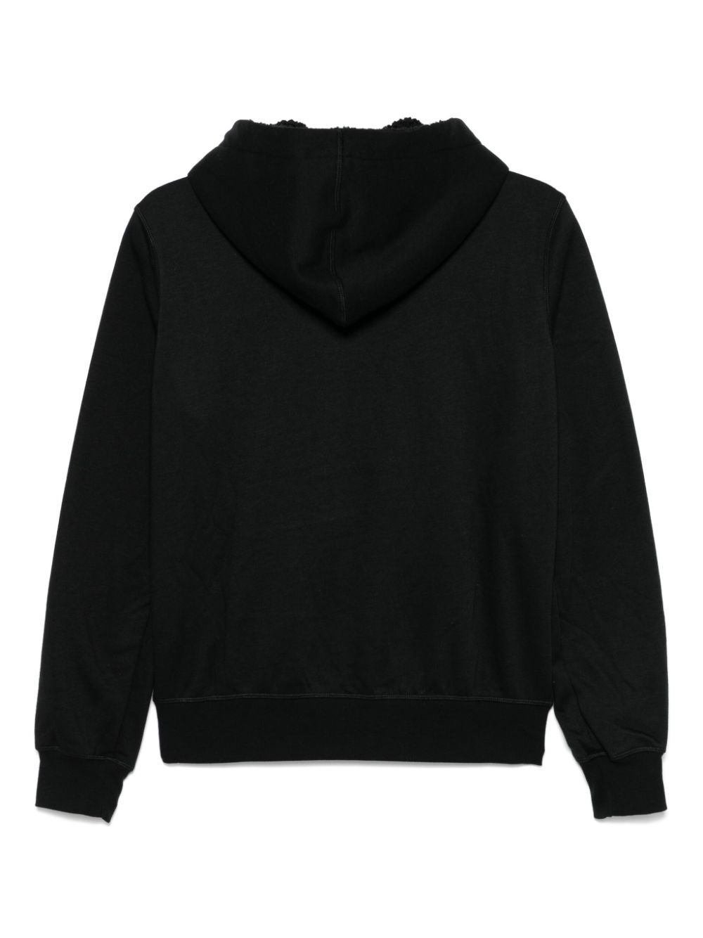 Black front zip fastening two front pouch pockets ribbed cuffs and hem drawstring hood. Size and Fit - This piece fits true to size. We recommend you get your regular size. Model is 1,75m / 5ft 8in wearing size S