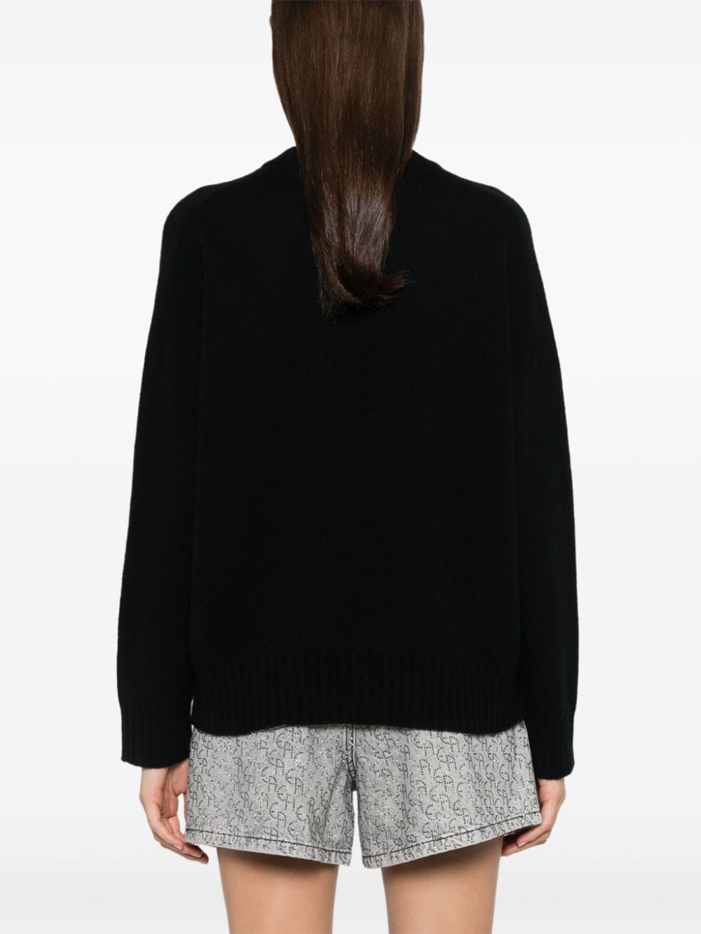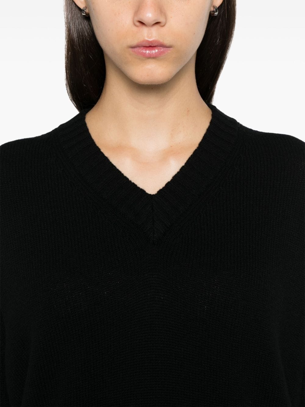 black virgin wool-cashmere blend fine knit ribbed trim V-neck drop shoulder long sleeves straight hem Size and Fit - This piece fits true to size. We recommend you get your regular size. Model is 1,75m / 5ft 8in wearing size S