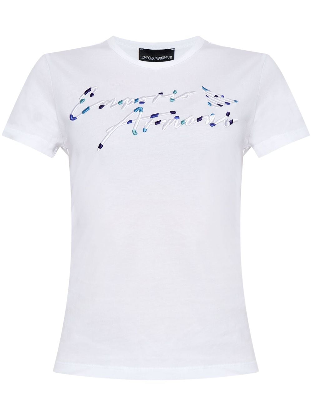white/multicolour cotton embroidered logo to the front crew neck short sleeves straight hem Size and Fit - This piece fits true to size. We recommend you get your regular size. Model is 1,75m / 5ft 8in wearing size S