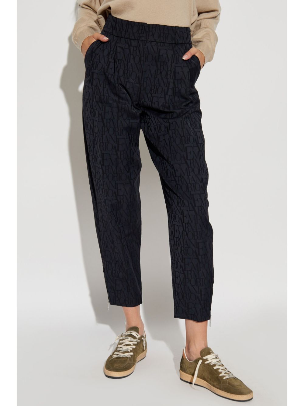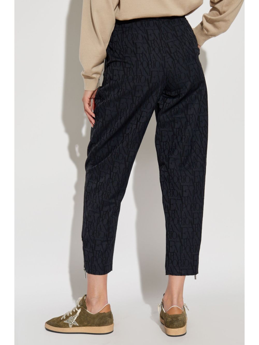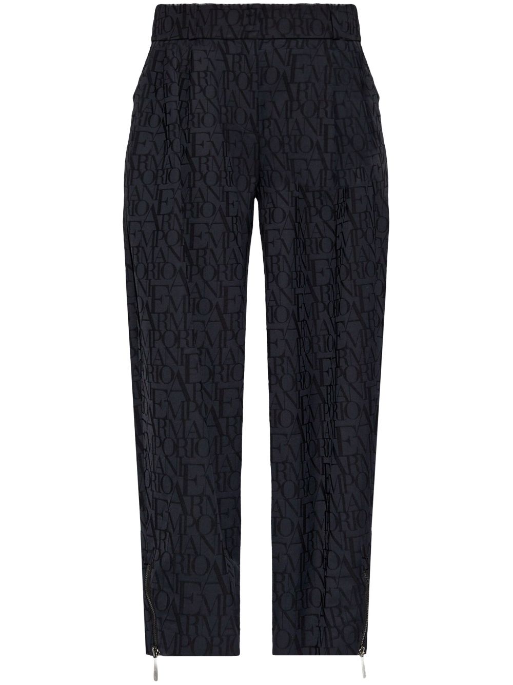 black virgin wool blend monogram print tapered leg belt loops elasticated waistband zip details two side slit pockets ankle-length Size and Fit - This piece fits true to size. We recommend you get your regular size. Model is 1,75m / 5ft 8in wearing size 40 (IT)