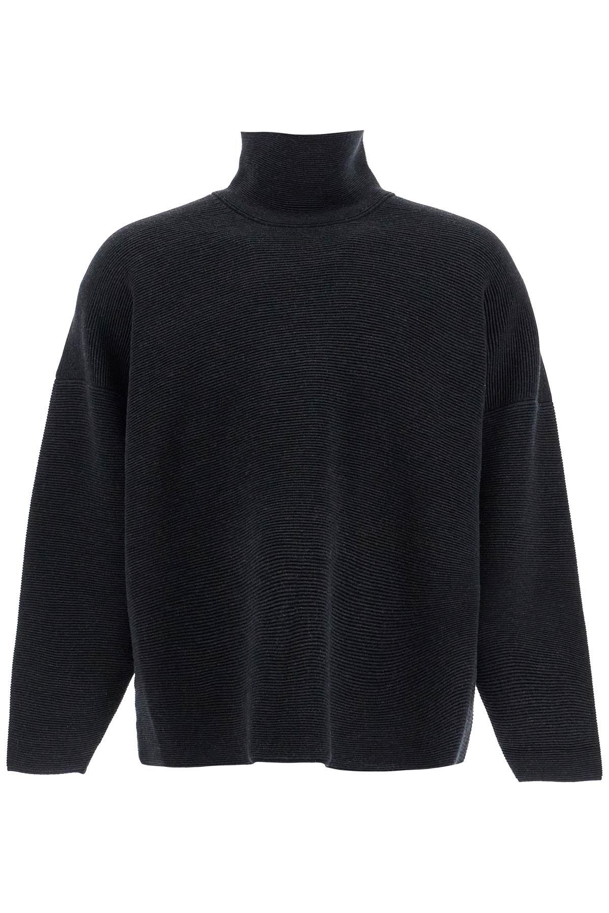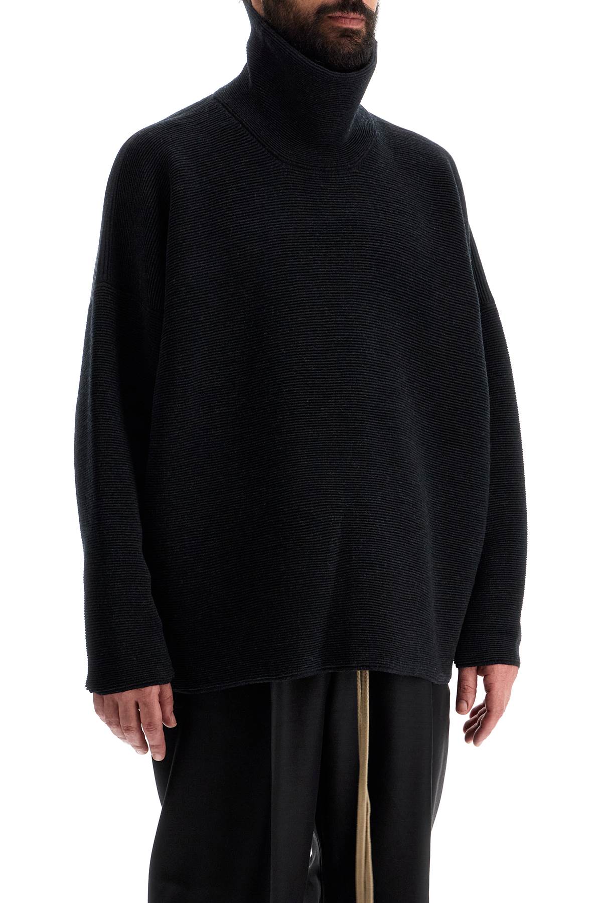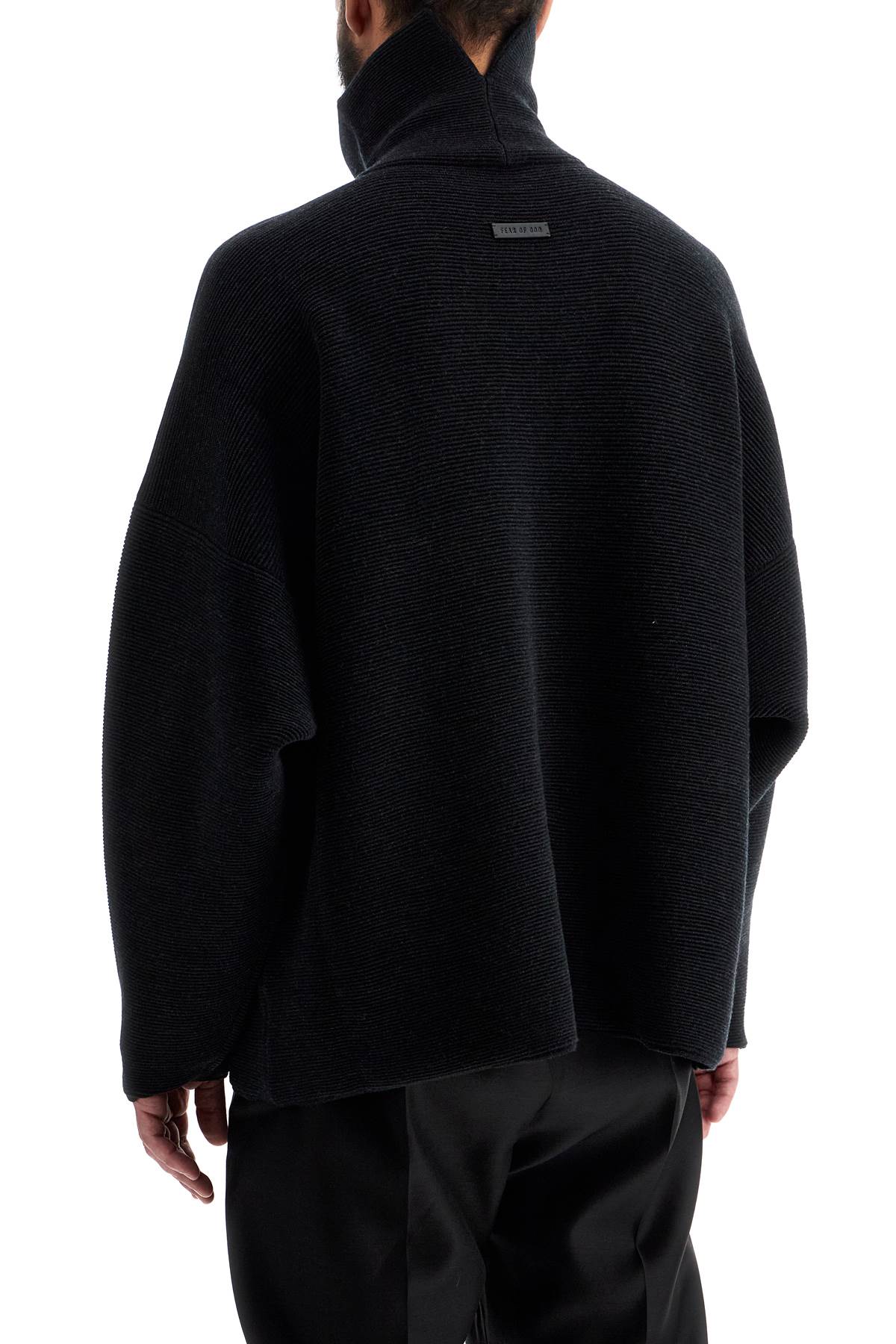 This Fear Of God high-neck sweater is made of pure virgin wool with an ottoman weave. It features an oversized fit with a split at the back of the neck and a leather logo label on the back. The model is 187 cm tall and wears size L.