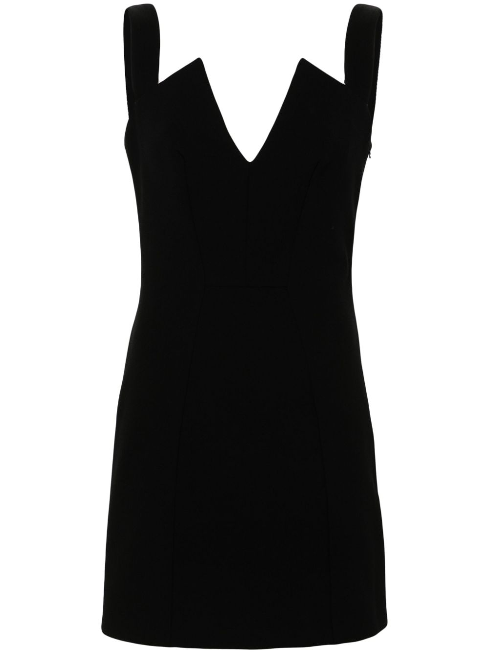 black cady texture concealed side hook and zip fastening V-neck sleeveless dart detailing scoop back full lining straight hem above-knee length Size and Fit - This piece fits true to size. We recommend you get your regular size. Model is 1,75m / 5ft 8in wearing size 36 (FR)