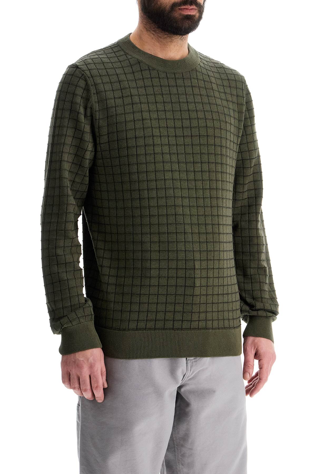 The HUGO sweater in dark green cotton offers timeless elegance. With a checkered design and double-knit texture, it combines comfort and style for a versatile and sophisticated look.