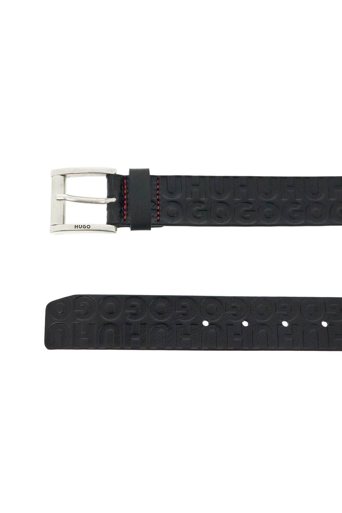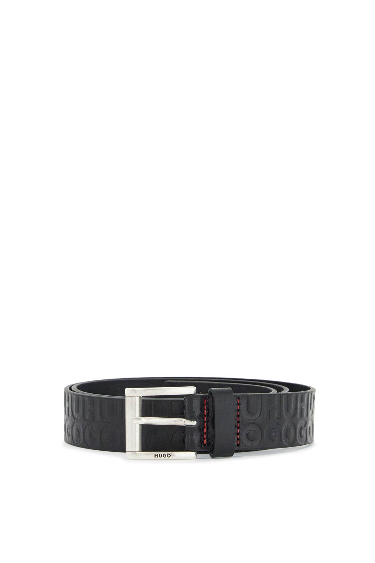 The HUGO GRANGER-DEB_SZ35 men's belt offers elegance and versatility. Made of black leather with a logo pattern and metal buckle, it suits both formal and casual looks. A durable and timeless luxury accessory. Size and Fit - Accessory Length = 3.5 cm, Accessory Height = 5.0 cm, Accessory Weight = 100.0 cm,