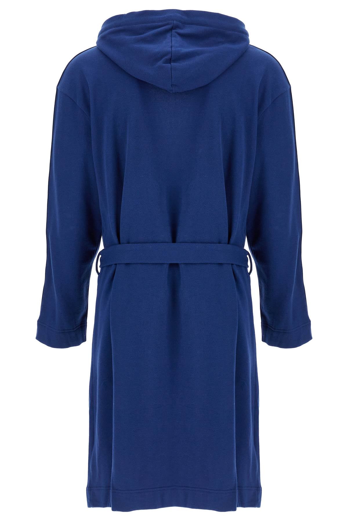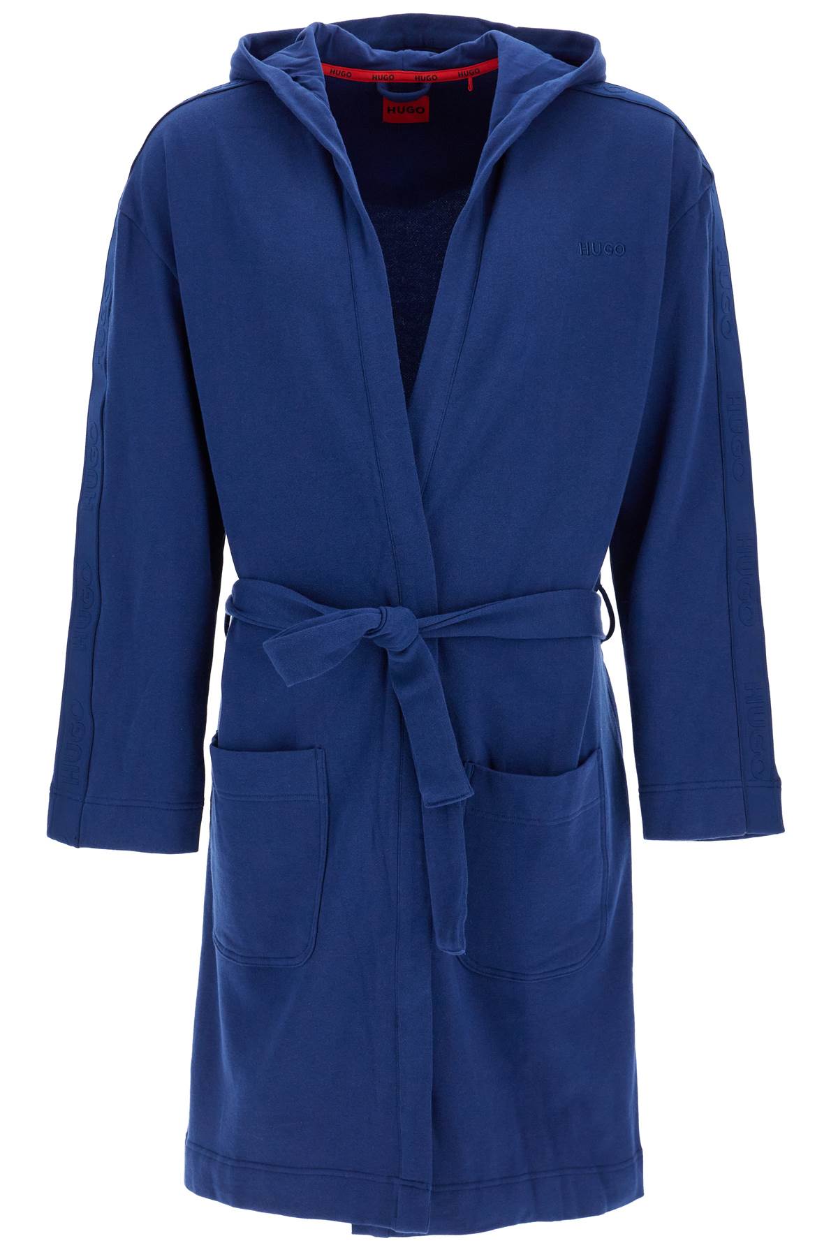 The HUGO men's bathrobe offers everyday luxury in dark blue cotton. With long sleeves, hood, and pockets, it combines comfort and style. The HUGO logo adds a touch of prestige.
