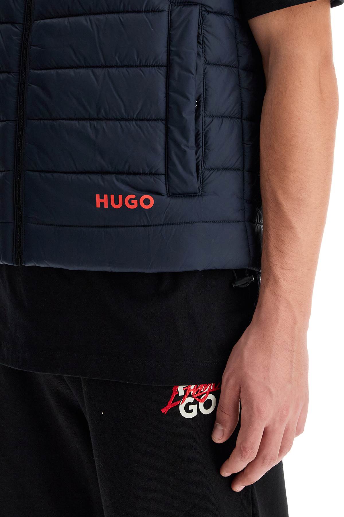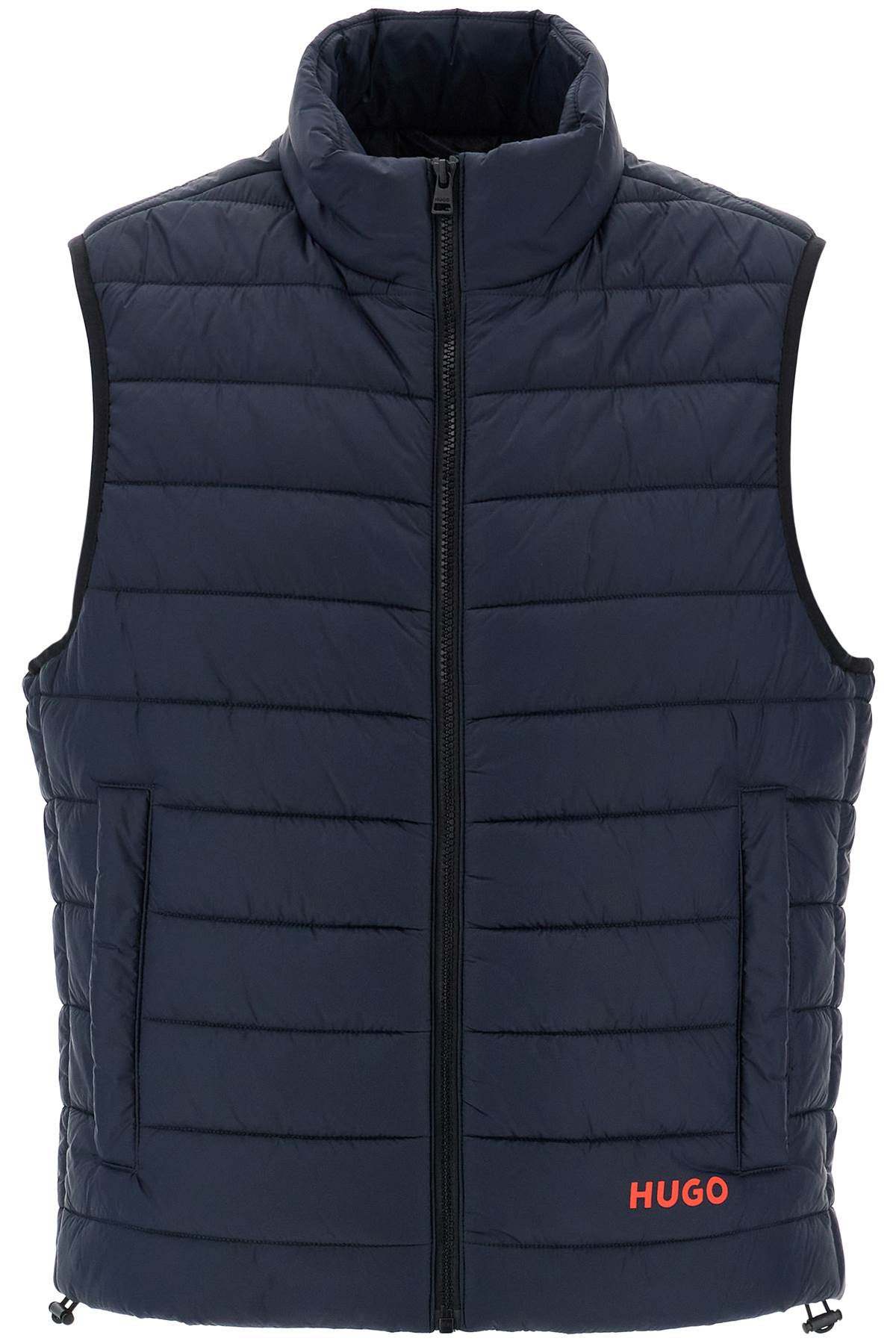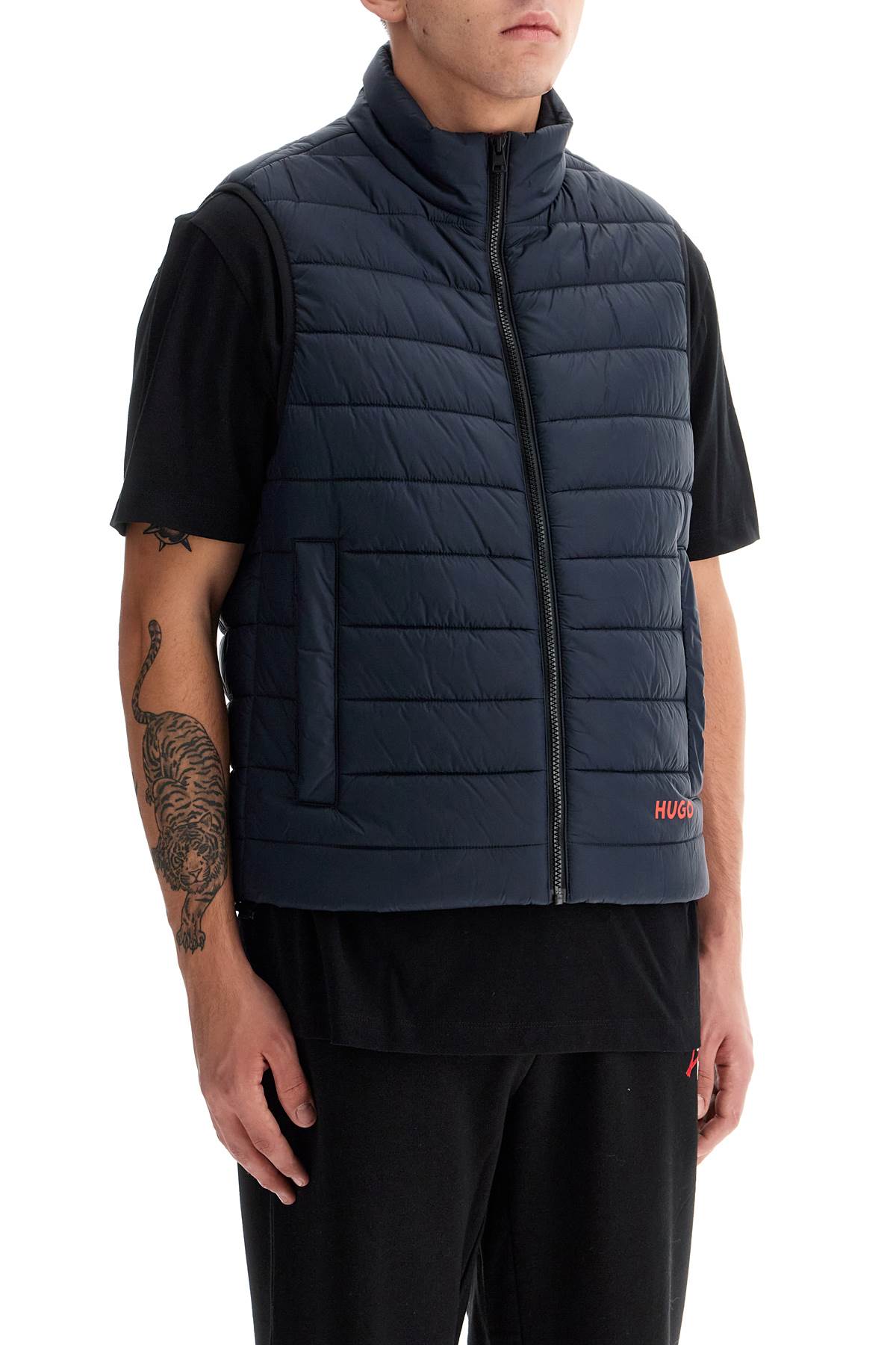 Made from water-repellent recycled nylon with light polyester padding, this quilted Hugo vest features a simple design with a raised collar, zip closure, and side pockets with snap buttons. An inner pocket completes the garment. Regular fit. The model is 182 cm tall and wears size L.