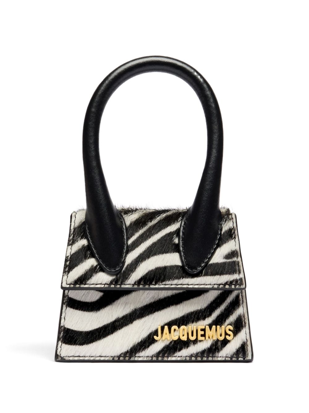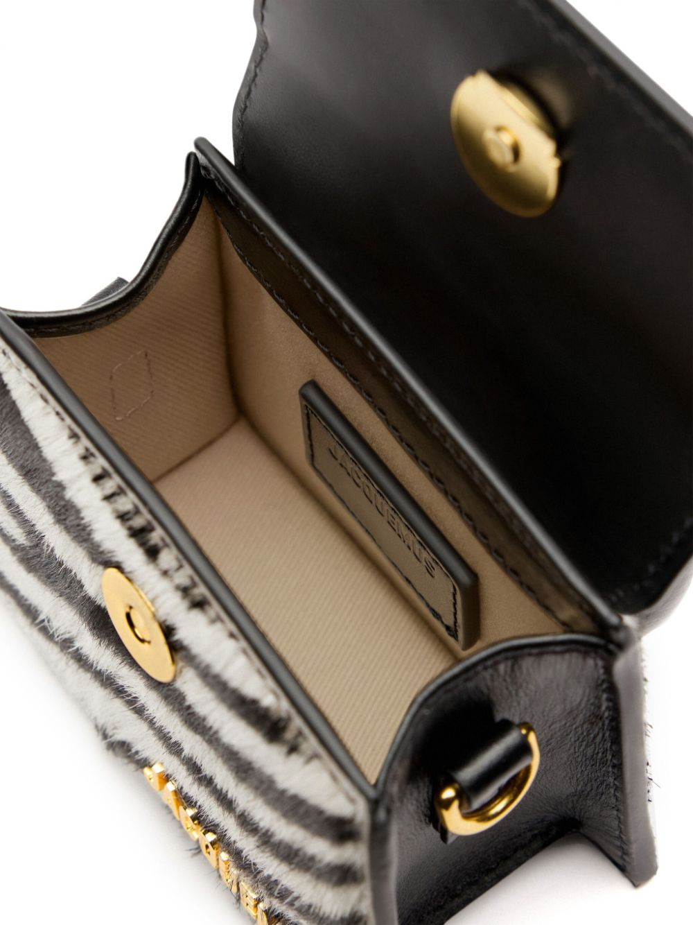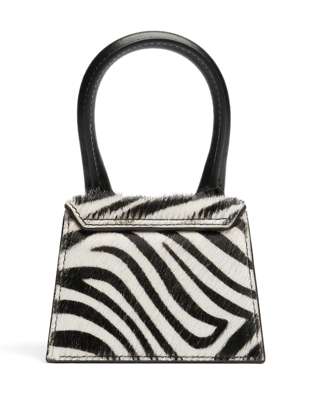 black/white calf hair zebra print foldover top with magnetic fastening single top handle adjustable detachable shoulder strap logo plaque internal slip pocket internal logo patch main compartment Size and Fit - Width 3,54 in / 9 cm