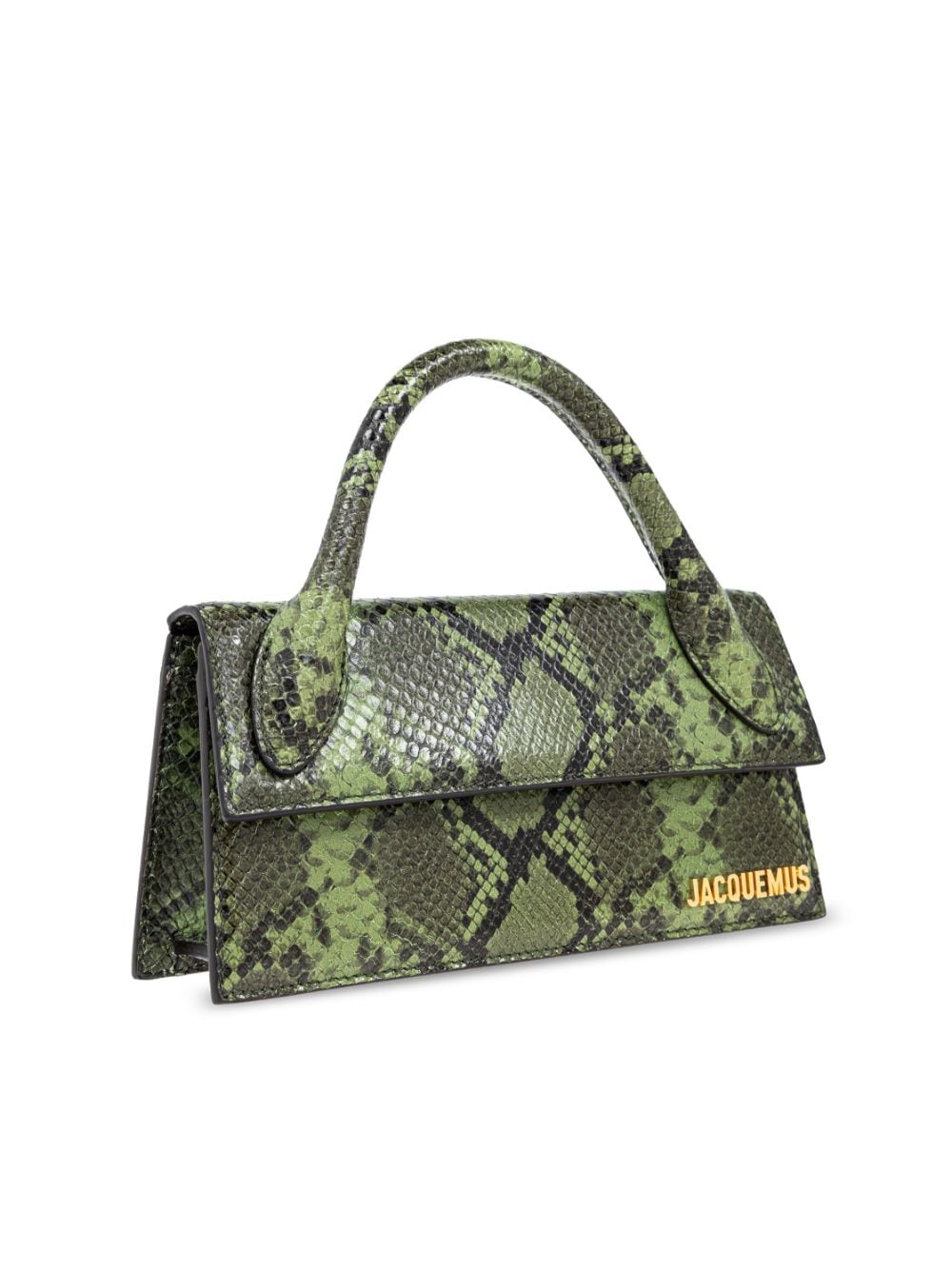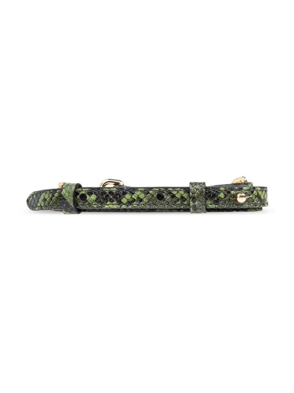 green calf leather snakeskin effect gold-tone logo lettering foldover top with magnetic fastening two rolled top handles adjustable detachable shoulder strap internal slip pocket internal logo patch main compartment Size and Fit - Width 8,66 in / 22 cm