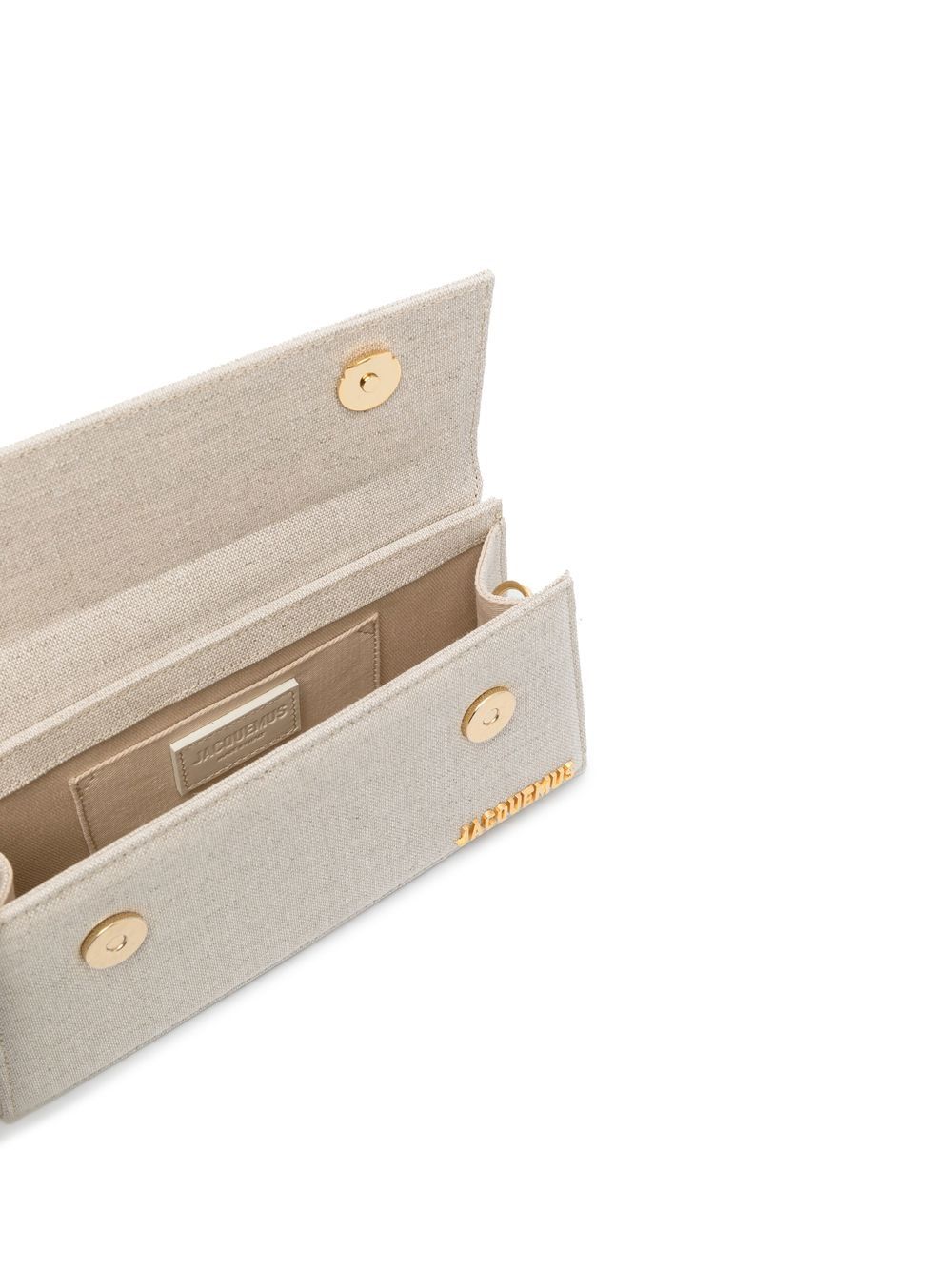 Le Chiquito Long bag from Jacquemus featuring grey, linen, gold-tone logo lettering, foldover top with magnetic fastening, single top handle, single shoulder strap and internal card slot. Conscious: This item contains at least 50% low-impact materials, which are certified or widely recognised as having a lower environmental impact.. Size and Fit - Width 8,66 in / 22 cm Height 3,94 in / 10 cm Depth 1,97 in / 5 cm Handle 5,12 in / 13 cm Strap 22,83 in / 58 cm