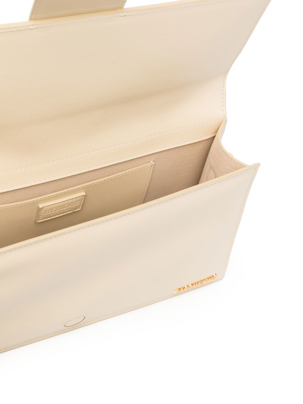 ivory white calf leather gold-tone logo lettering foldover top with magnetic fastening single top handle adjustable detachable shoulder strap Size and Fit - Width 13,39 in / 34 cm