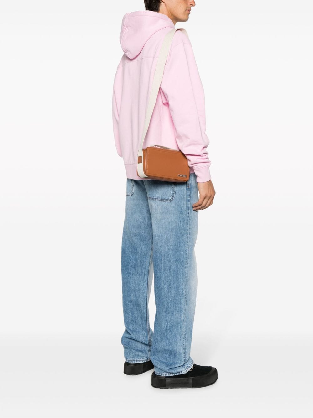Le Cuerda leather messenger bag from Jacquemus featuring brown, calf leather, silver-tone logo lettering, engraved logo, top zip fastening, adjustable shoulder strap and main compartment. Size and Fit - Width 9,06 in / 23 cm Height 4,33 in / 11 cm Depth 2,36 in / 6 cm Strap 22,05 in / 56 cm