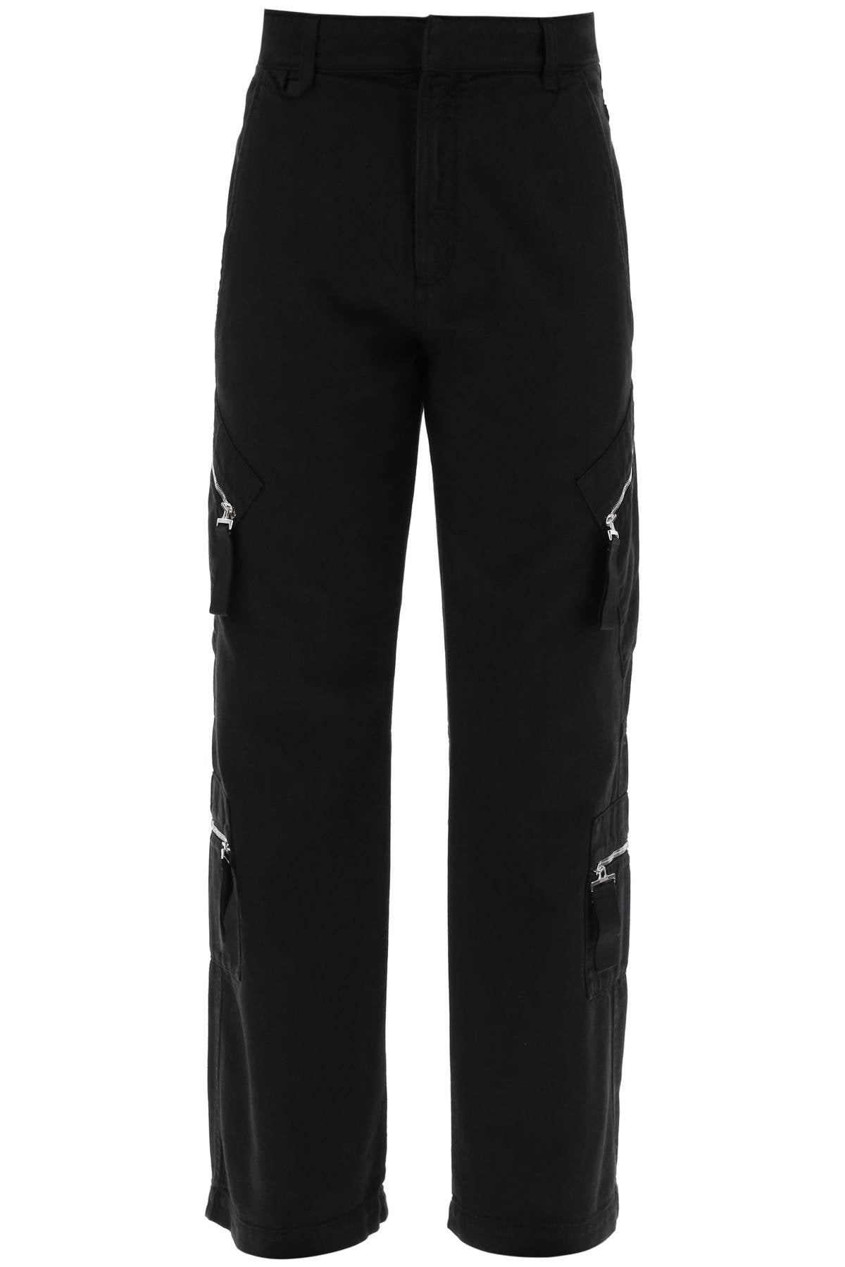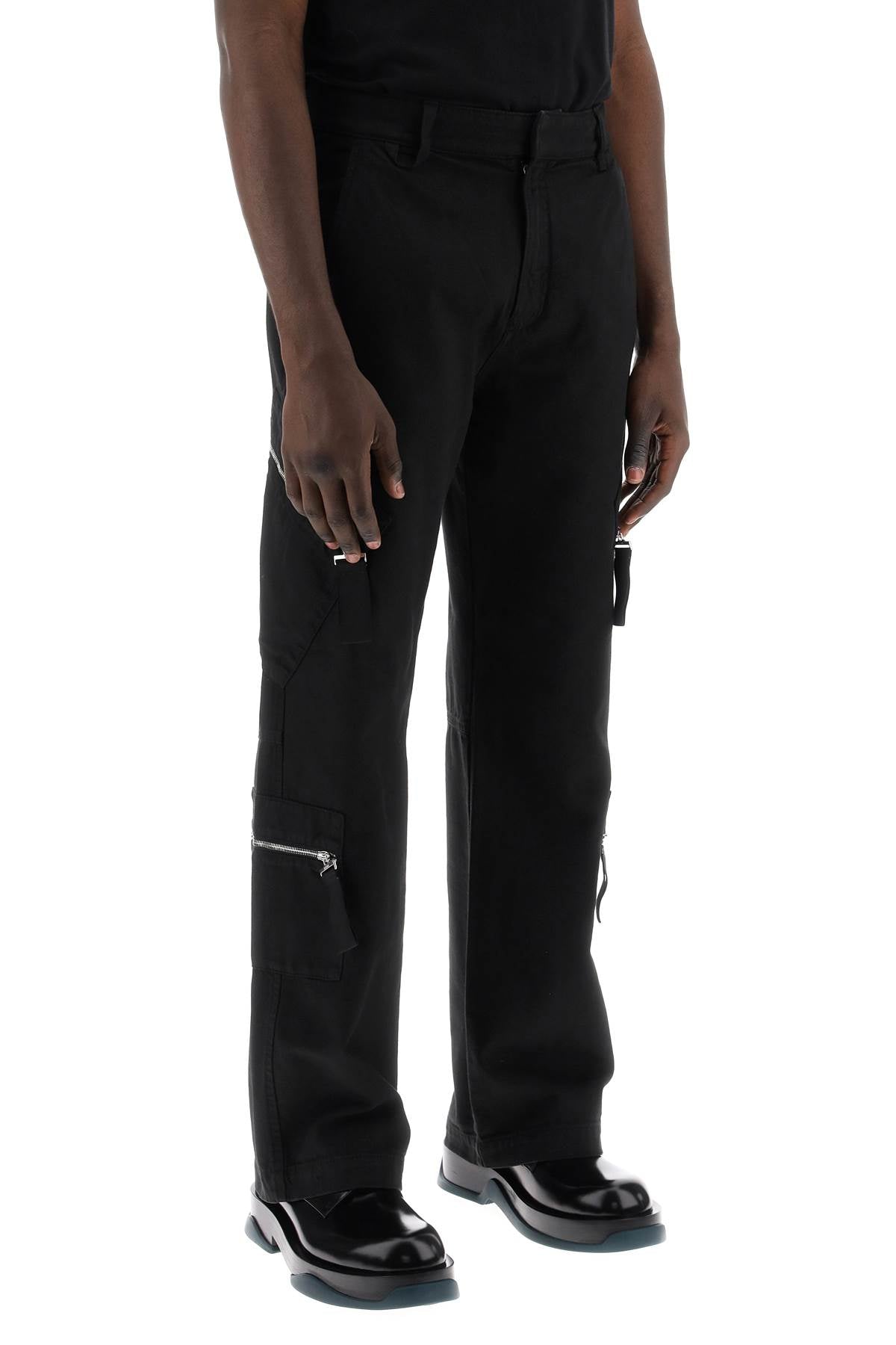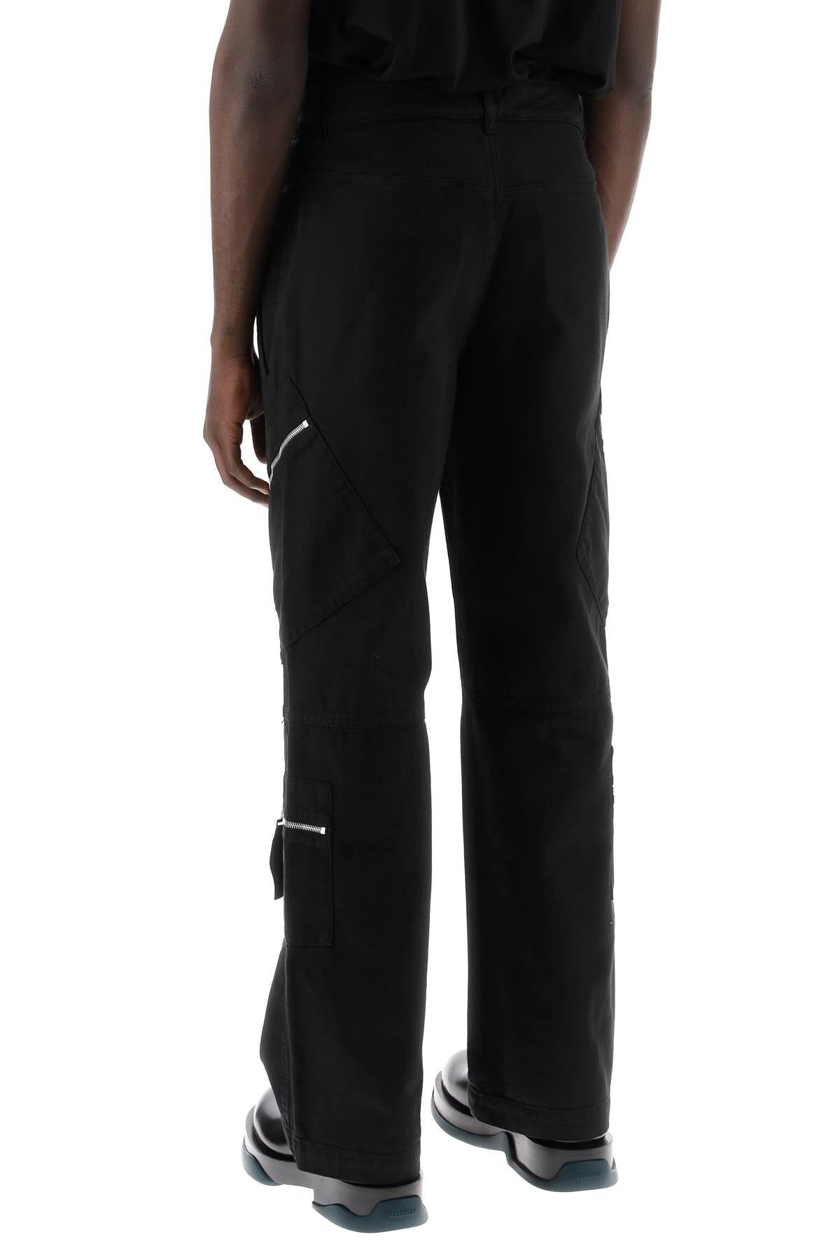 The Jacquemus Brown Cargo Pants are made of pure cotton canvas and feature four zippered pockets on the legs with oversized pulls. They also have two additional French-style pockets on the sides, belt loops with a "J" loop detail, and a zip and button closure flap. The back has a square design and stitching behind the knees. With a straight leg and comfortable fit, these pants are perfect for any occasion. The model is 187 cm tall and wears an IT size 46.