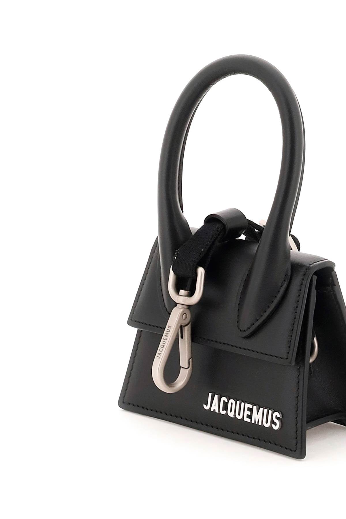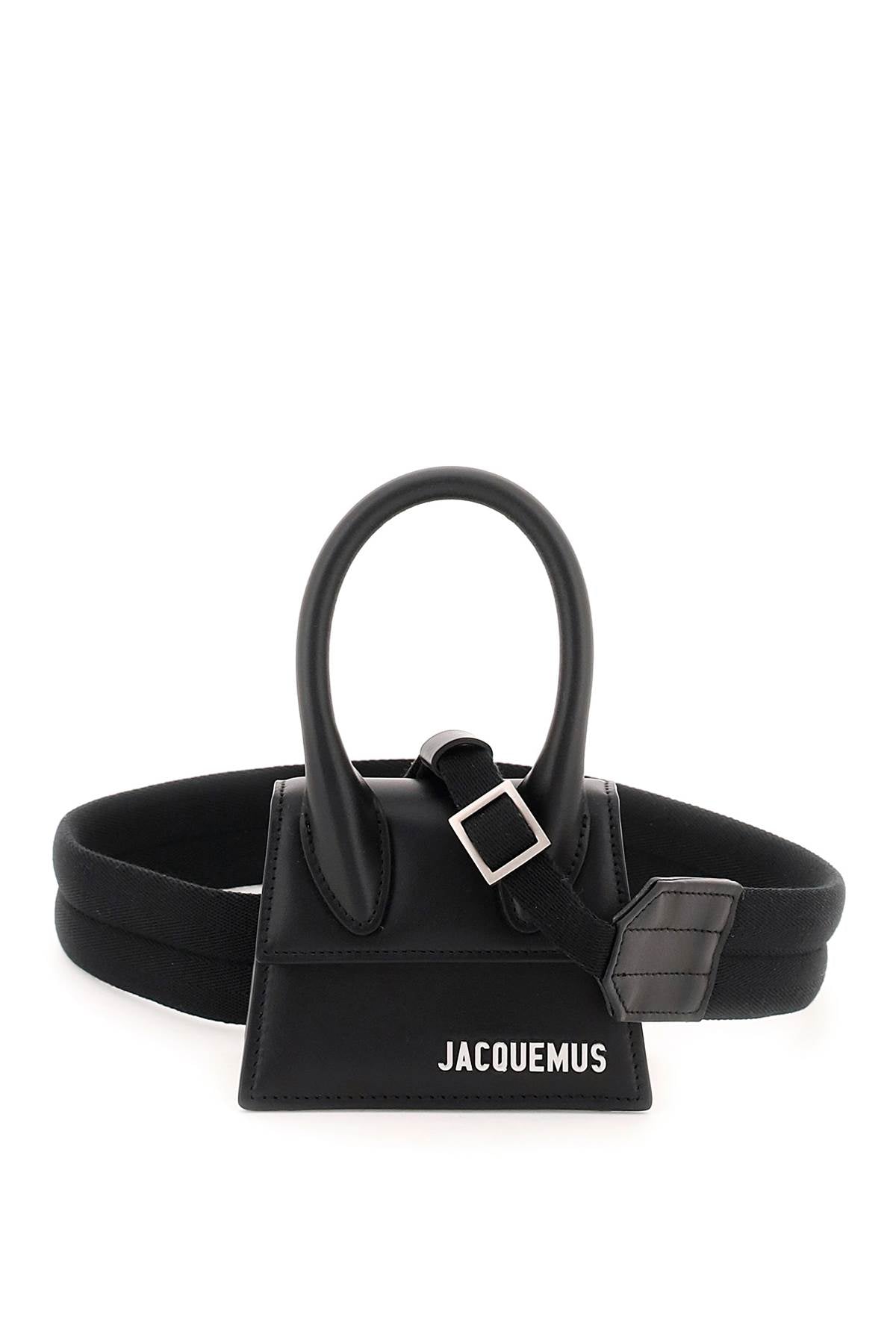"Le Chiquito" mini bag by Jacquemus crafted in leather and characterized by a trapeze shape. Single top handle, detachable and adjustable shoulder strap, flap with magnetic button closure and metal logo lettering applied on front. Fabric lining, silver-finished metalware. Size and Fit - Bag Length = 12 cm, Bag Height = 9 cm, Bag Weight = 6 cm, Handle Height = 8 cm, Shoulder Bag Length = 95 cm,