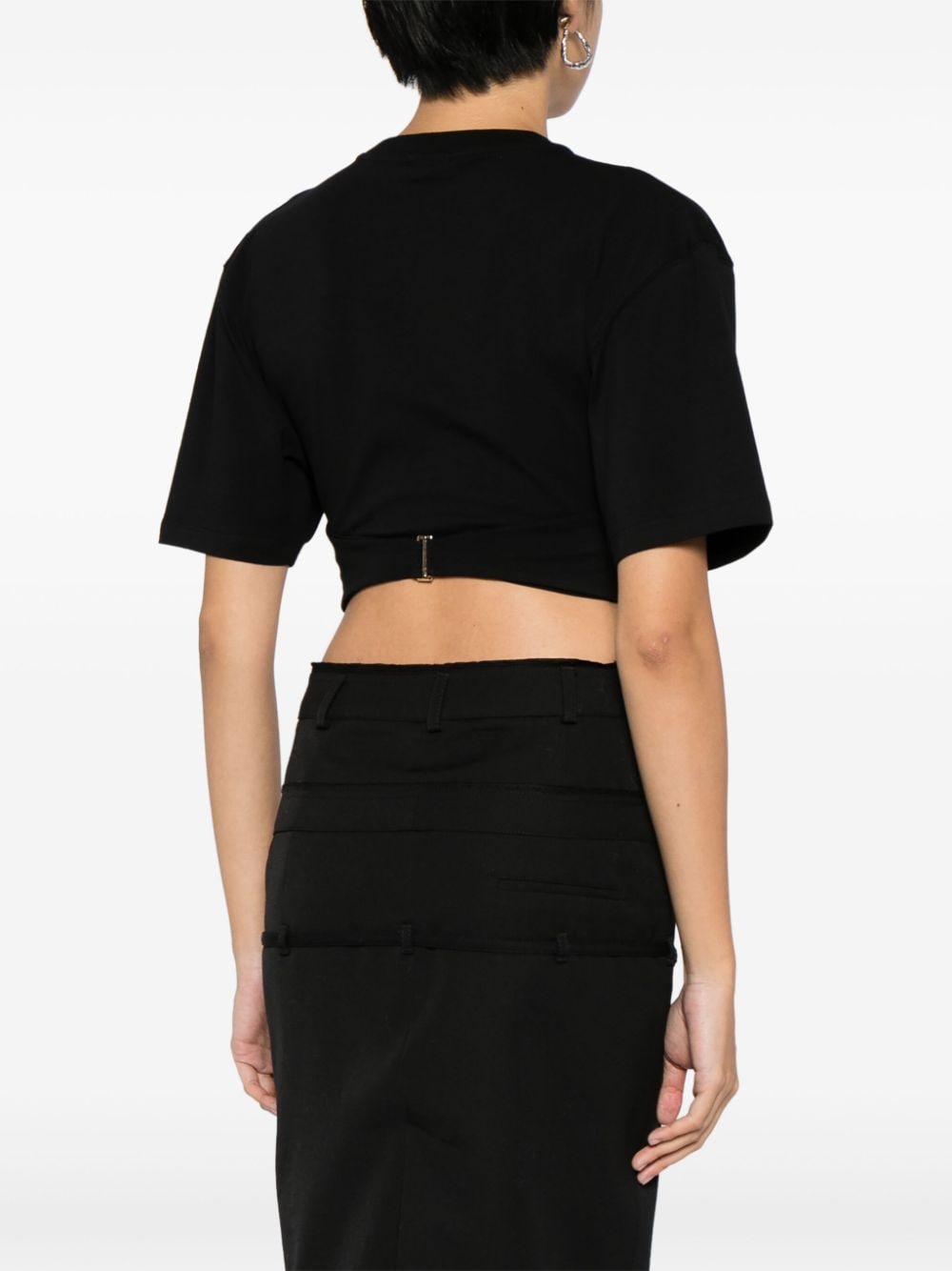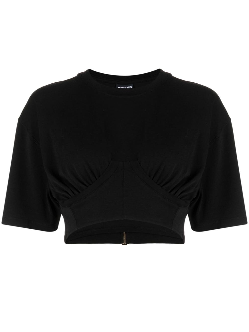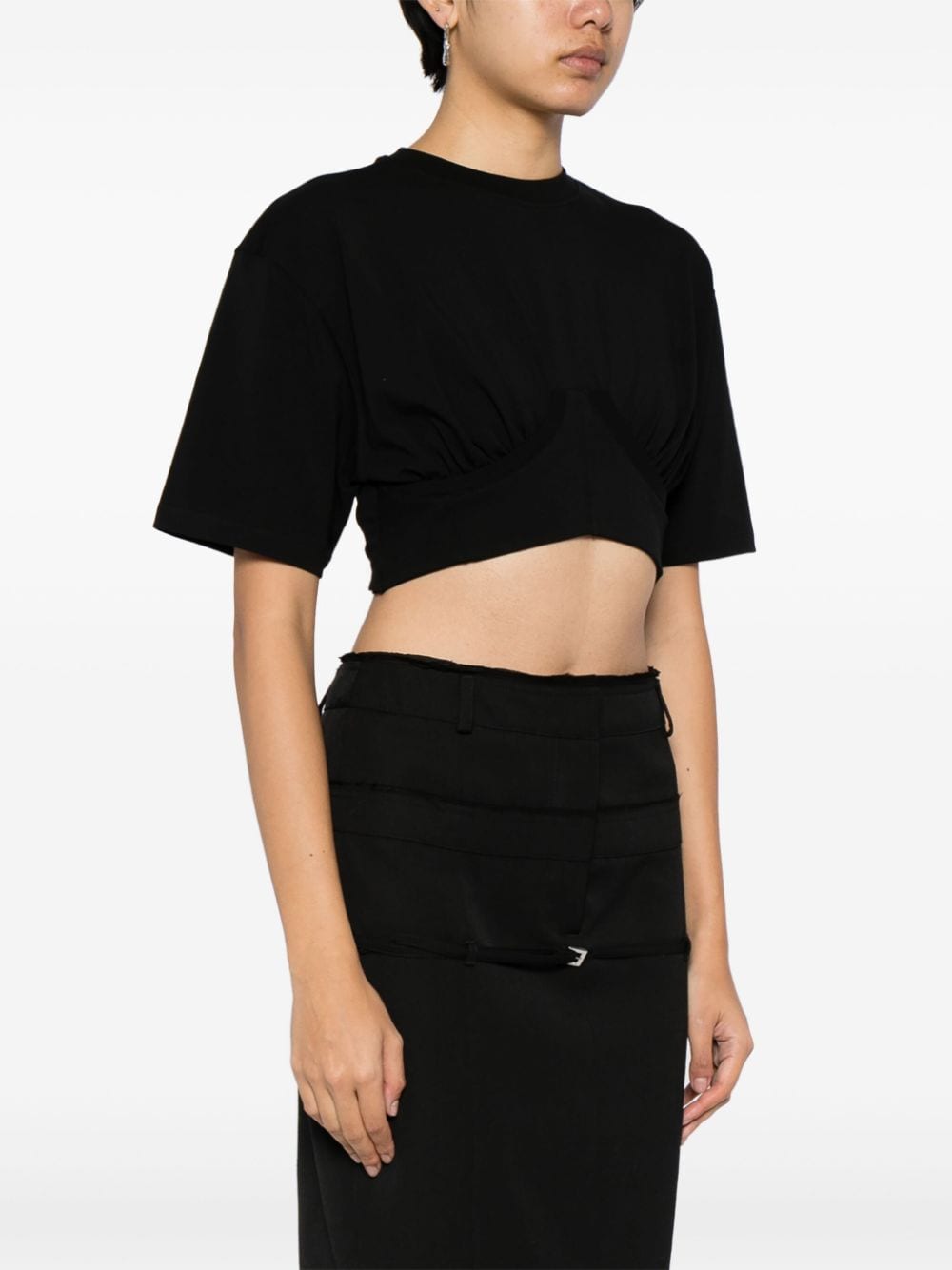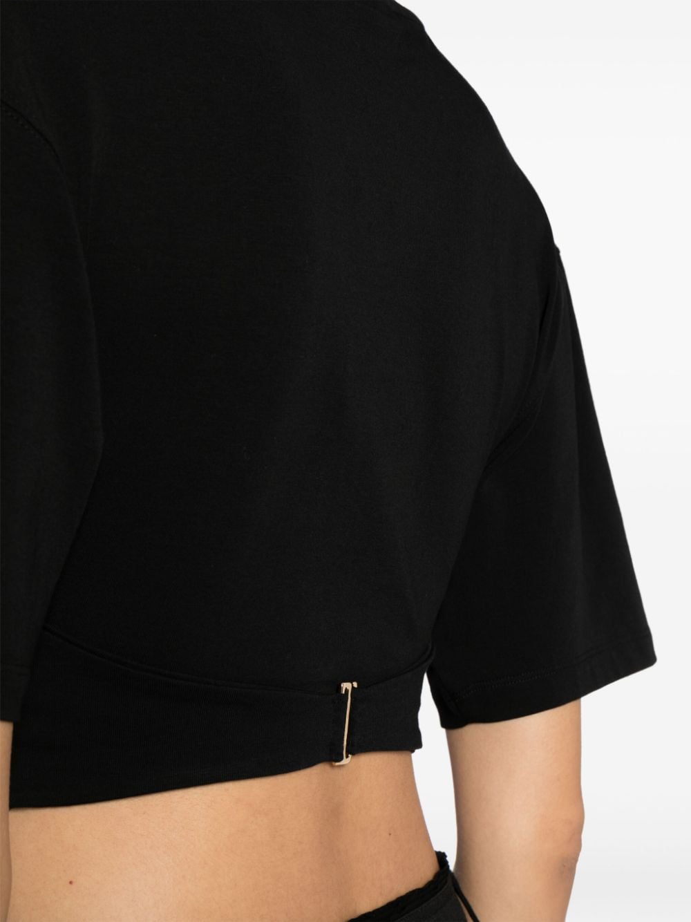 black stretch-cotton draped detailing cropped bustier-style neckline crew neck rear hook fastening short sleeves straight hem Size and Fit - This piece fits true to size. We recommend you get your regular size. Model is 1,75m / 5ft 8in wearing size S