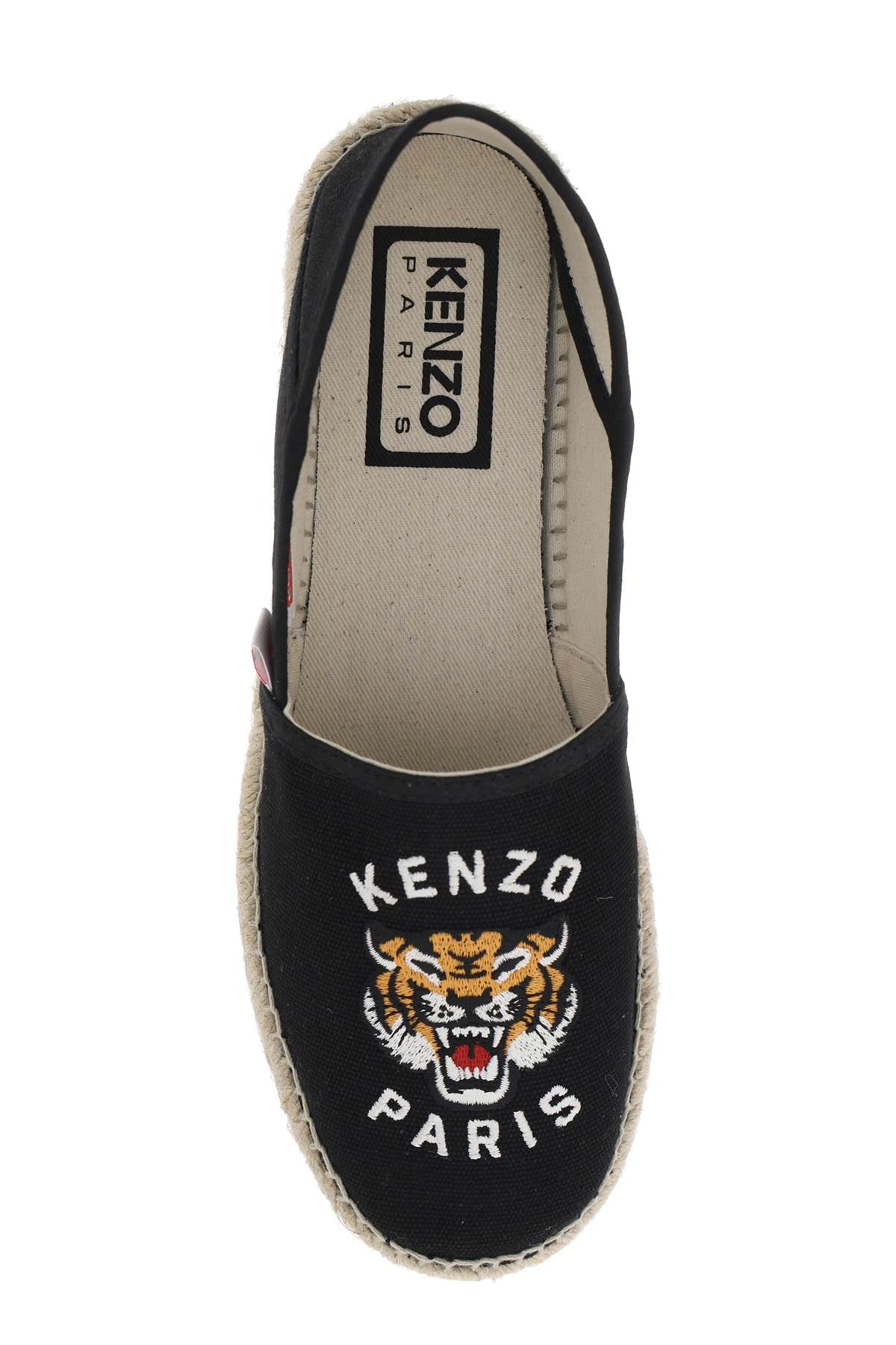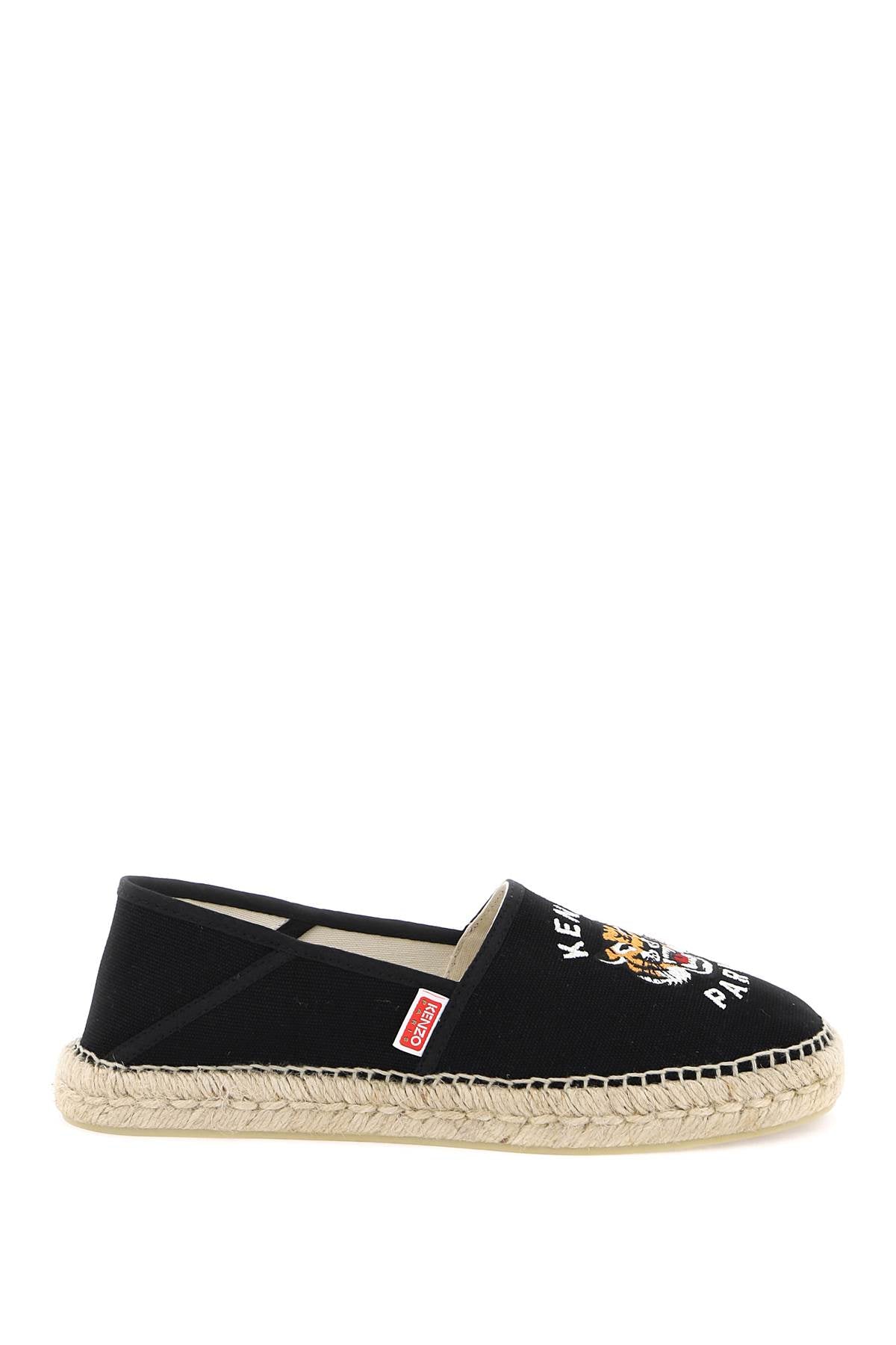 Cotton canvas espadrilles decorated with embroidered KENZO Lucky Tiger on toe. Logo label on the outer side, cotton lining, slightly padded insole and jute sole with rubber tread. Size and Fit - Heel Height = 2 cm,