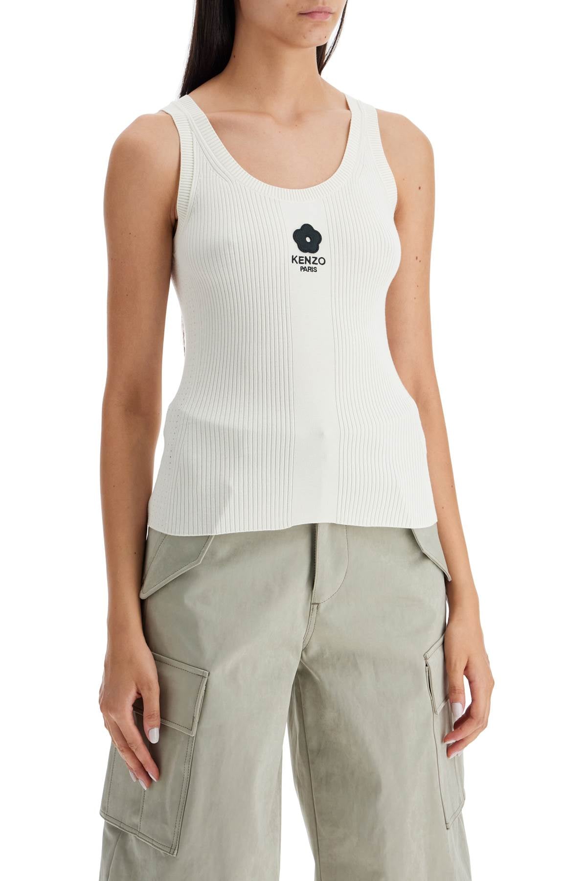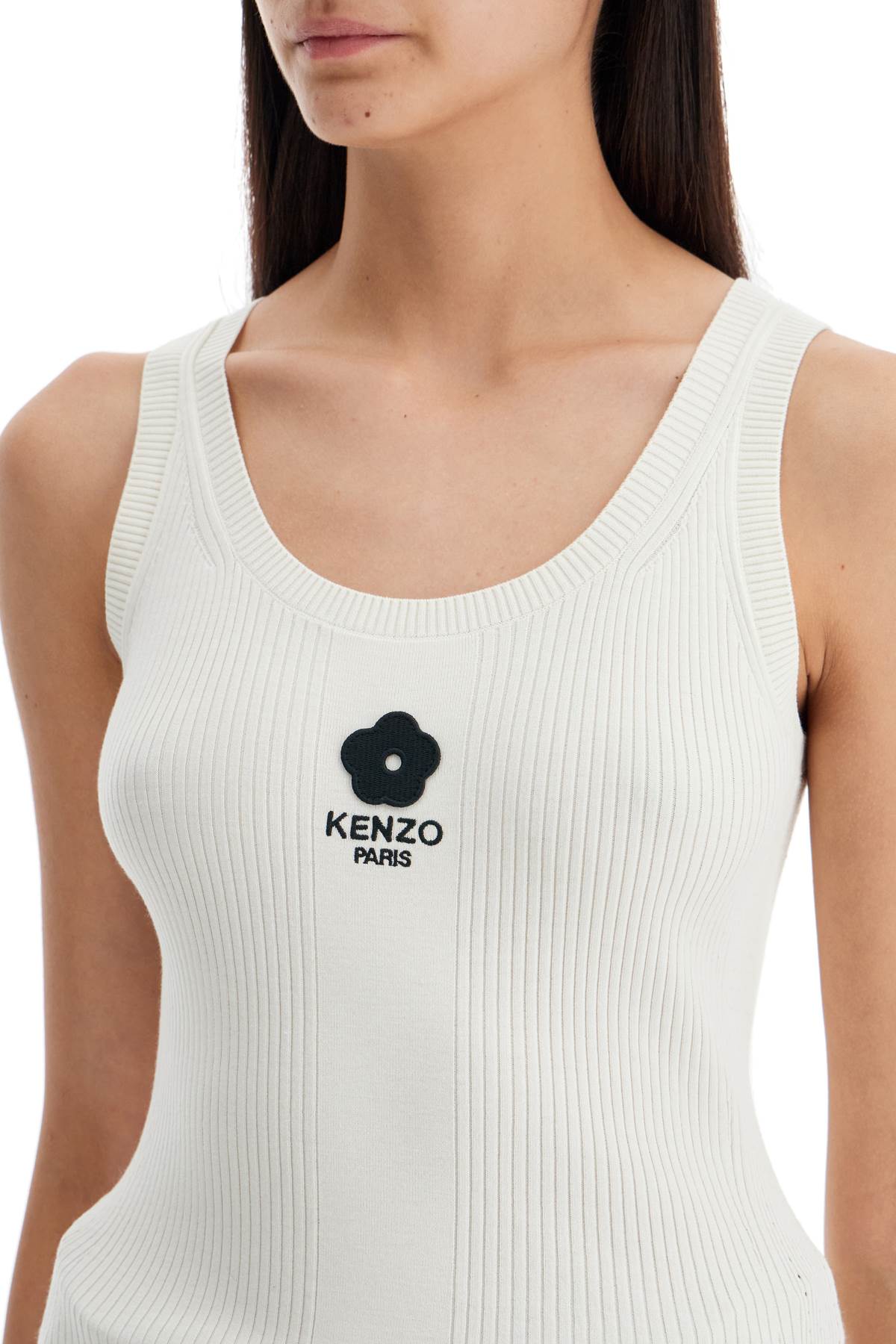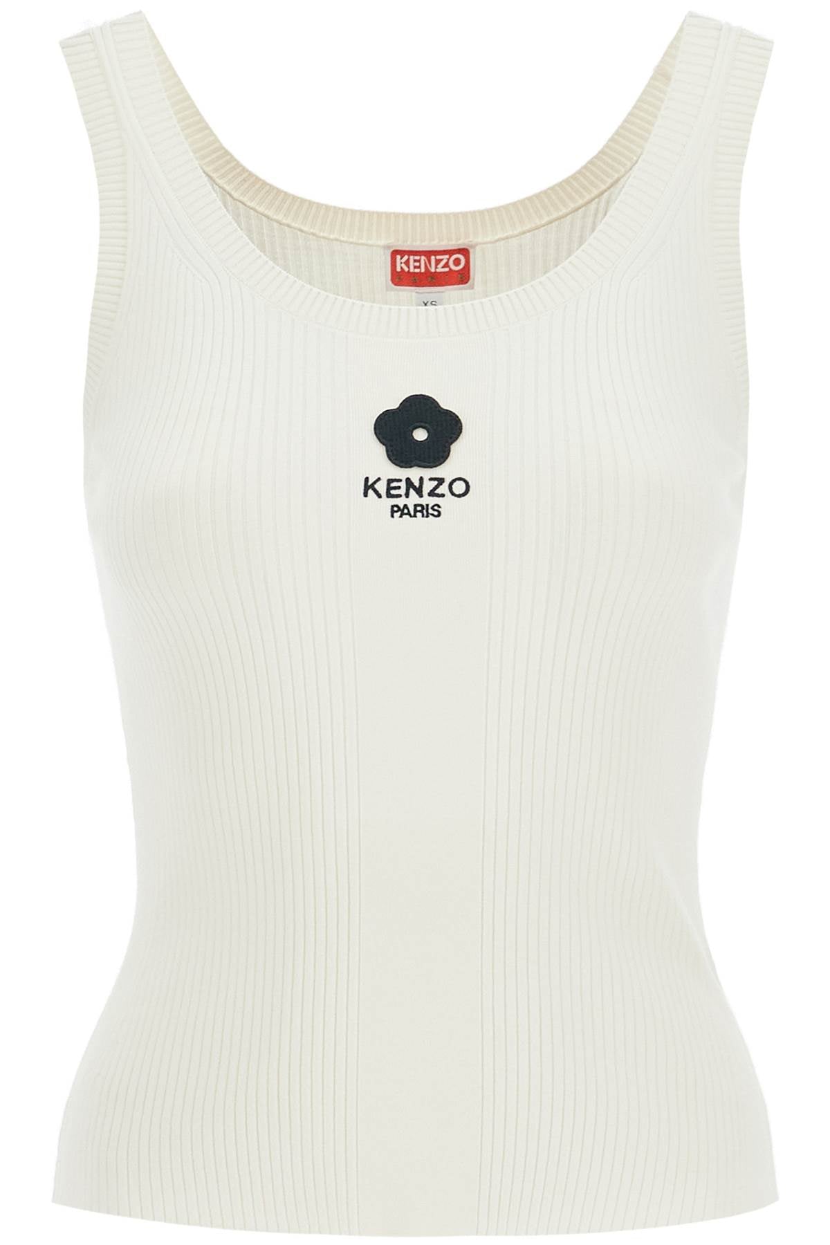 Elevate your style with this fitted Kenzo tank top, made from soft ribbed viscose fabric and featuring a wide round neckline. The piece is embellished with the contrasting embroidered "Boke Flower 2.0" logo detail at the center of the chest. The model is 177 cm tall and wears size XS.