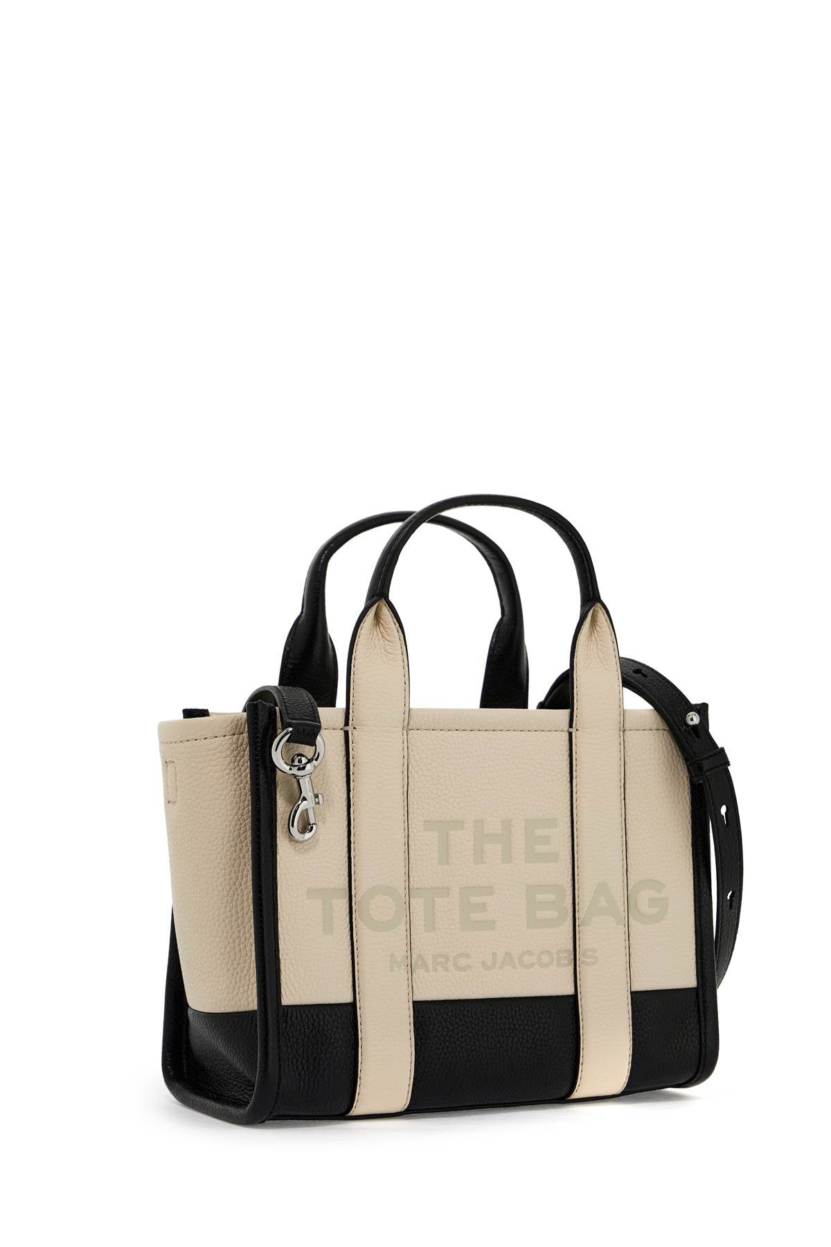 The Colorblock Small Tote bag by Marc Jacobs in two-tone grained leather, featuring double top handle, adjustable and removable shoulder strap, front debossed logo, back leather logo patch, zip closure and side handle. Fabric-lined interior with a zippered pocket. Silver-finished metalware. Size and Fit - Bag Length = 26 cm, Bag Height = 20 cm, Bag Weight = 13 cm, Handle Height = 10 cm,