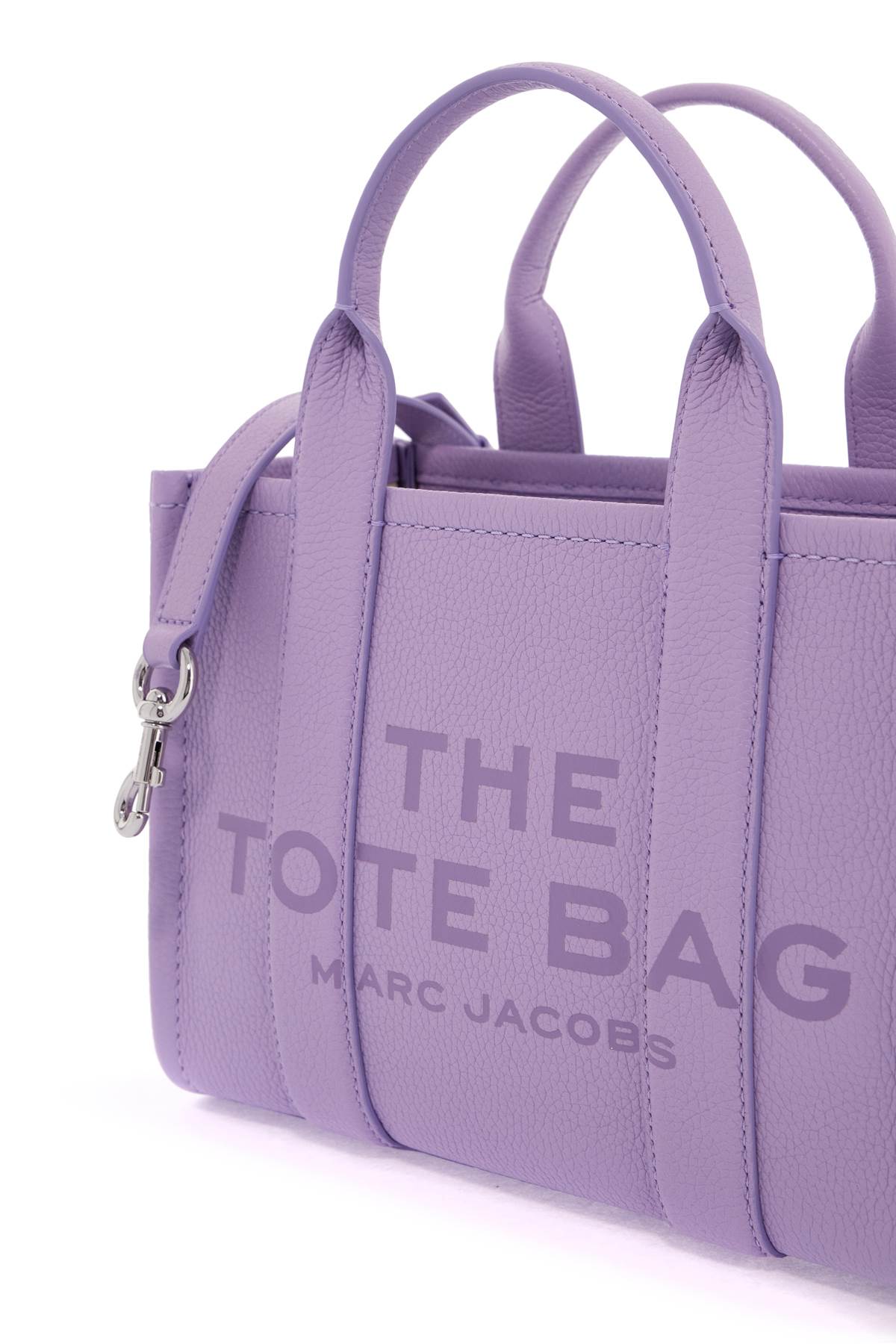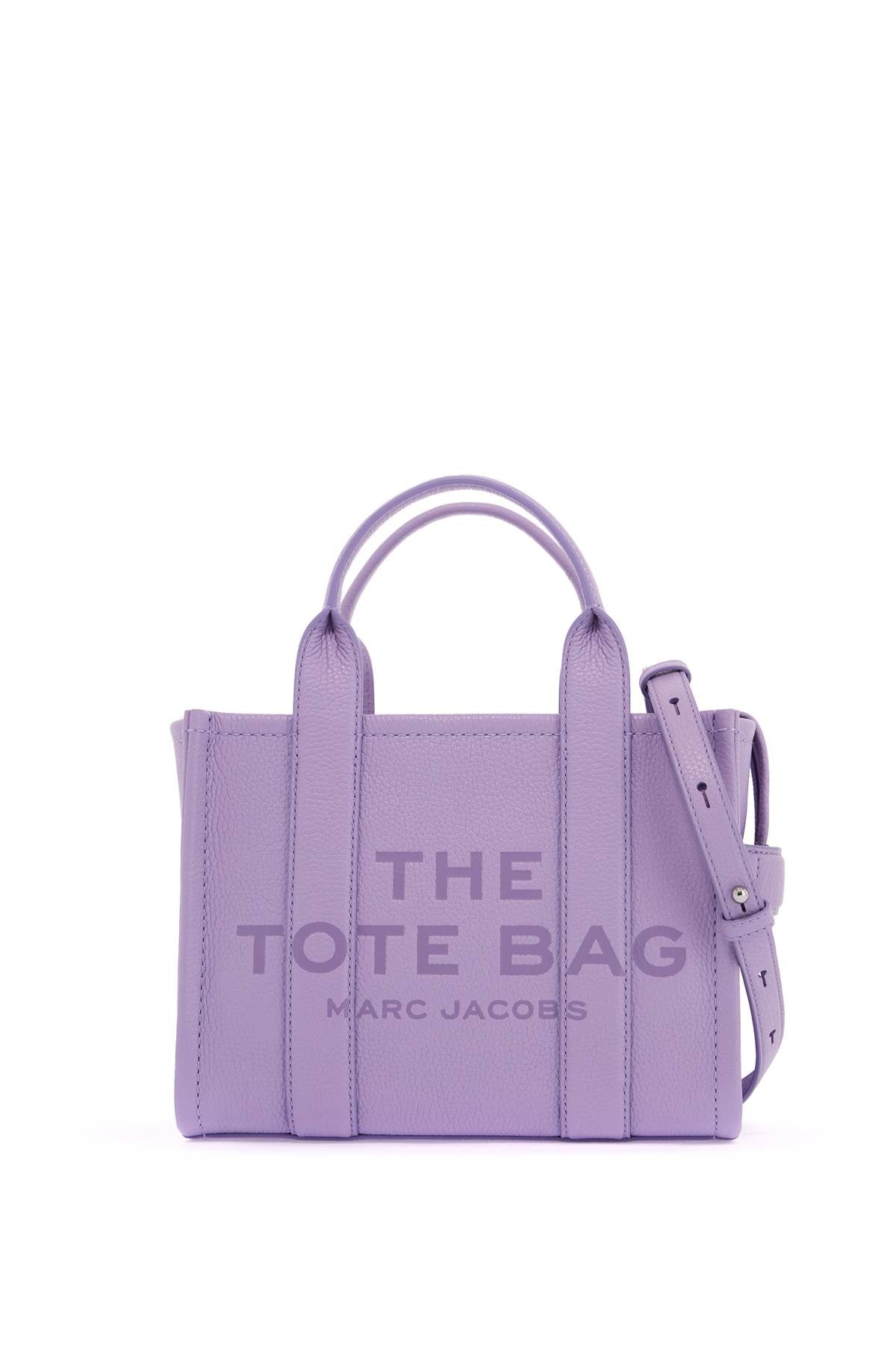 The Leather Small Tote Bag by Marc Jacobs in grained leather, featuring double top handle, adjustable and removable shoulder strap, front debossed logo, back leather logo patch, zip closure and side handle. Leather interior with a fabric open flat pocket. Silver-finished metalware. Size and Fit - Bag Length = 26 cm, Bag Height = 20 cm, Bag Weight = 13 cm, Handle Height = 10 cm, Shoulder Bag Length = 110 cm,