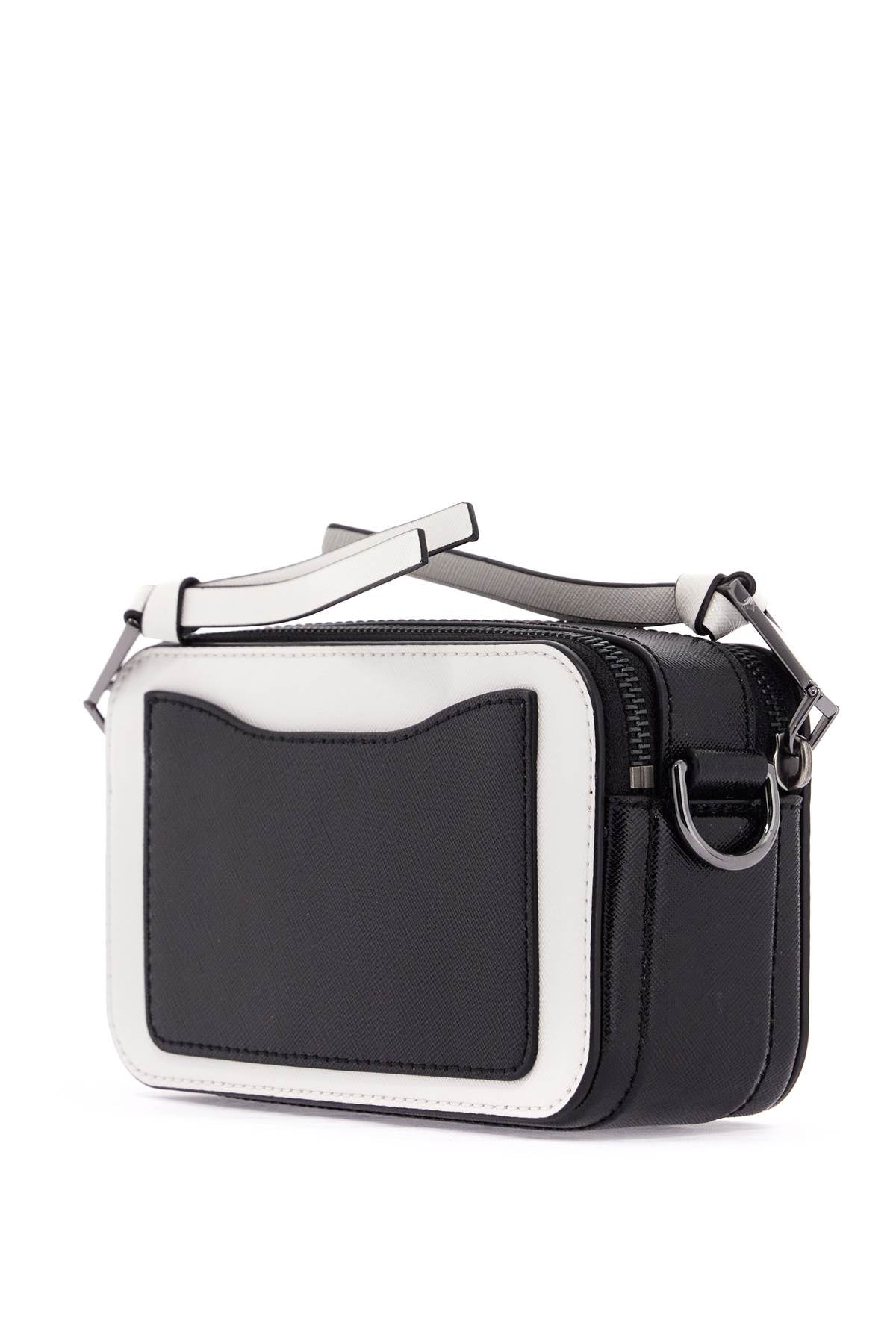 The Snapshot camera bag by Marc Jacobs in coloblock-effect shiny saffiano leather with two independent zipped compartments and front metal Double-J monogram. Adjustable and removable jacquard logo webbing strap. Leather zip pullers, back flat pocket, logo embossed on the top. Fabric lining, one inner open pocket, burnished metal hardware. Size and Fit - Bag Length = 18 cm, Bag Height = 10,5 cm, Bag Weight = 6 cm,